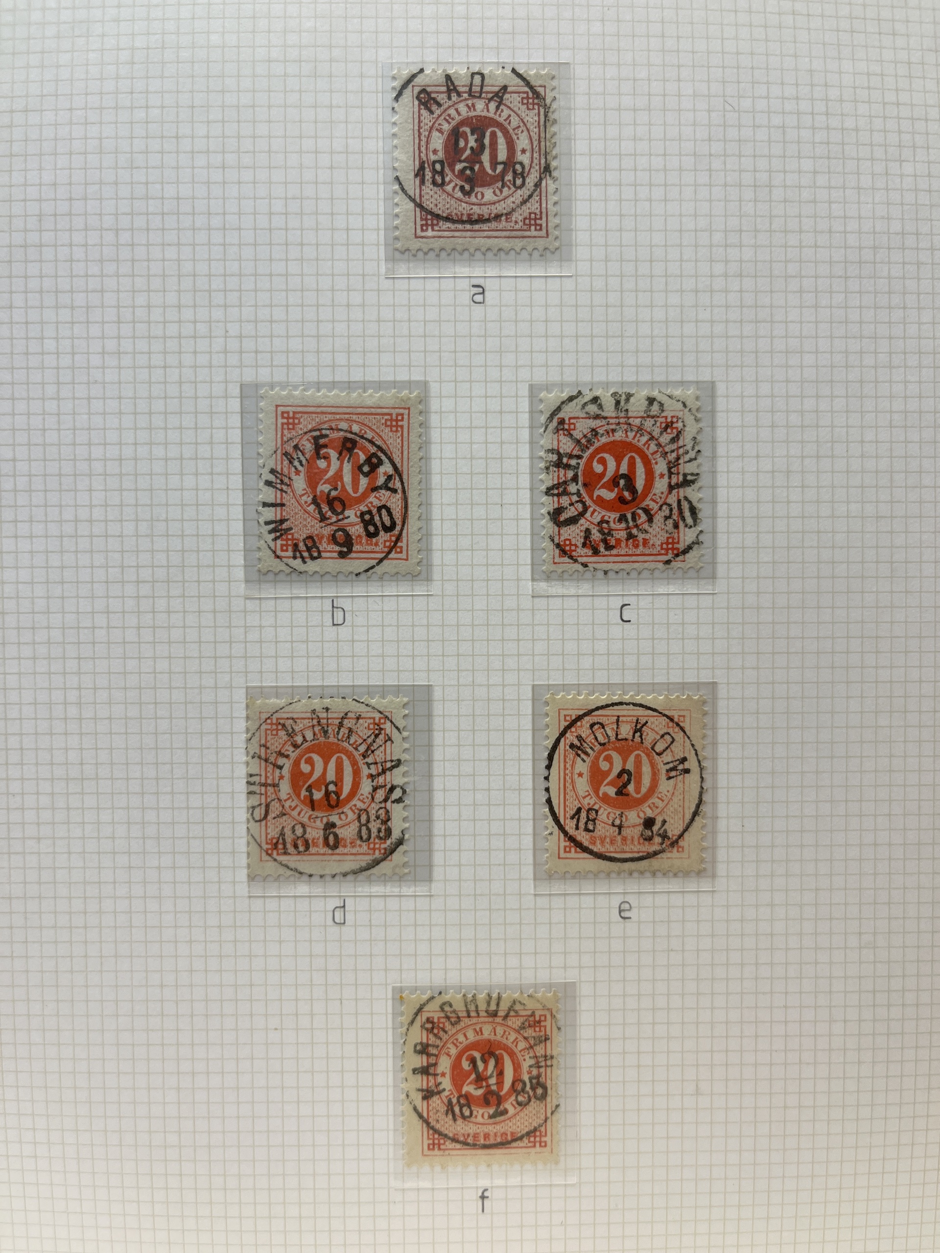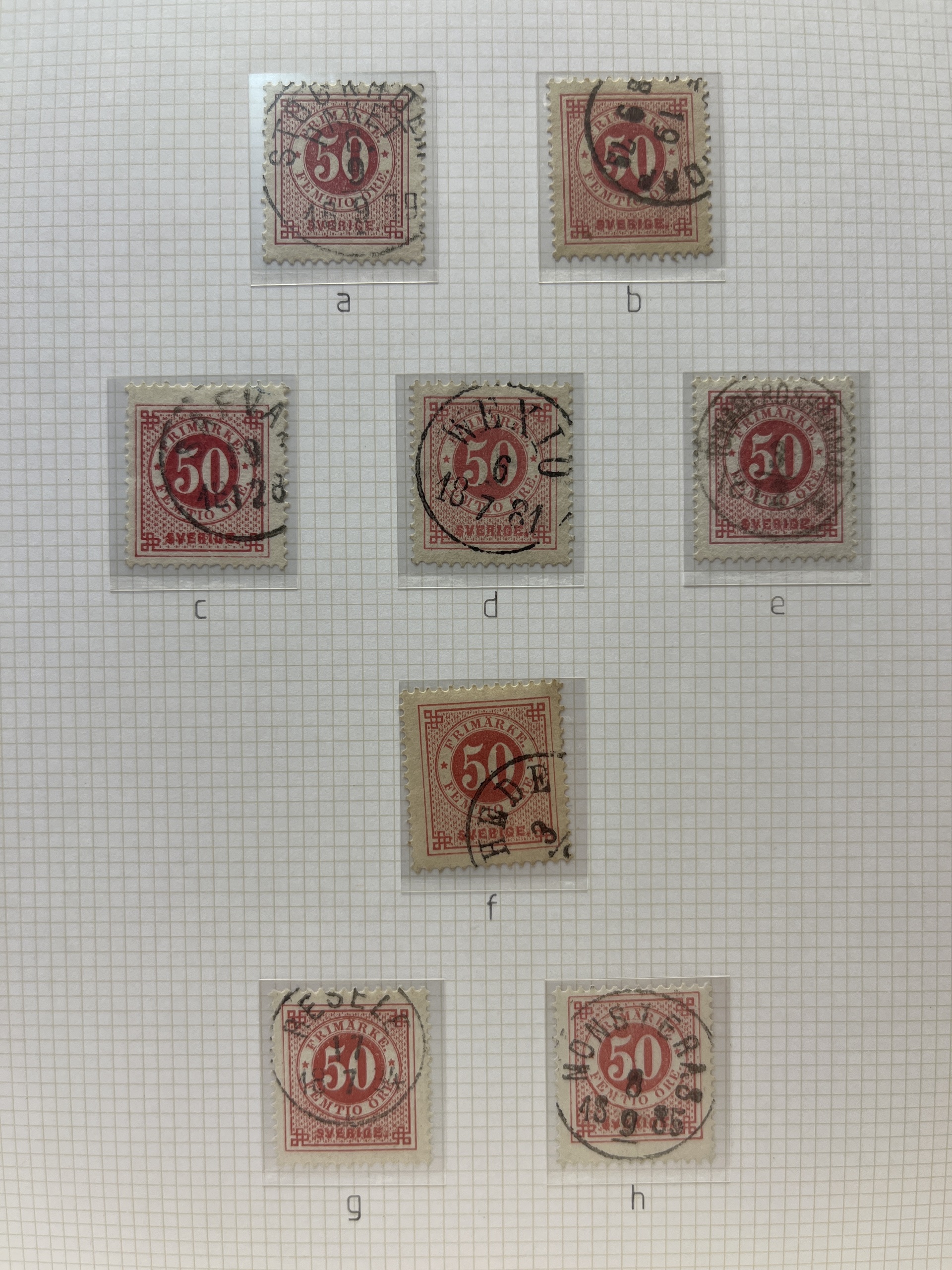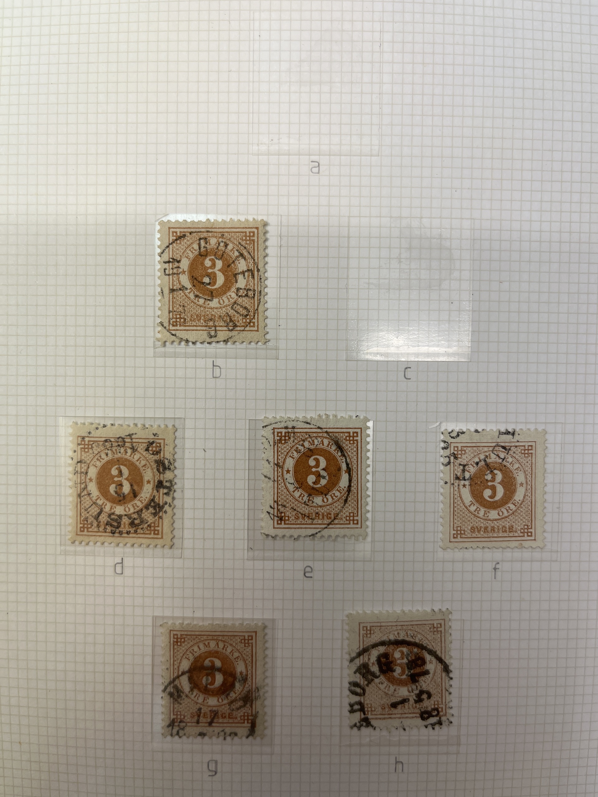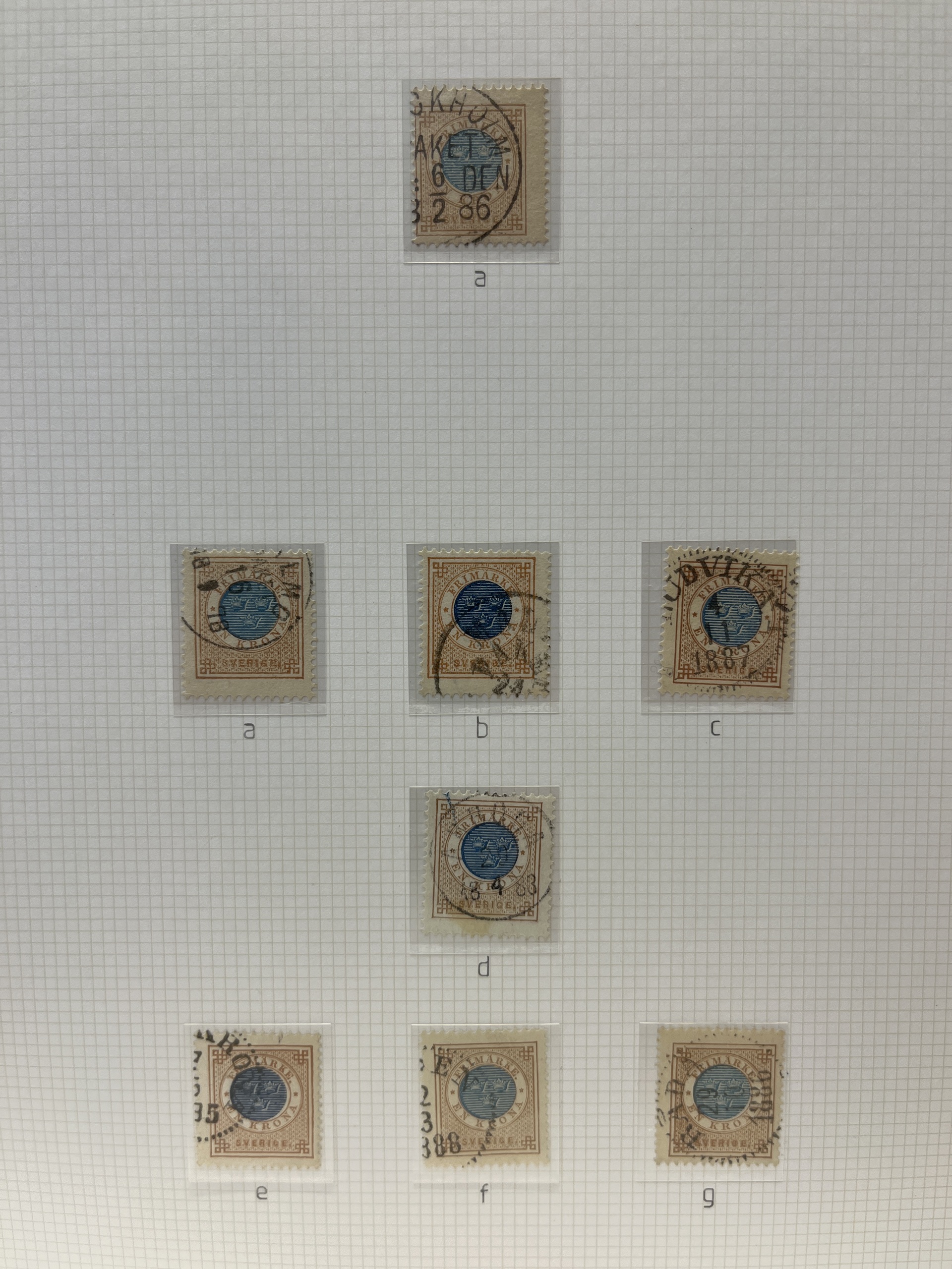 Sweden. Collection used Circle typ perf 13 - 1889 on leaves. Nice canc. and many shades. The entire lot is presented at www.philea.se. Fine quality.