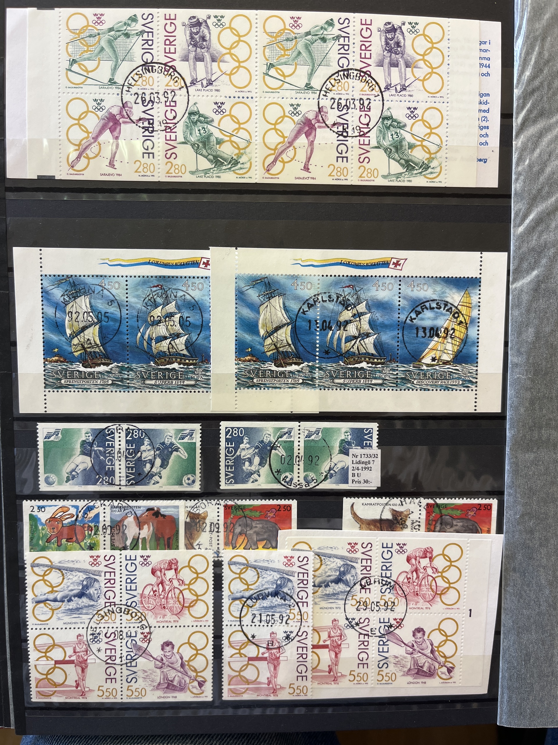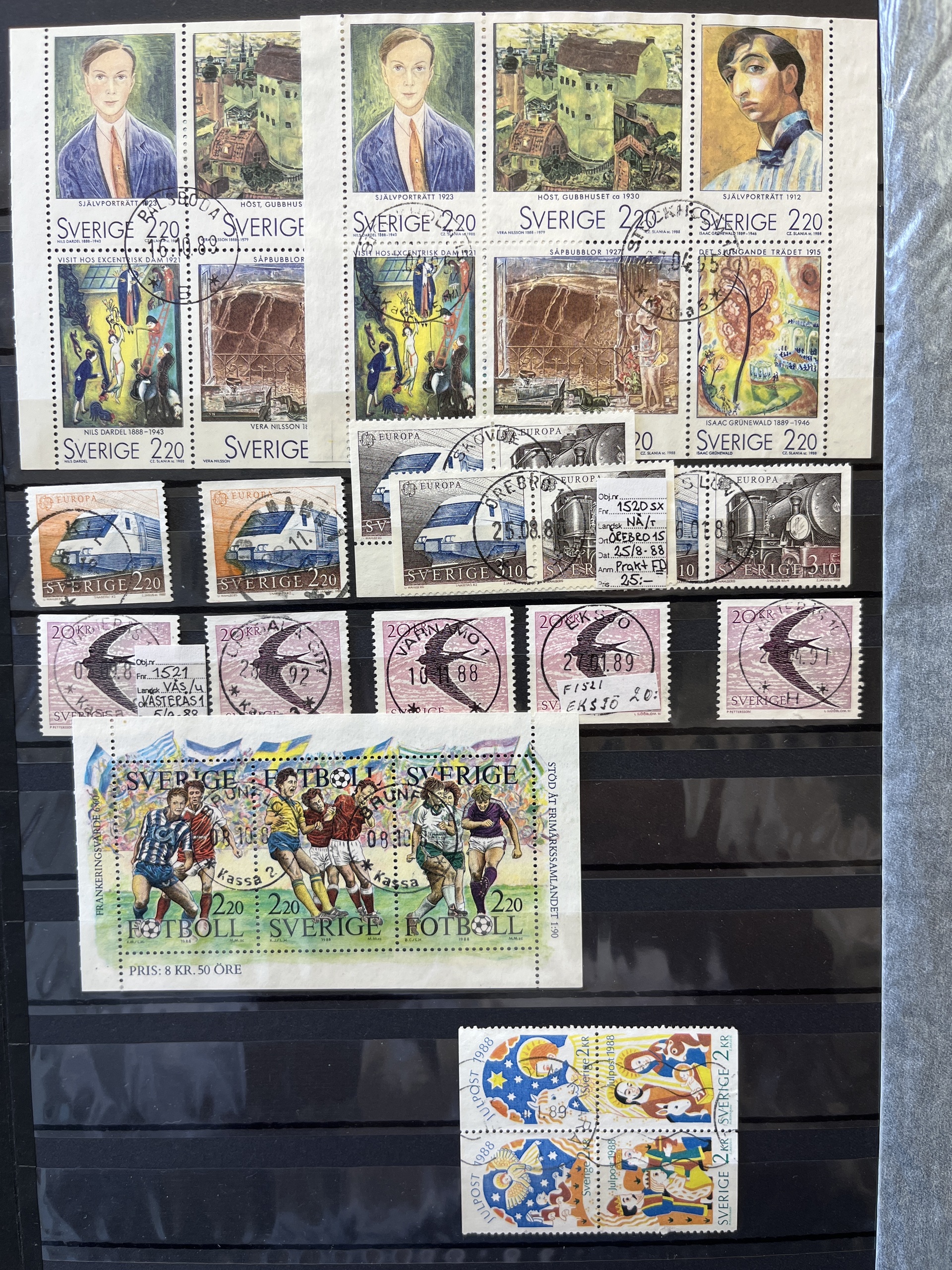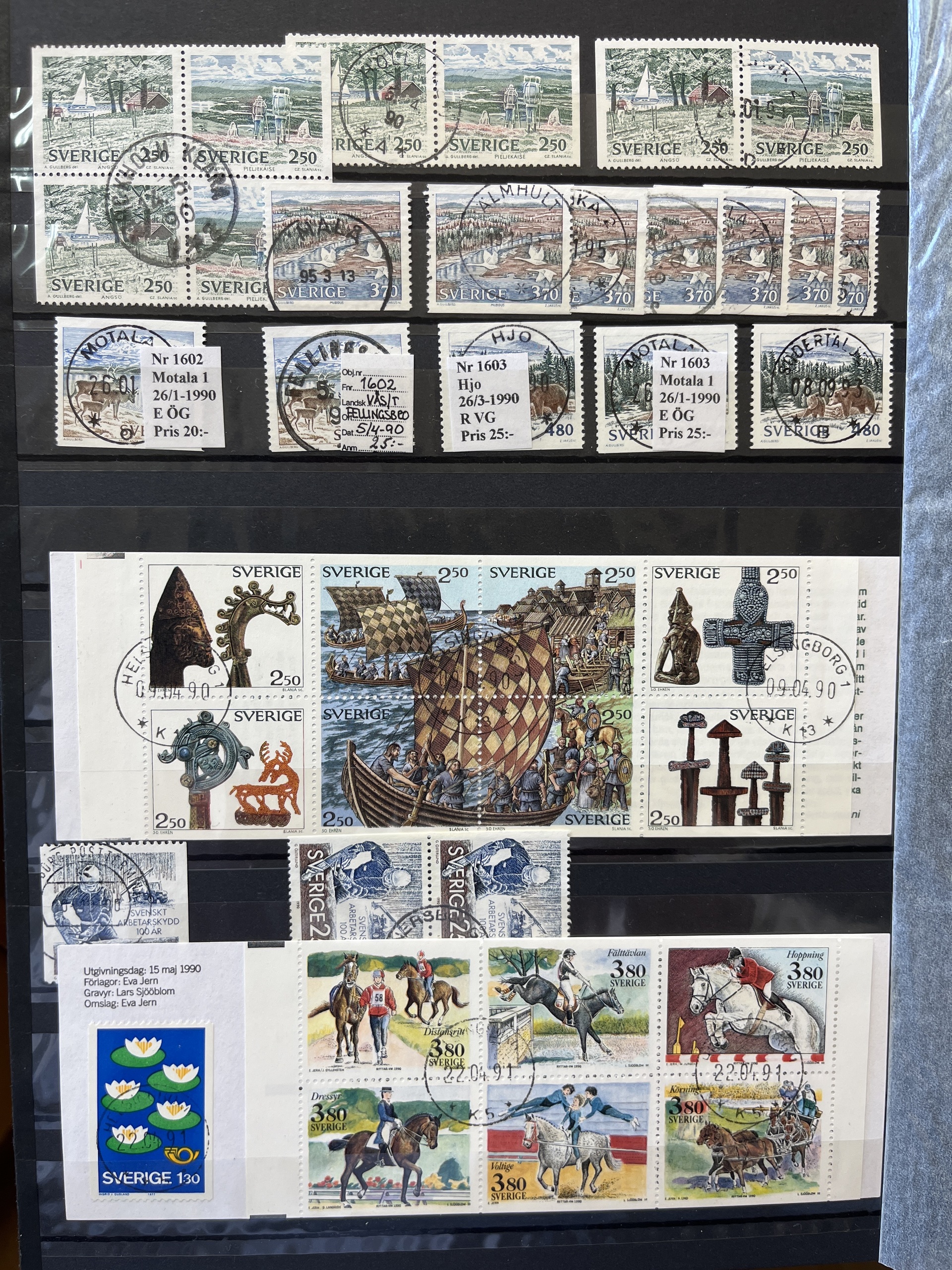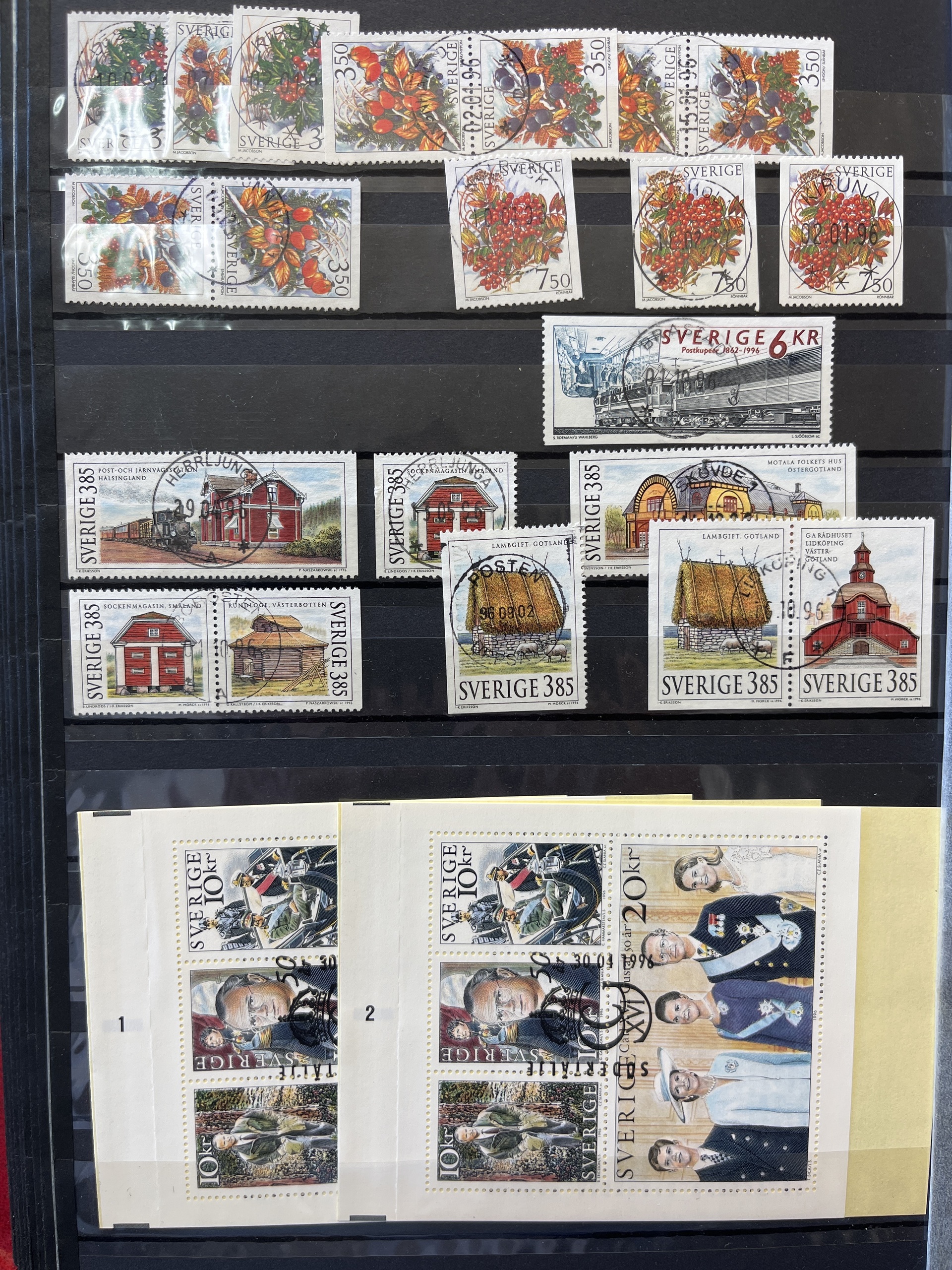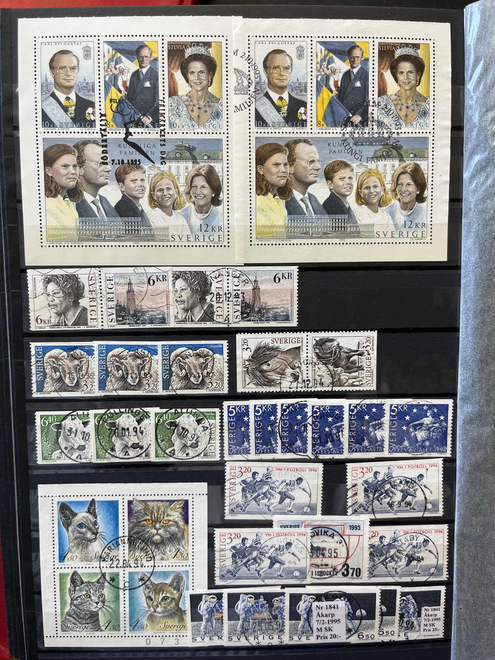 Sweden. Collection/accumulation used 1972–1999 in two full stockbooks. Many EXELLENT canc. on stamps and blocks/booklets.