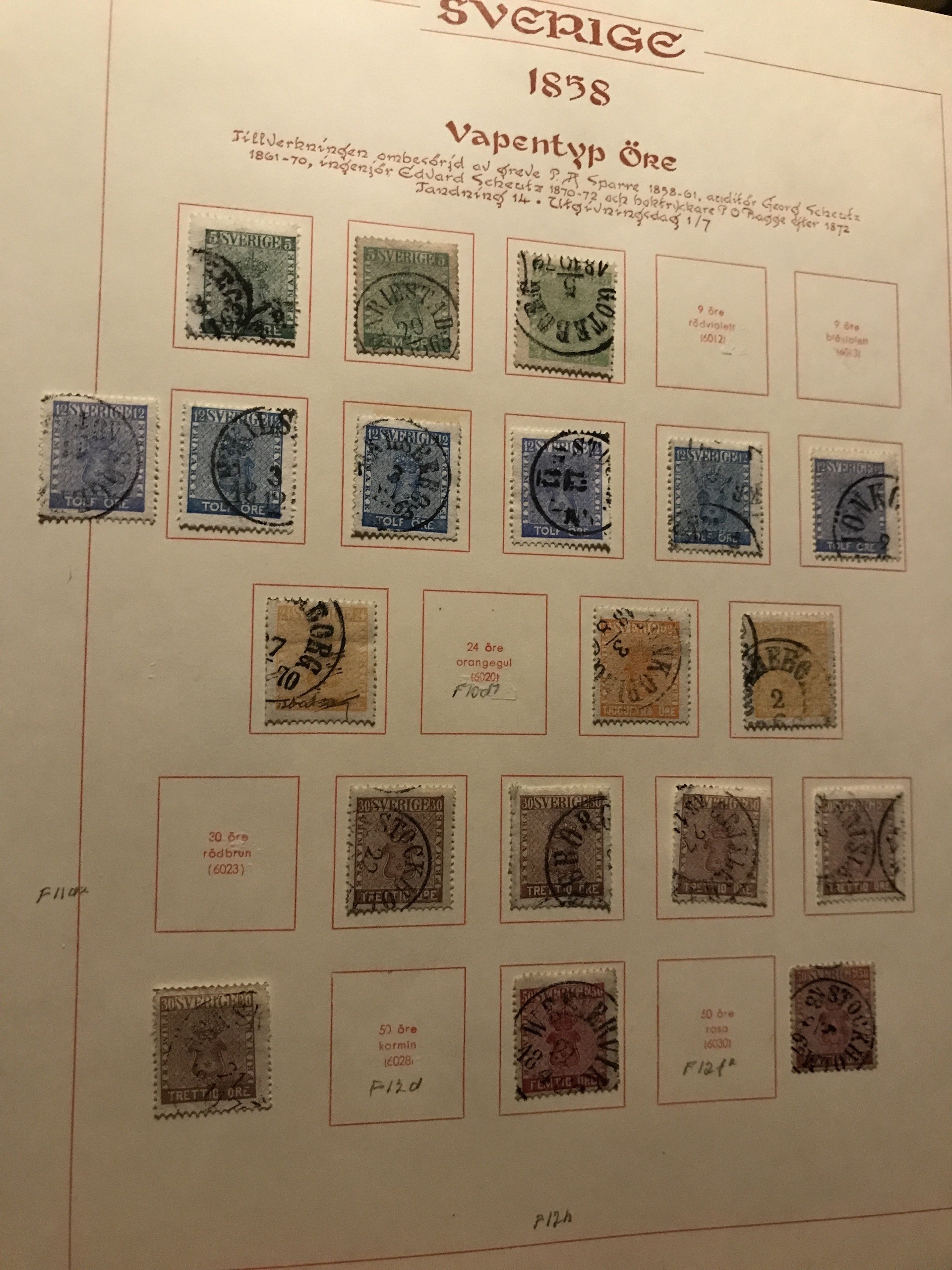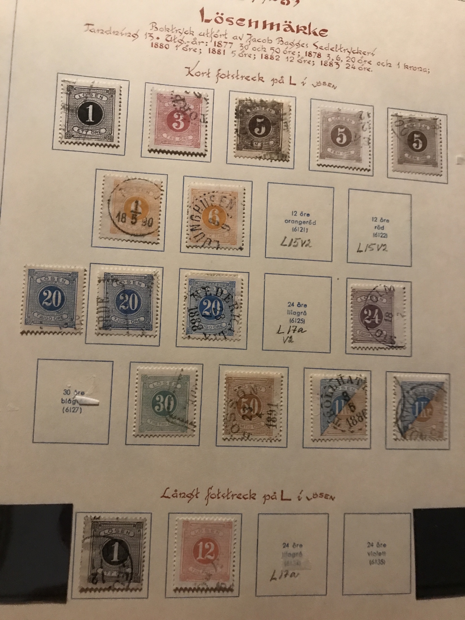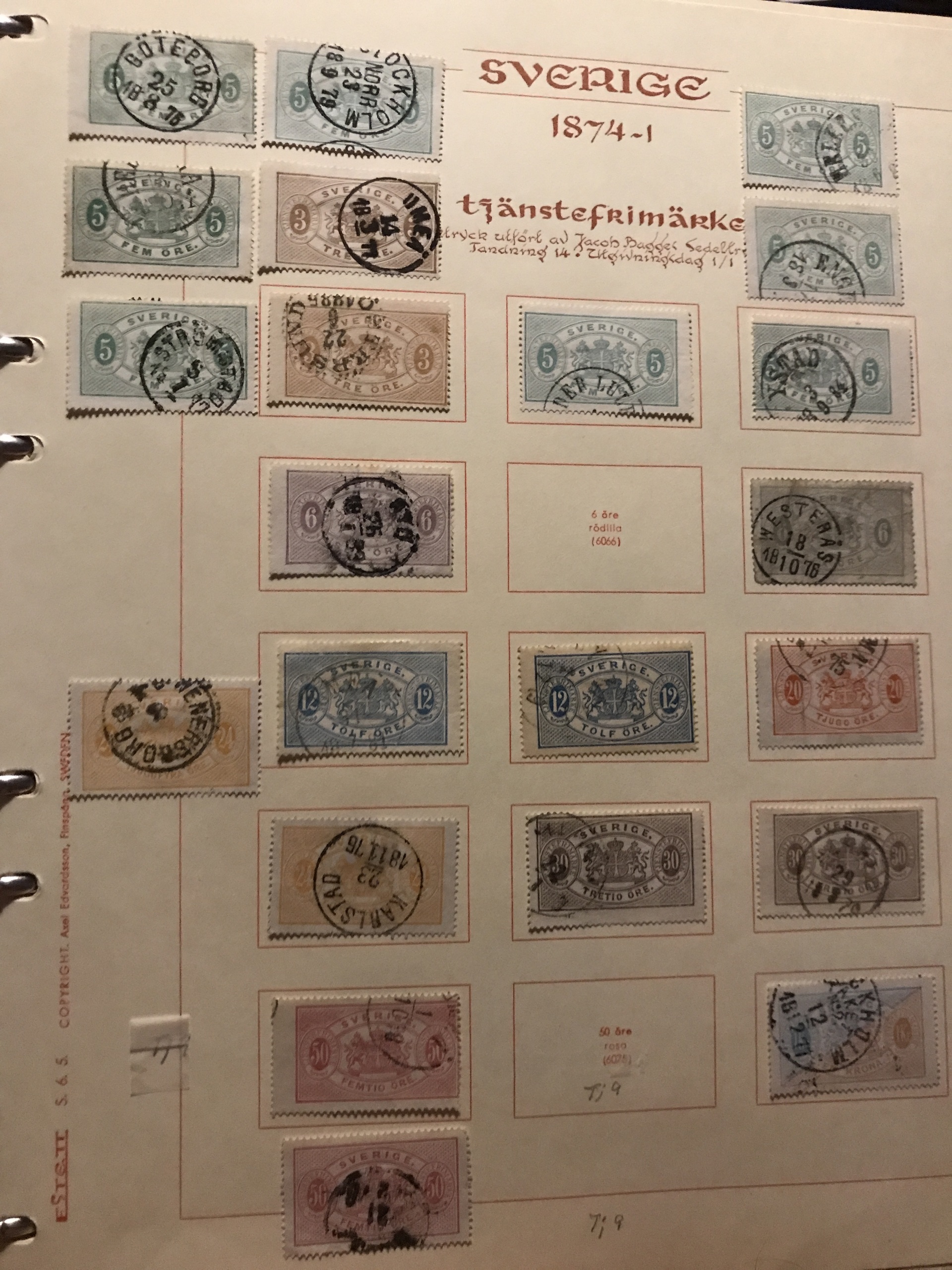 Sweden. Used. Collection Coat-of Arms-1963 in Estett album incl. many Circle types, Officials and Postage due stamps, öre-values 1924, Coil stamps with wmks etc. Please see a selection of scans at www.philea.se. Mostly fine quality.
