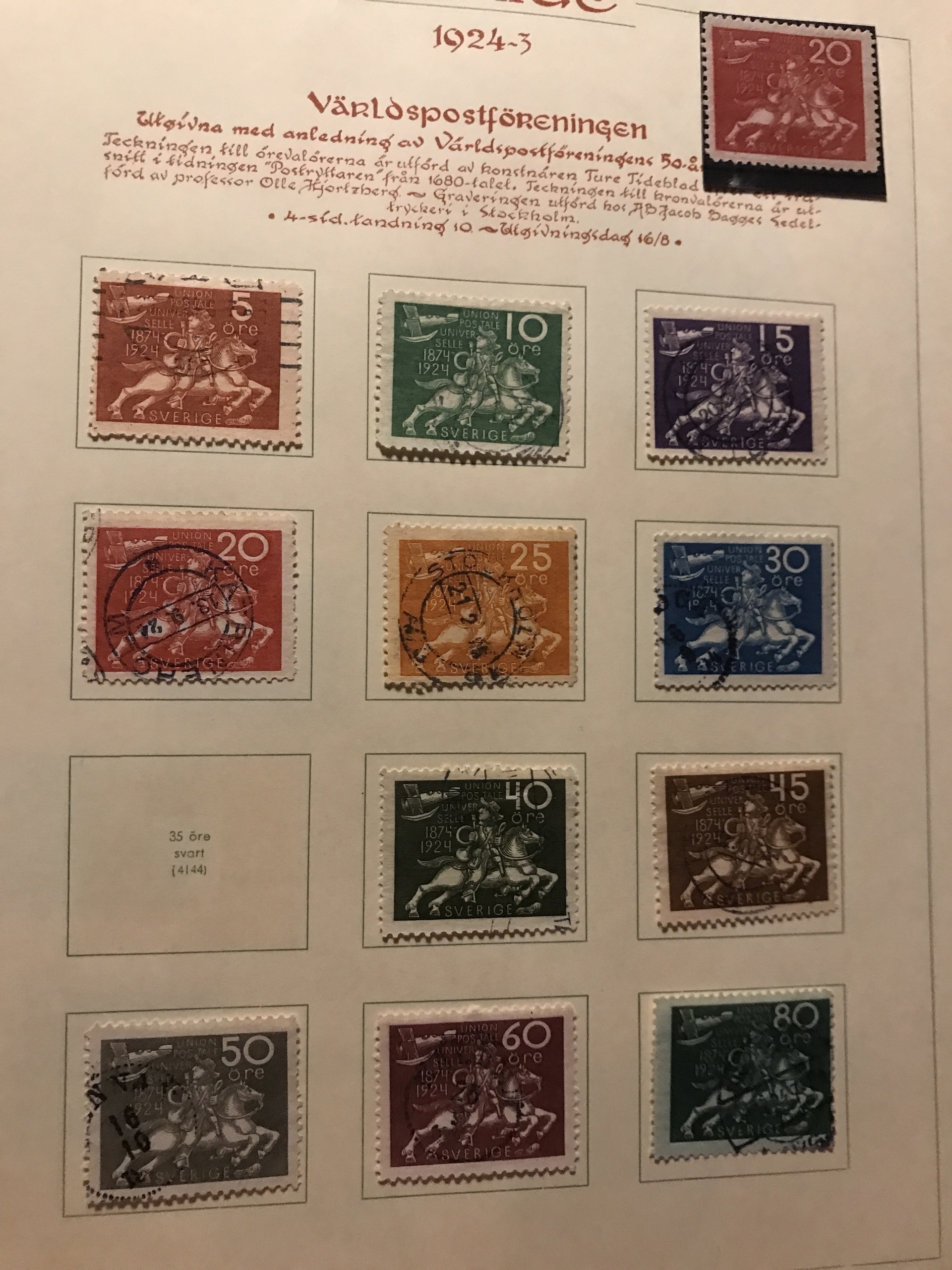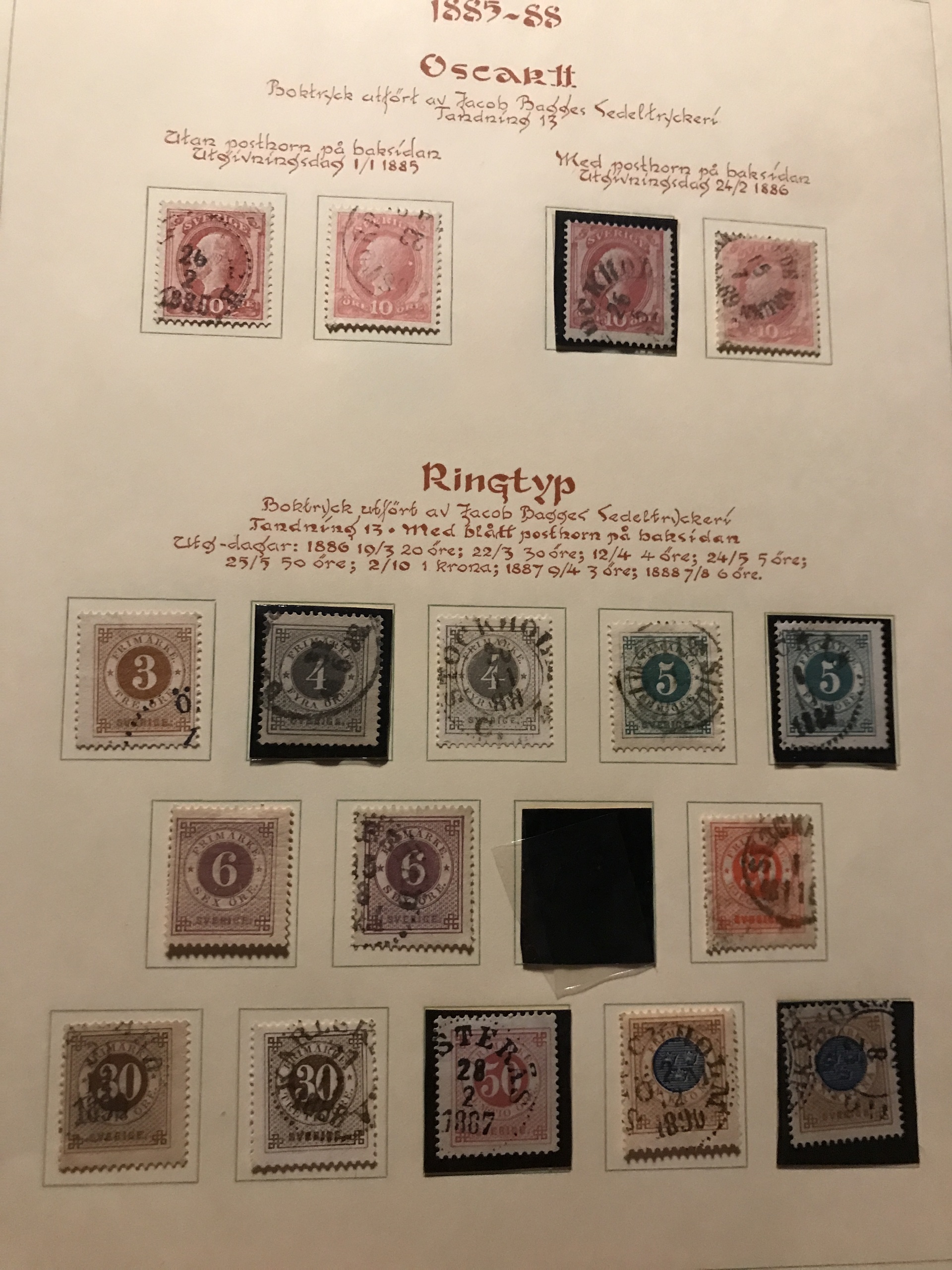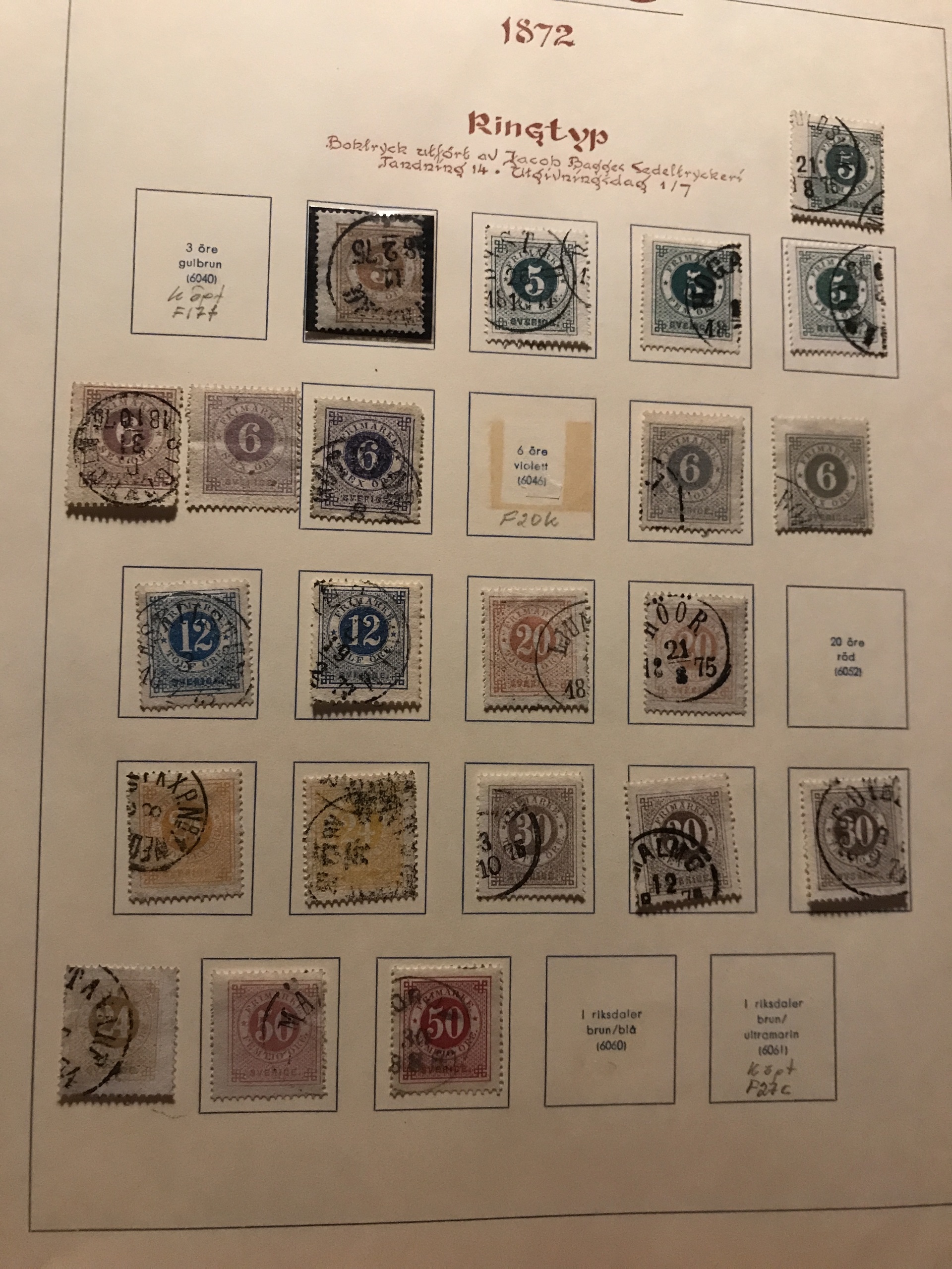 Sweden. Used. Collection Coat-of Arms-1963 in Estett album incl. many Circle types, Officials and Postage due stamps, öre-values 1924, Coil stamps with wmks etc. Please see a selection of scans at www.philea.se. Mostly fine quality.