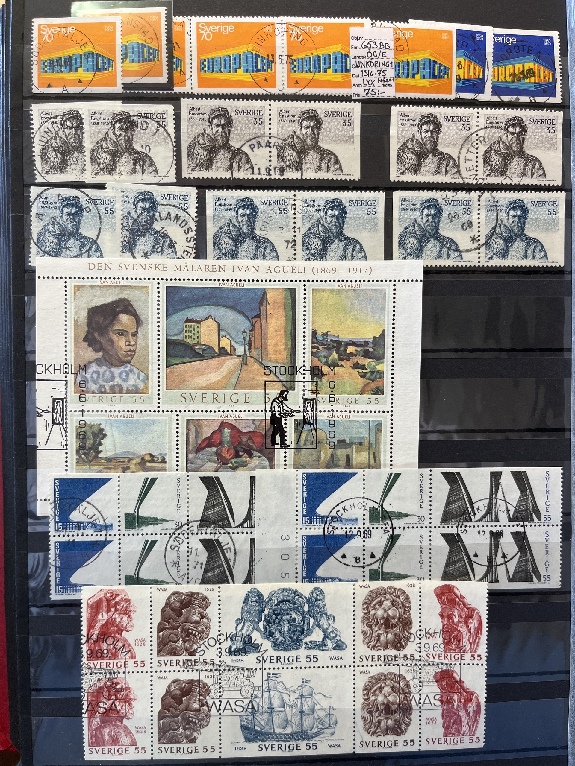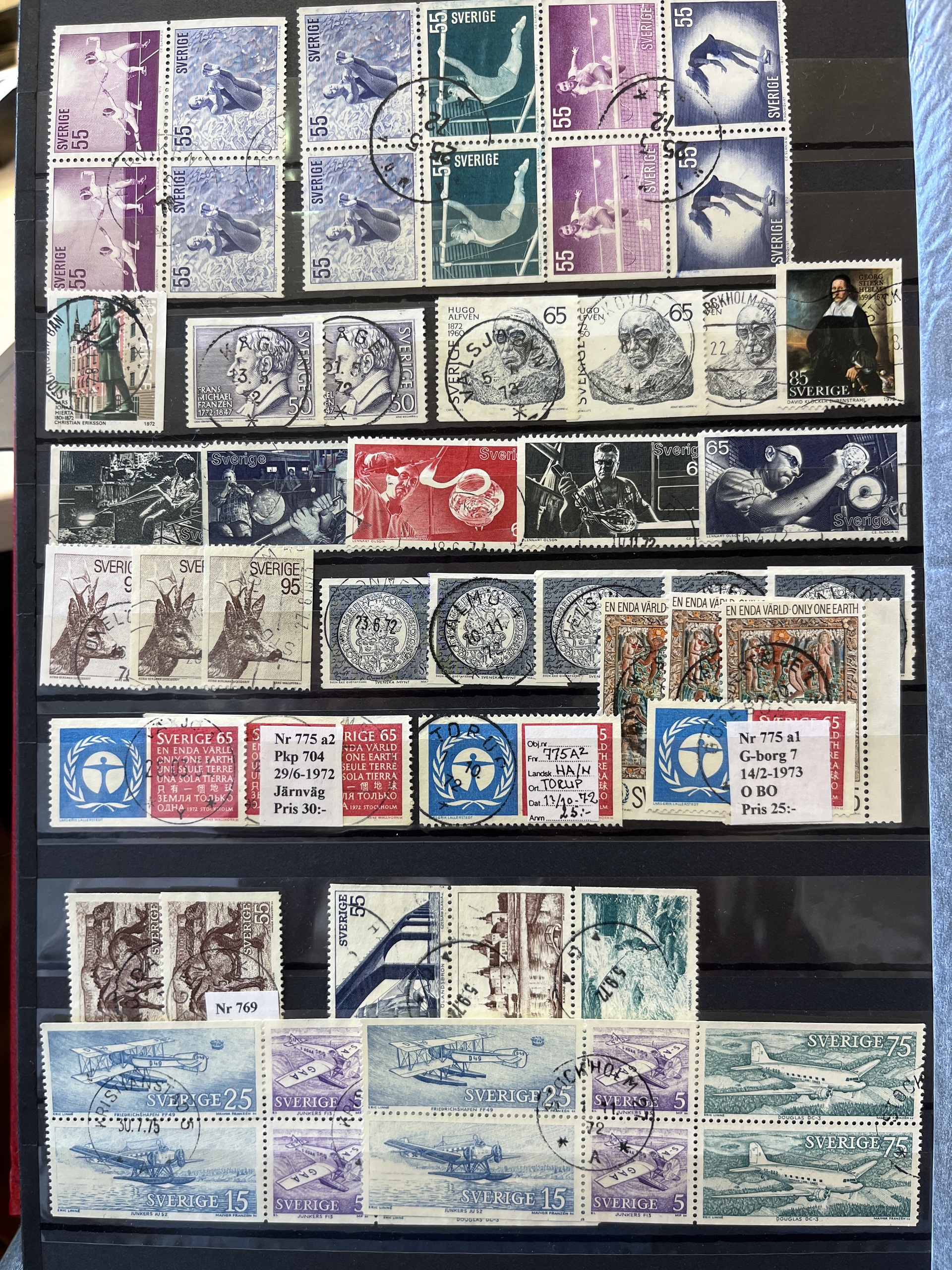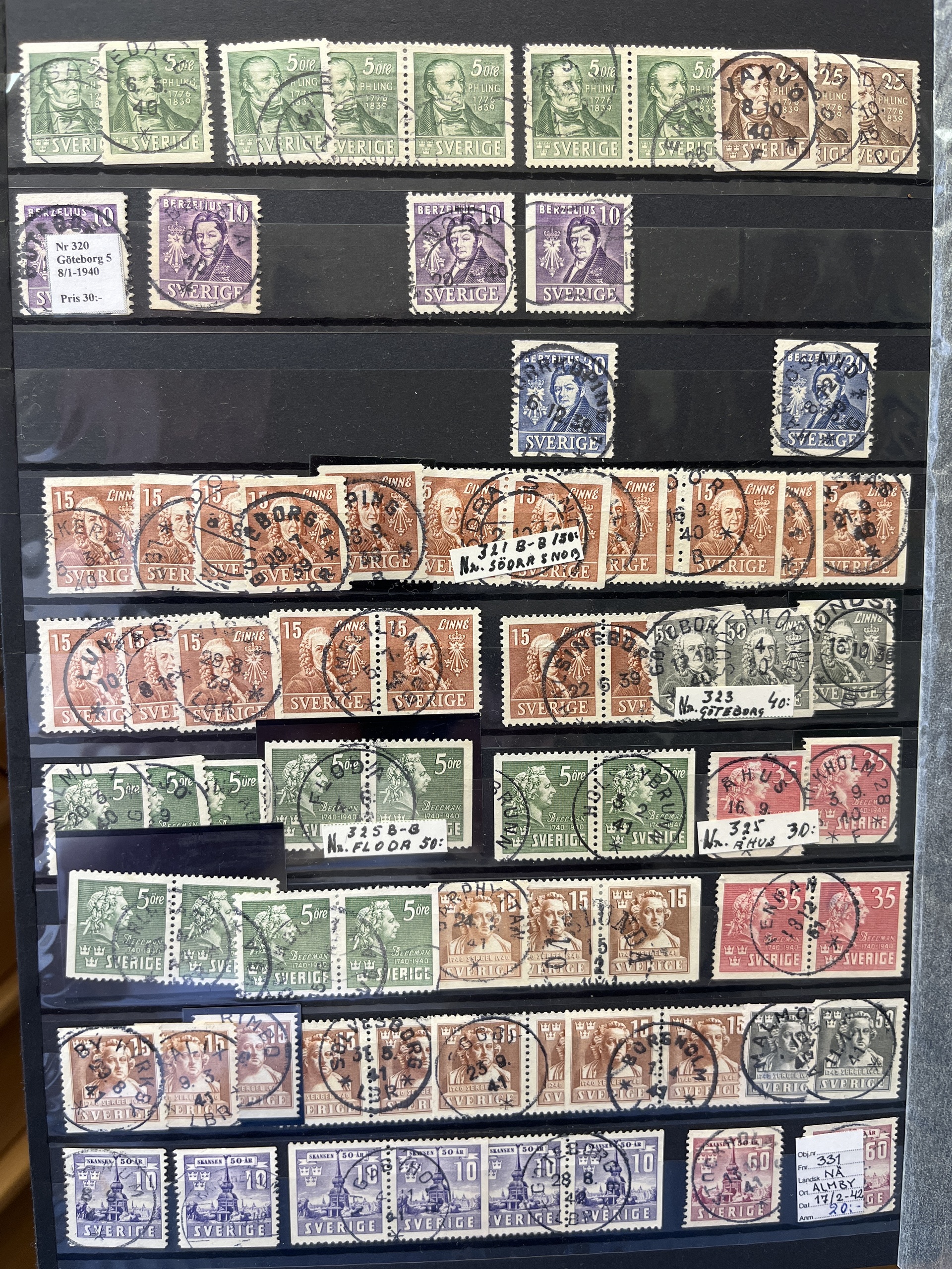 Sweden. Collection/accumulation used 1928–1972 in stockbook. Many EXELLENT canc. and some BC/CB-pairs. Fine quality.