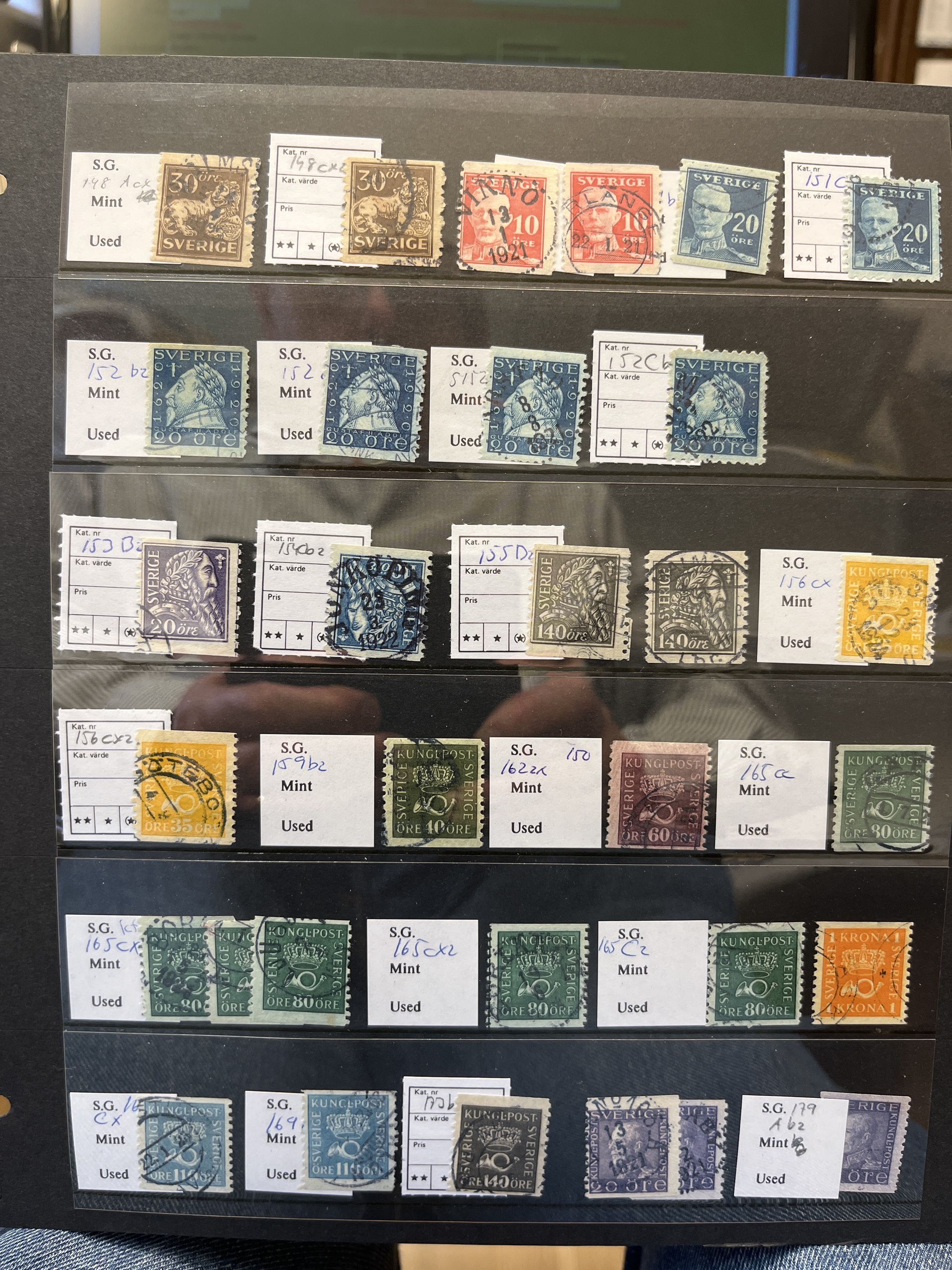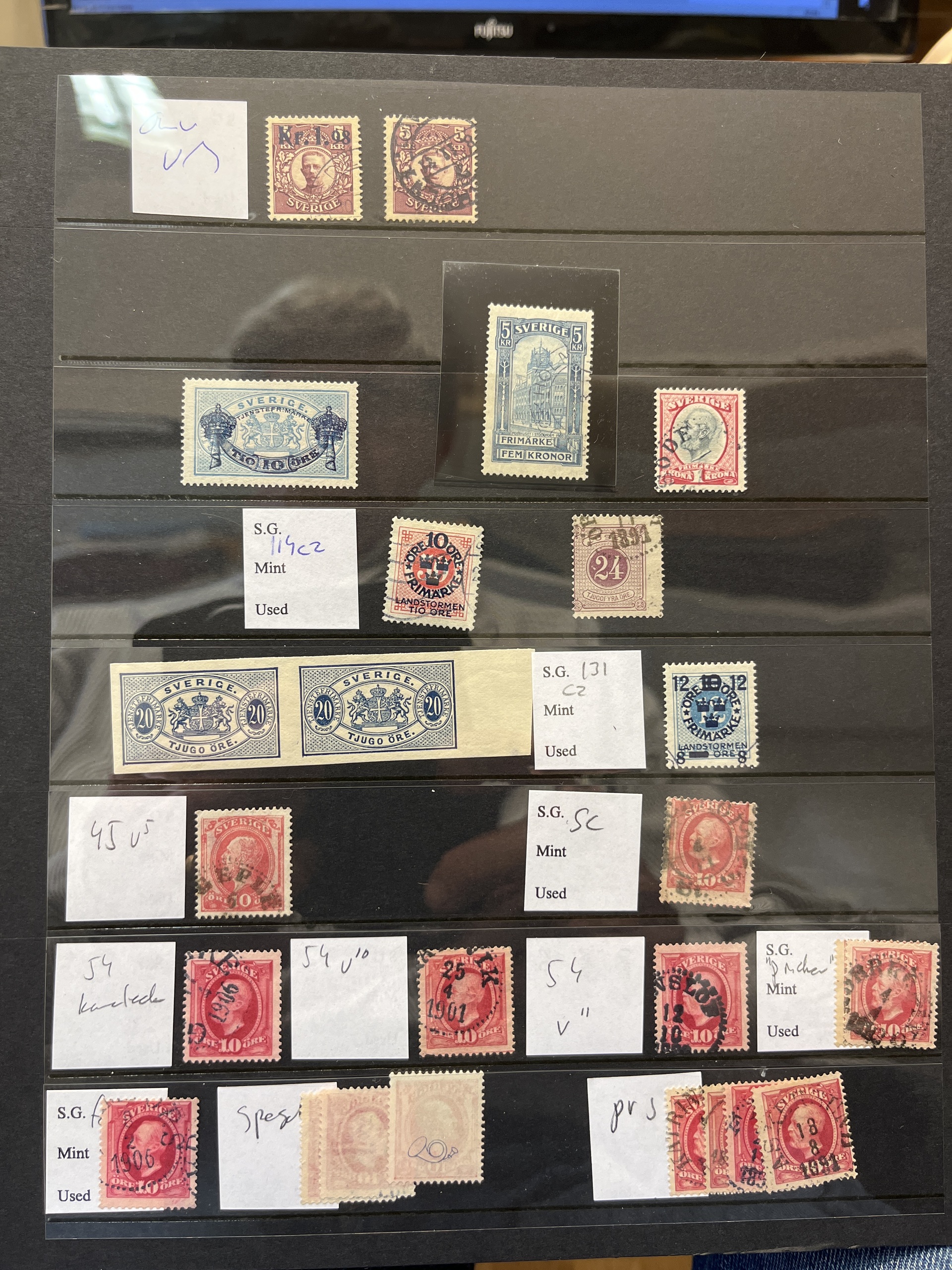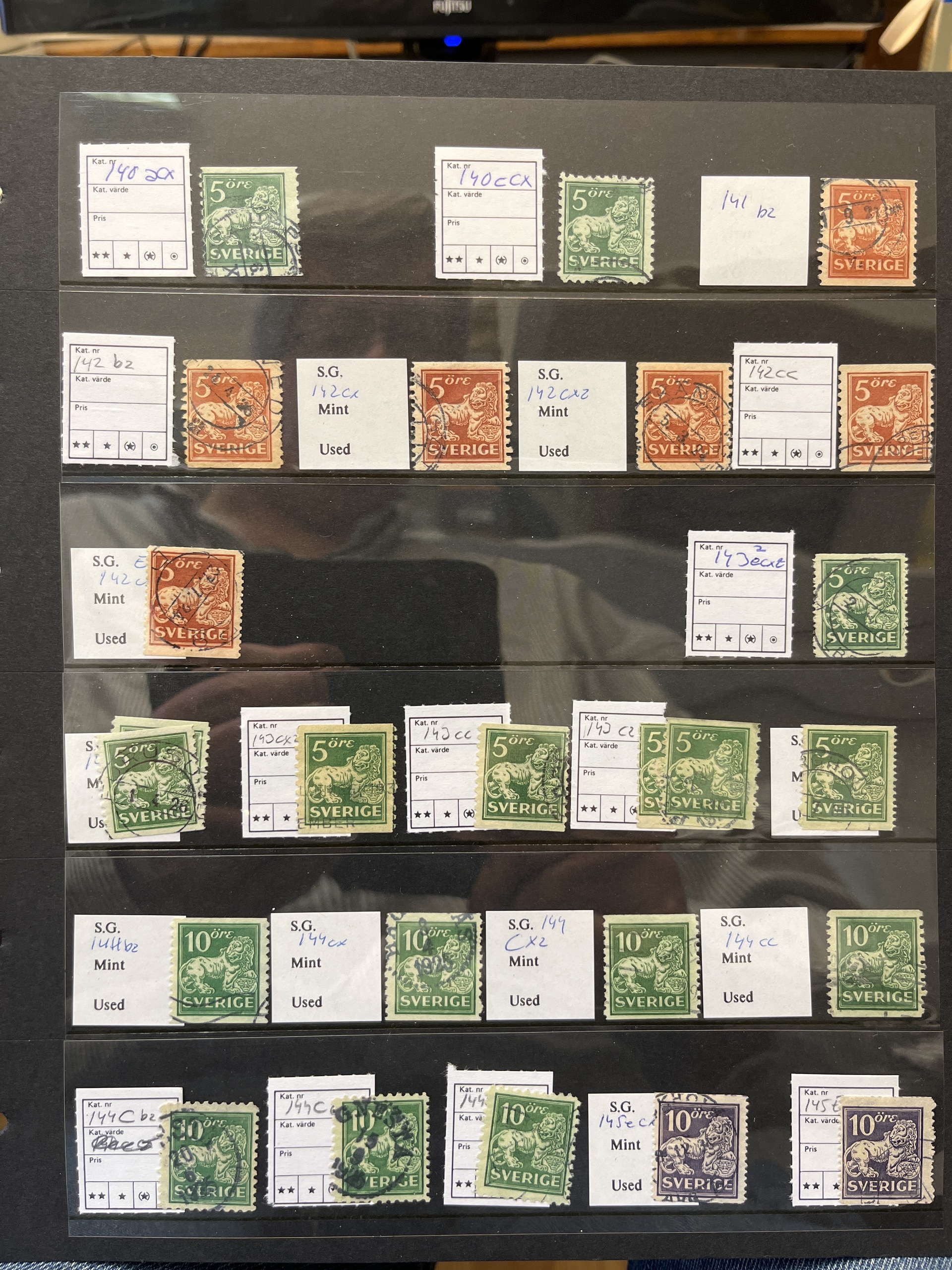 Sweden. Lot mostly used on four visir leaves. Many with nice canc. or good wm. The entire lot is presented at www.philea.se.