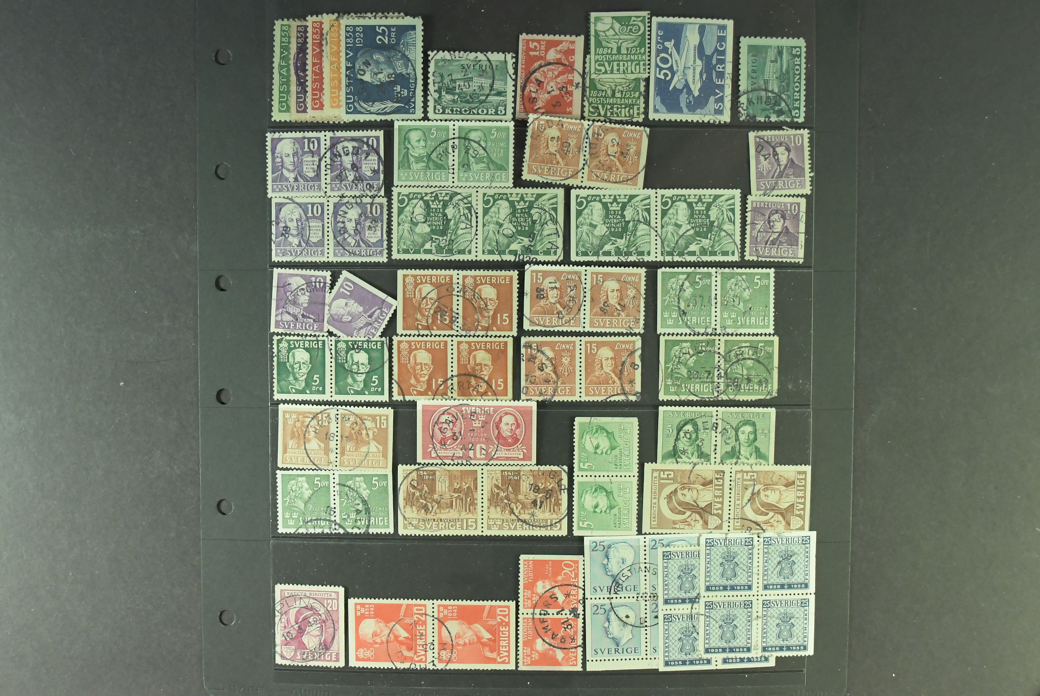 Sweden. Used 1928–1955. All different, e.g. Mi 233c, 235Av, 238, 259BC/CB, 261BC/CB, 266CB, 267BC/CB, 269B+B, 318BC, 321BB/BC/CB, 324BB/BC/CB, 344BB. Mostly good quality. F SEK 10130 (Ca. 45)