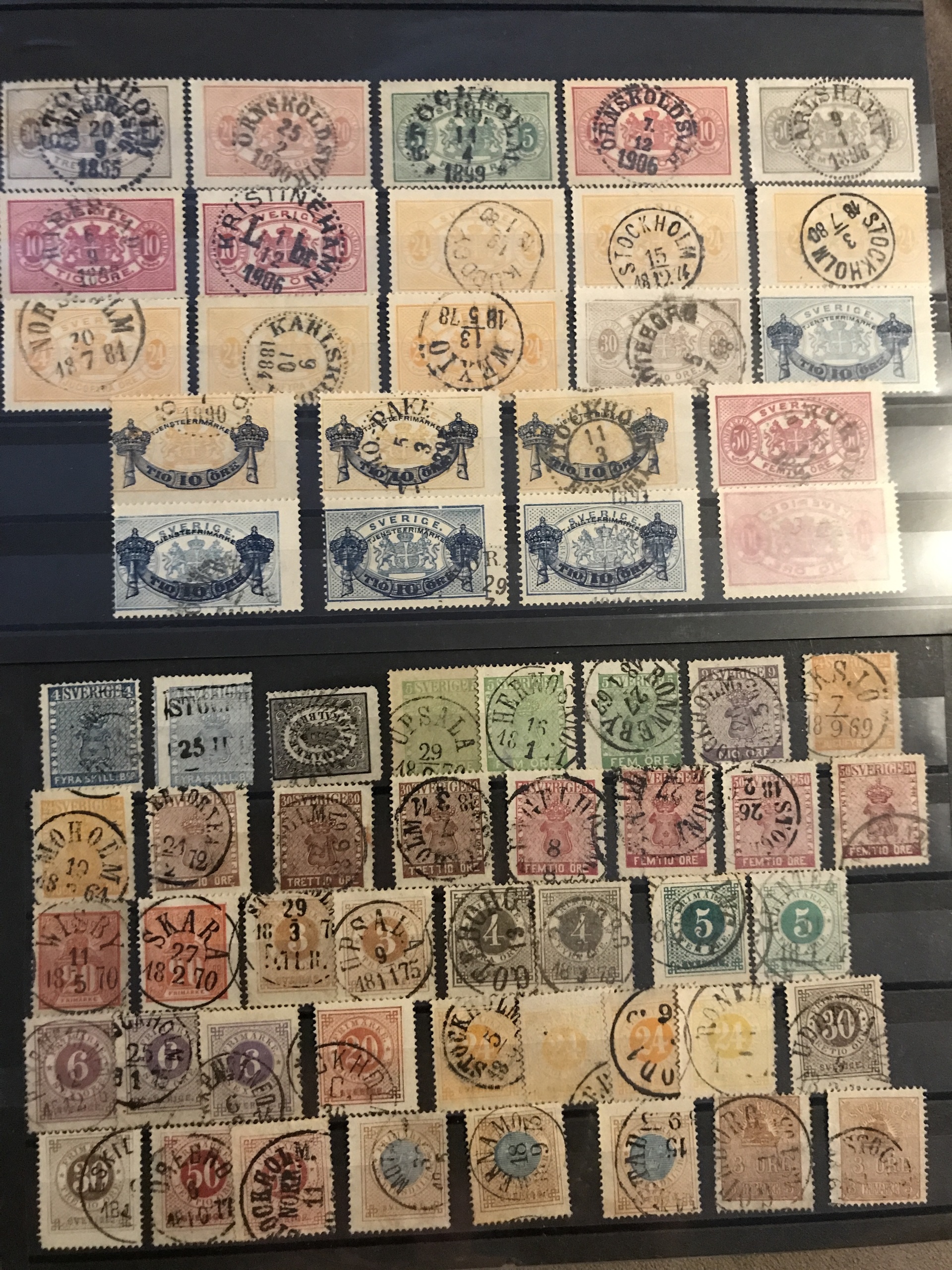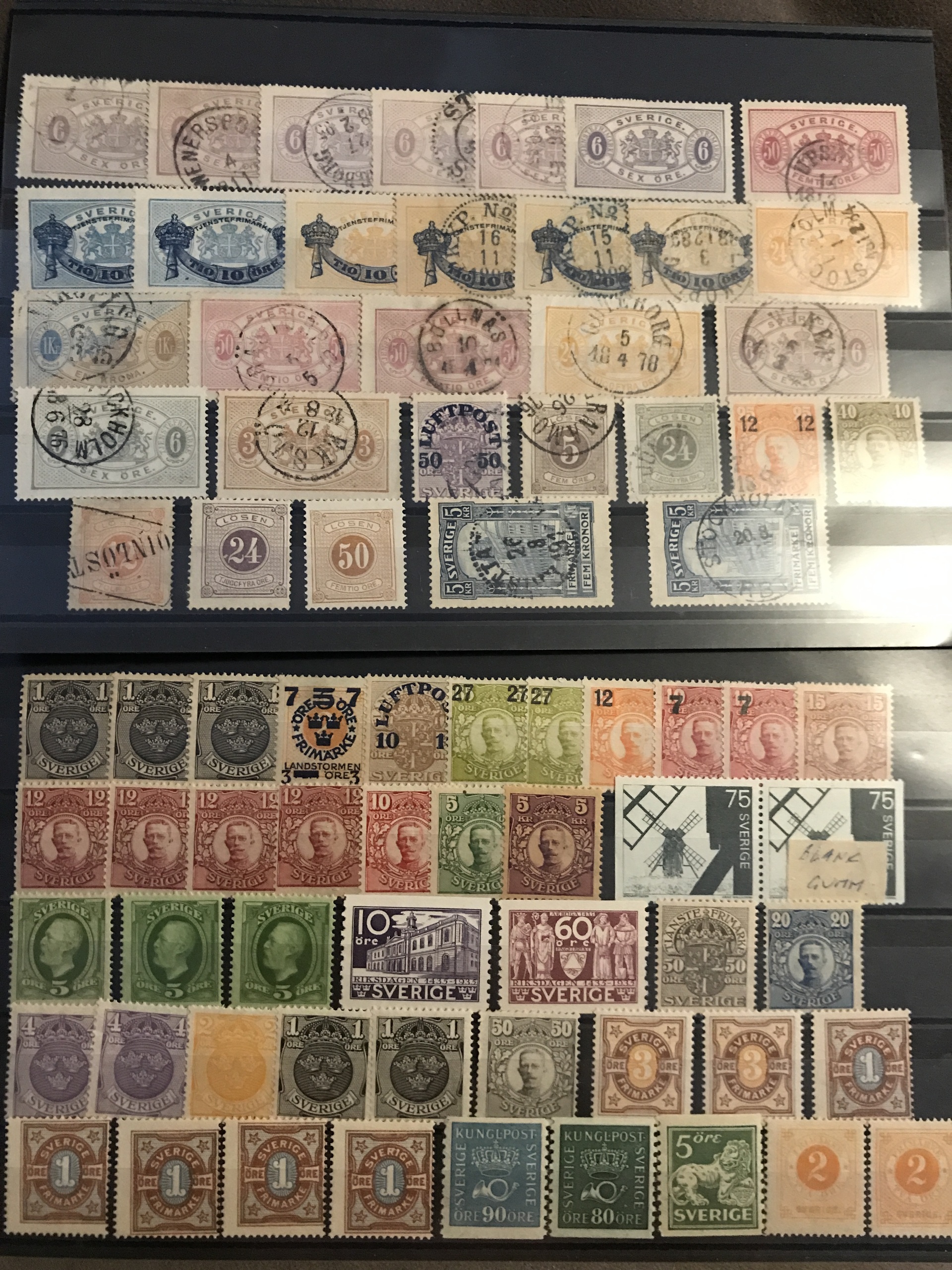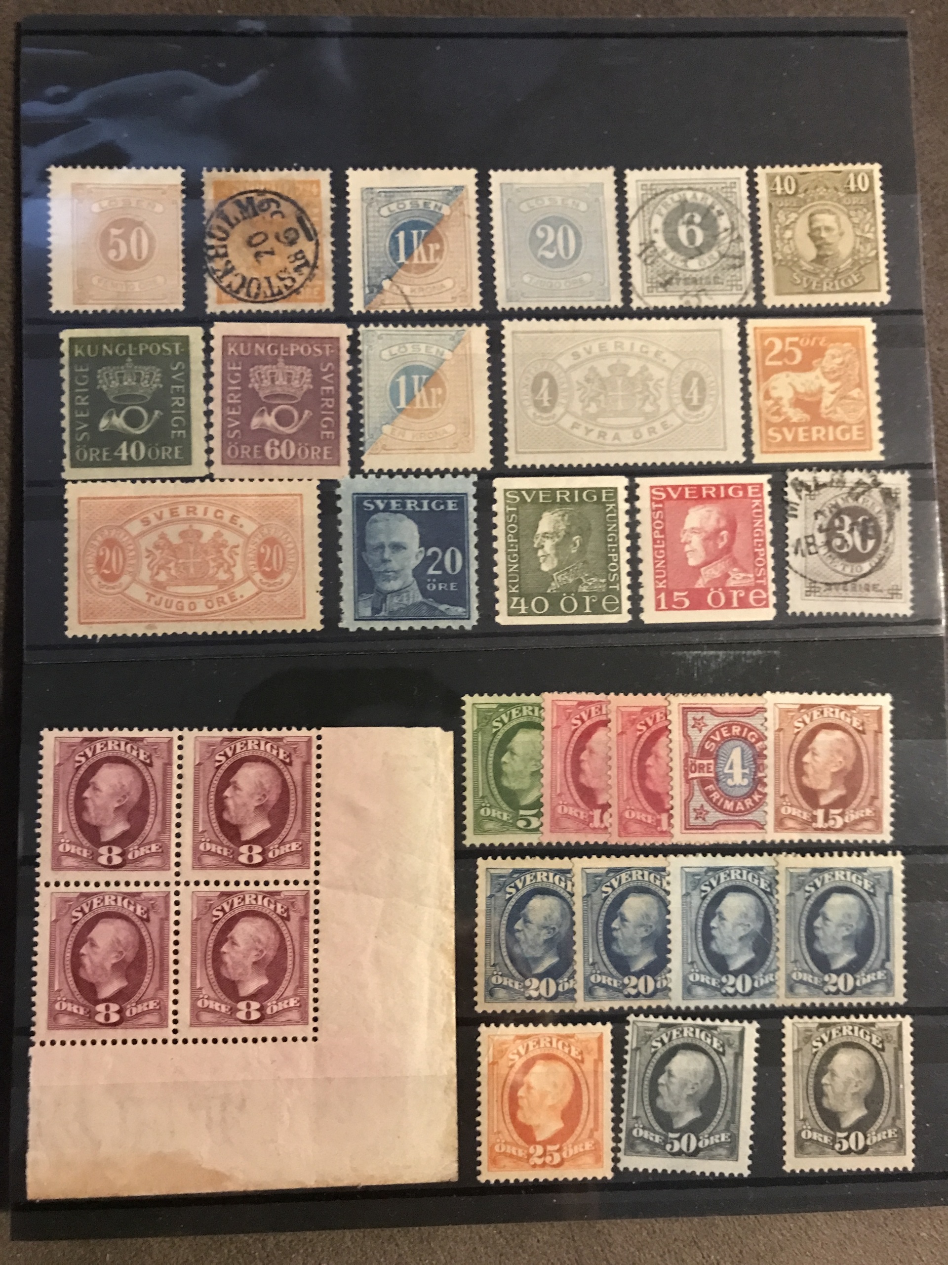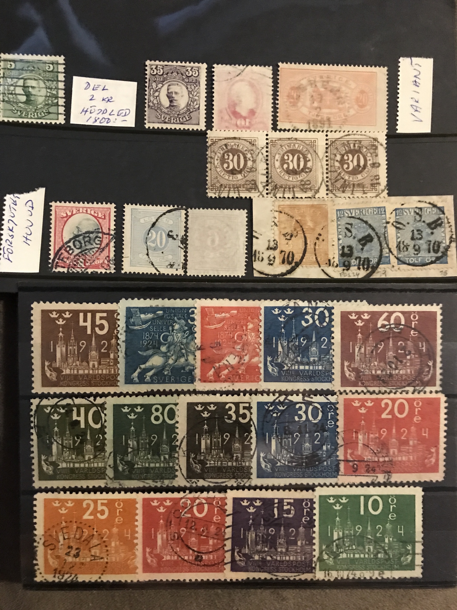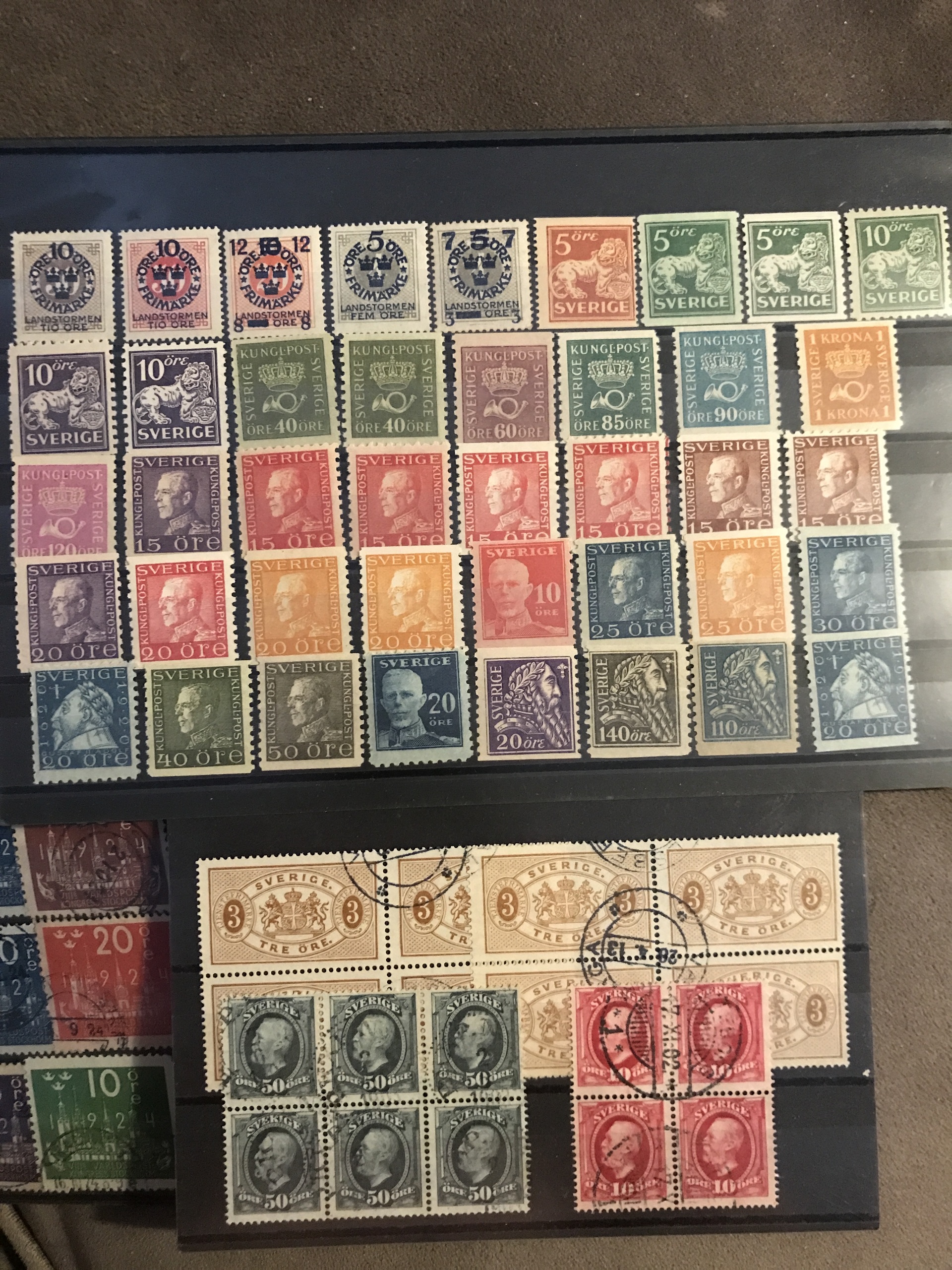 Sweden. ★★/★/⊙. Interesting lot 4 skill–1940s on stock cards incl. nice Coat-of-Arms, Circle types and officials, good coil stamps and 1924-years, 22 BC/CB-pairs incl. nice **/o, some blocks-of-four and nice cancellations, etc. (400)
