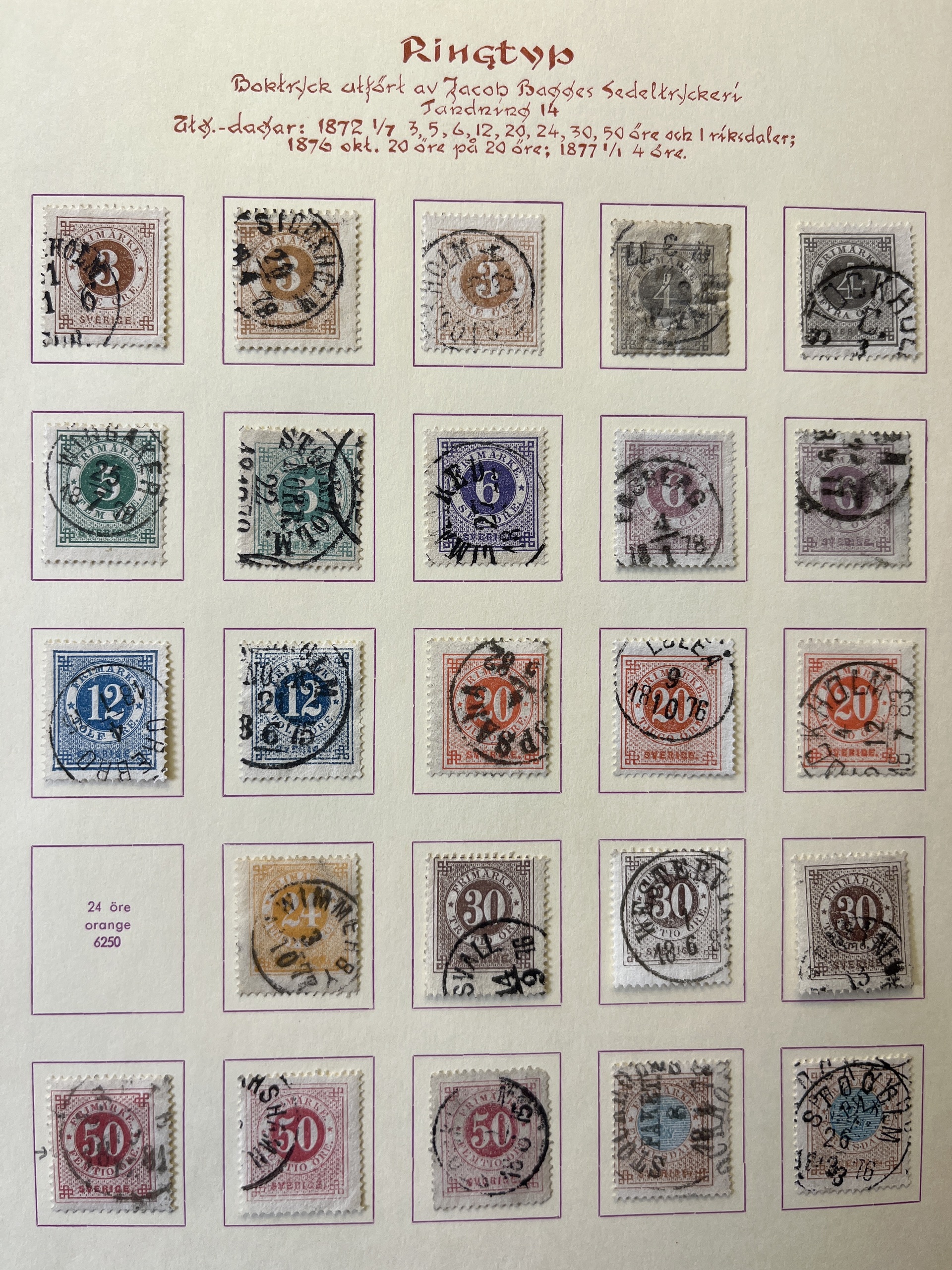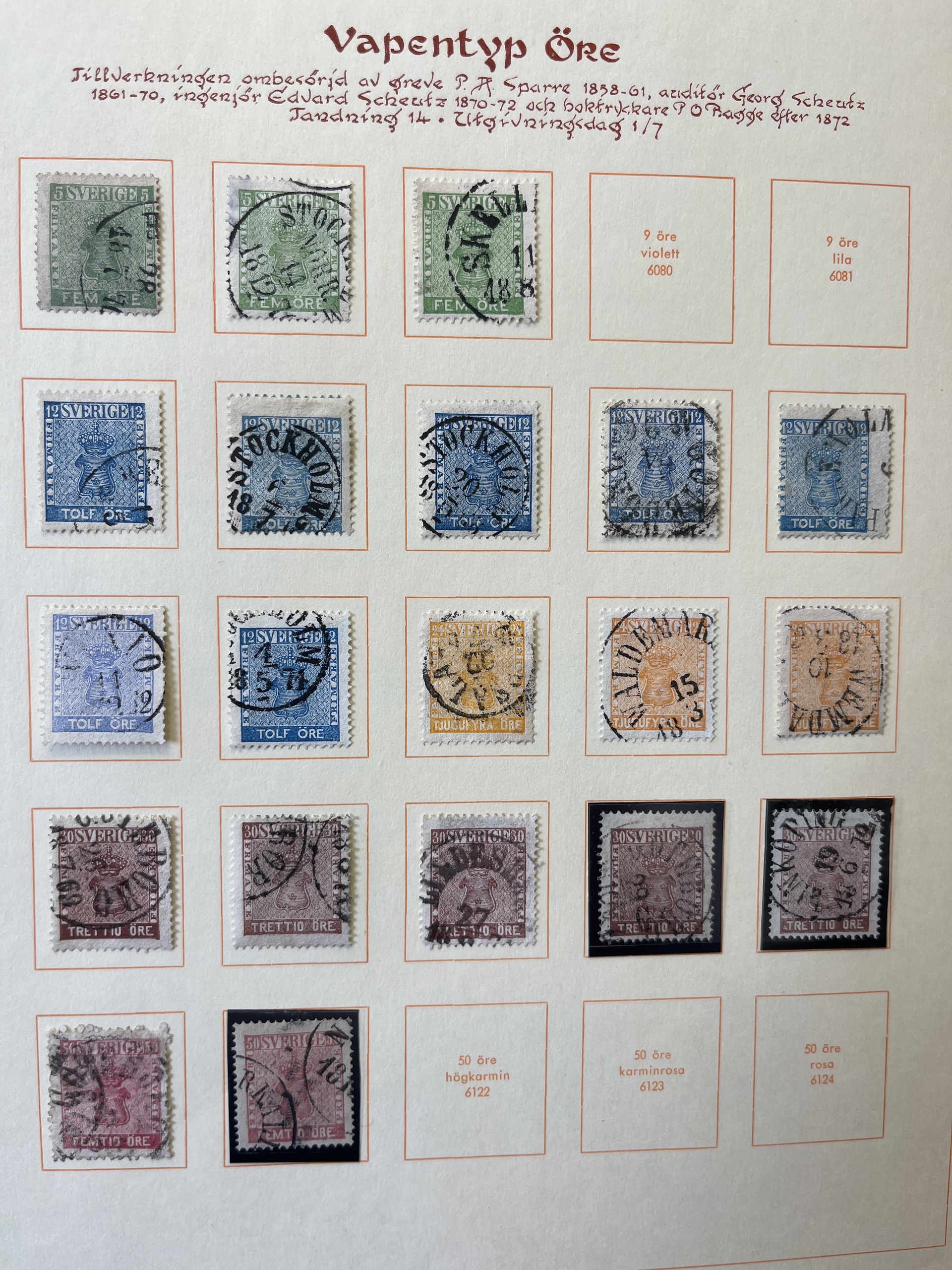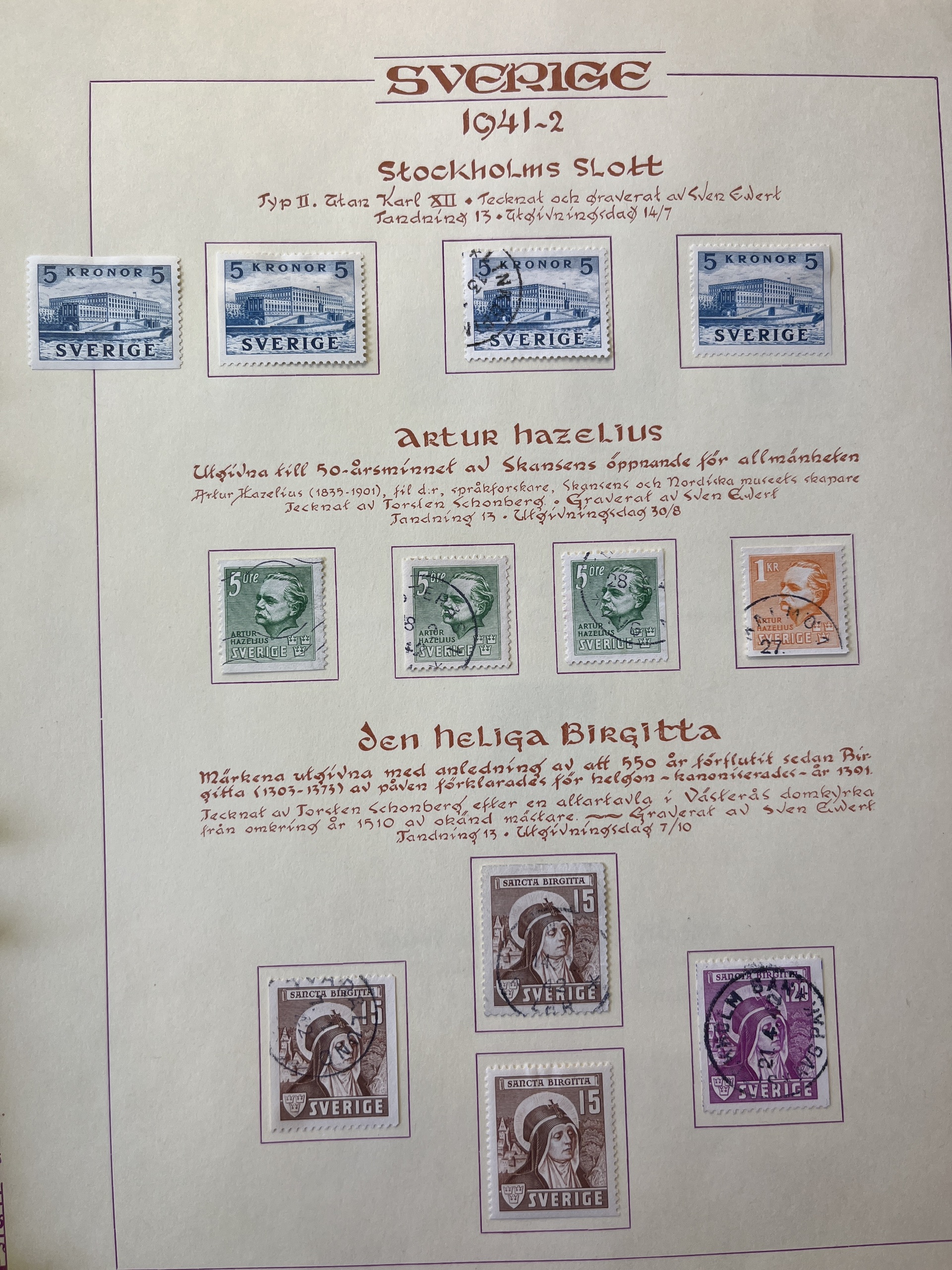 Sweden. Collection ★/⊙ 1858–1954 in Estett album. Please see a selection of scans at www.philea.se. Mostly fine quality.