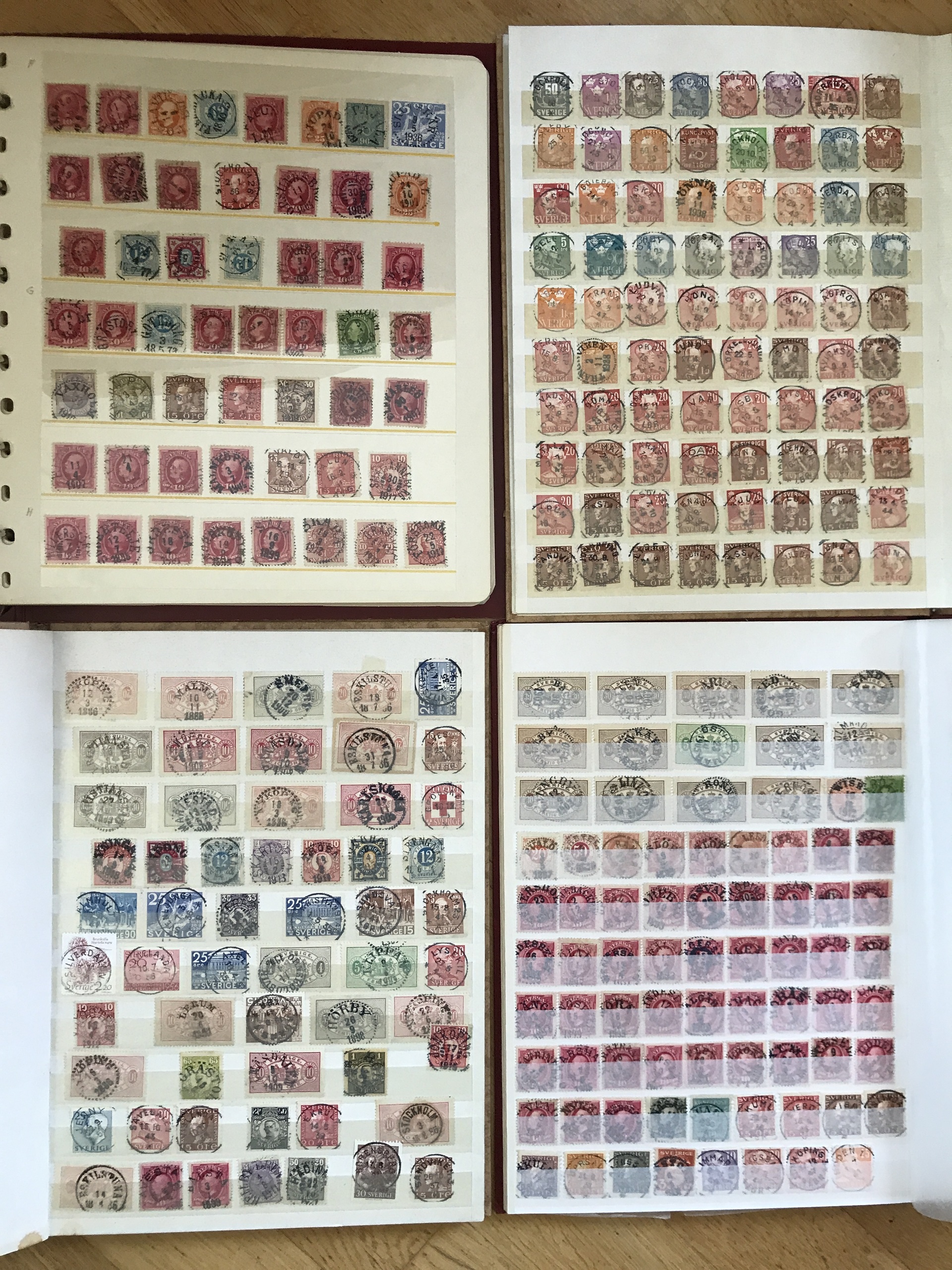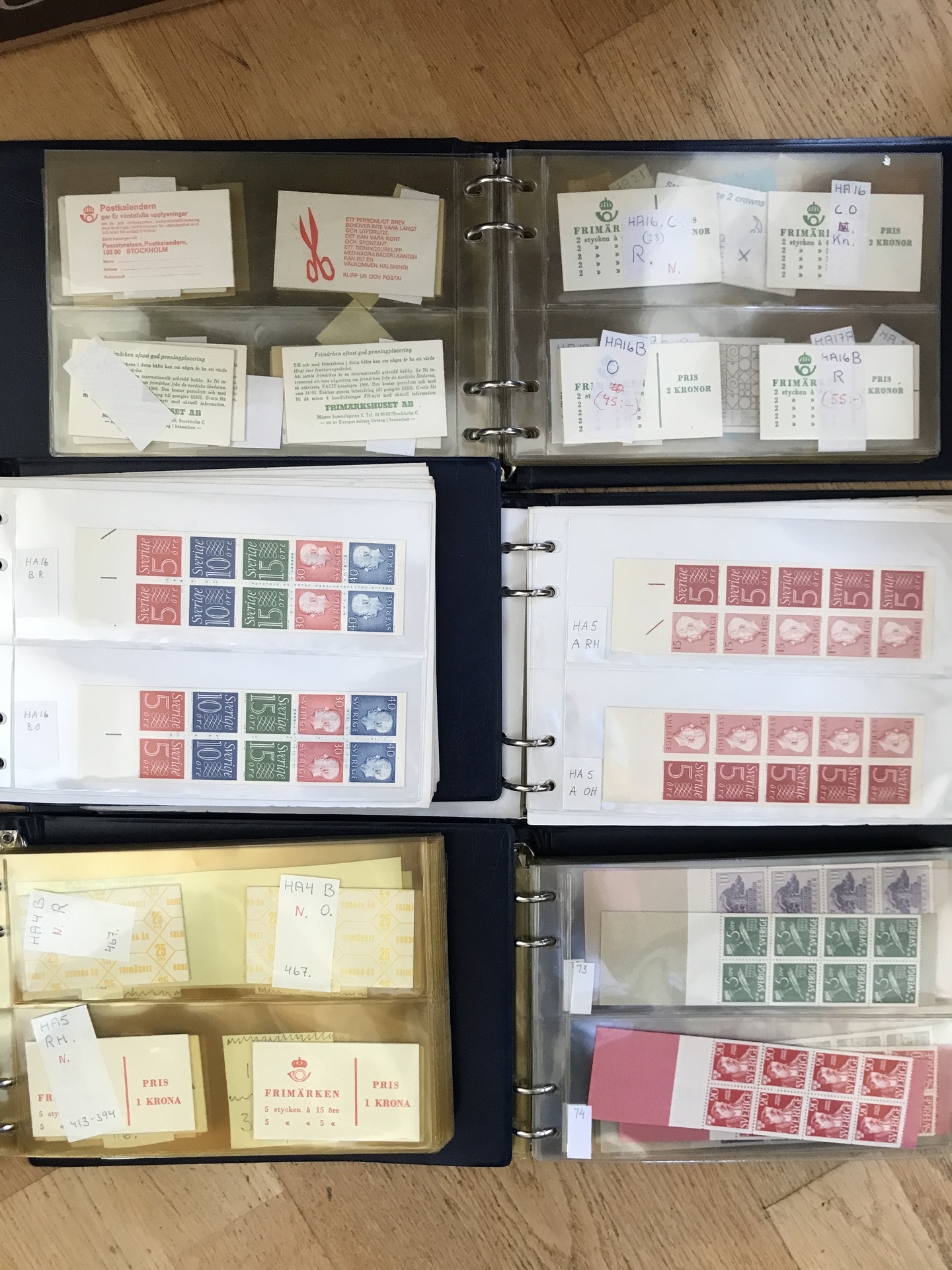 Sweden. ★★/⊙. Accumulation old–modern in nine stockbooks and ten binders incl. several nice cancellations, better stamps, booklets and slot-machine booklets incl. nine HA5 and seven HA6, etc. Mostly fine quality. Approx. 16 kg.