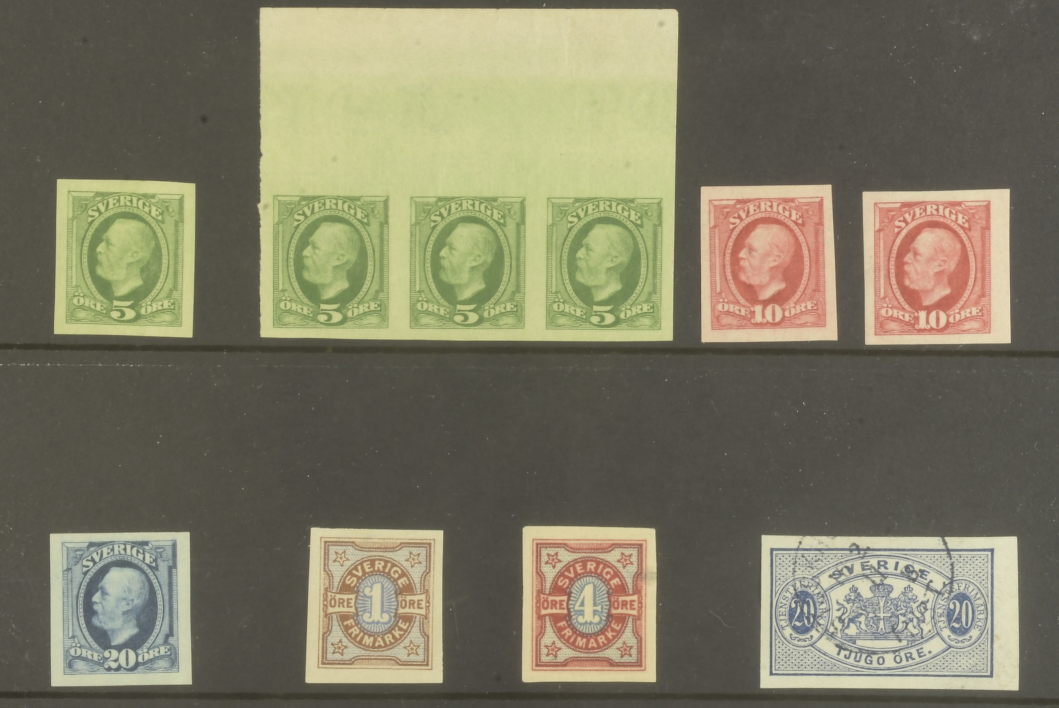 Sweden. Lot ★/⊙. Ten imperforated stamps. Mostly fine quality.
