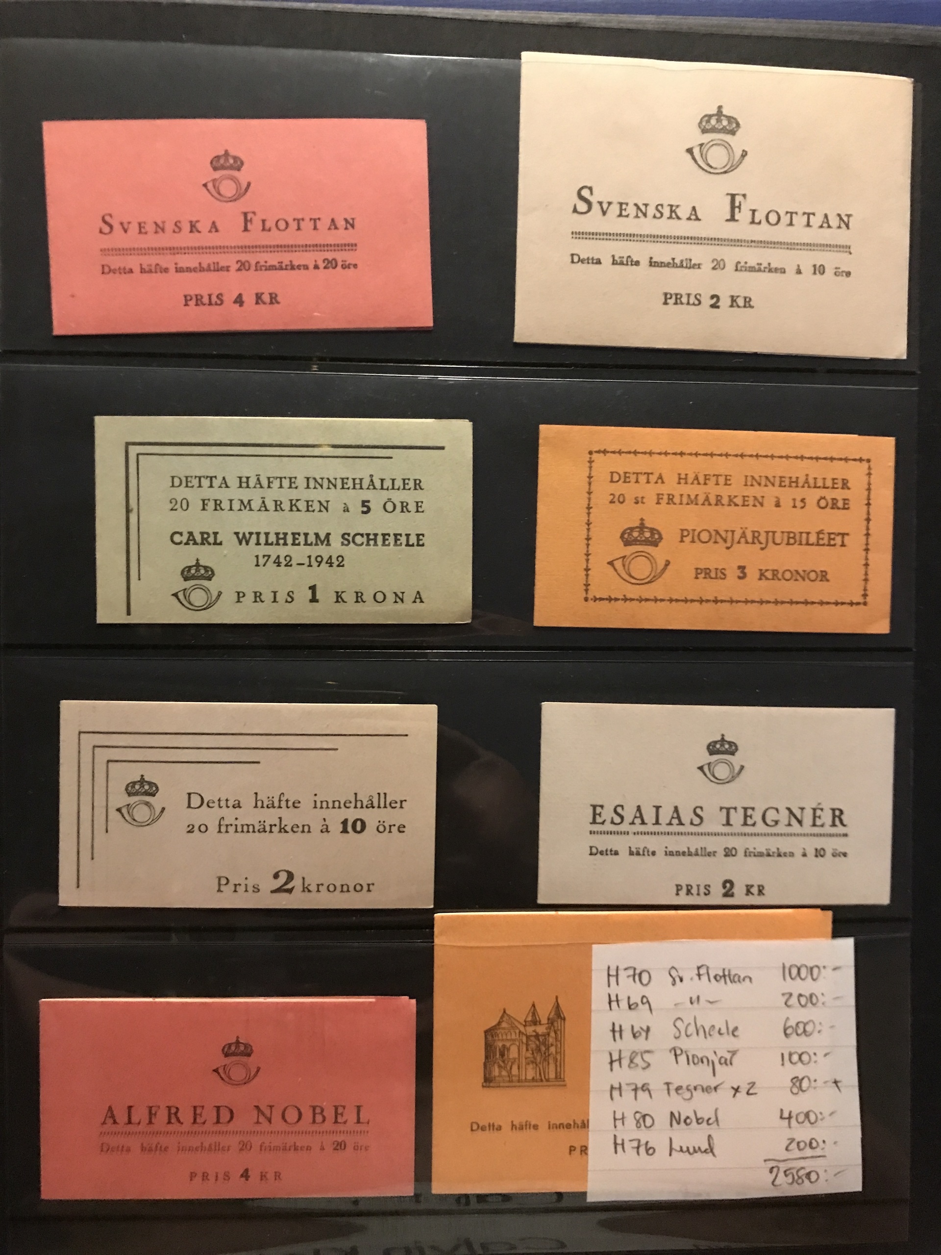 Sweden. Booklets. Two Visir binders with about 210 booklets mainly 1932–72 incl. 22 handmade. Containing e.g. four H23, six H24, one H27, three H28, 29, 31, five Swedenborg incl. four CB, H35C. Further e.g. H60 and 70 and some slot-machine booklets. Please see a selection of scans at www.philea.se.