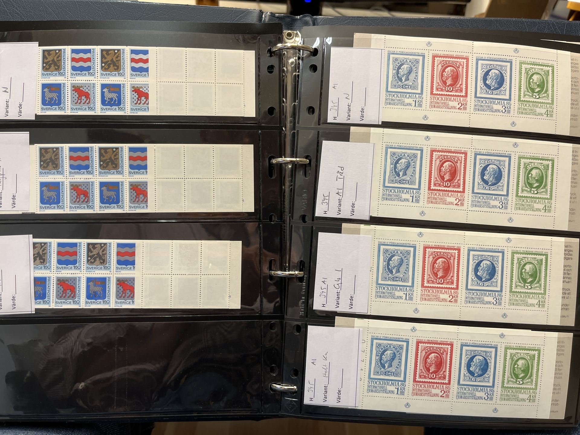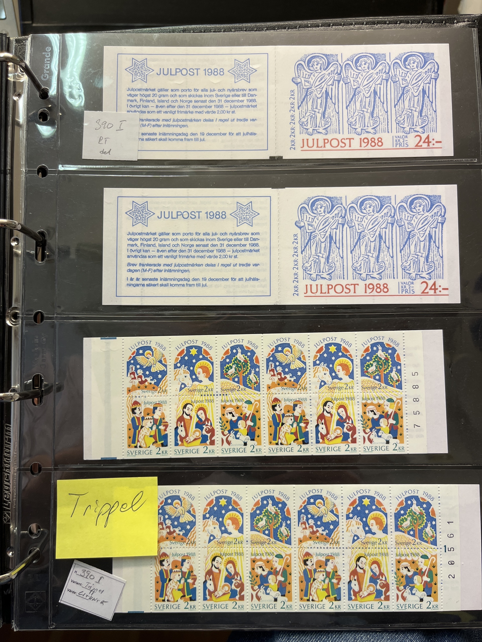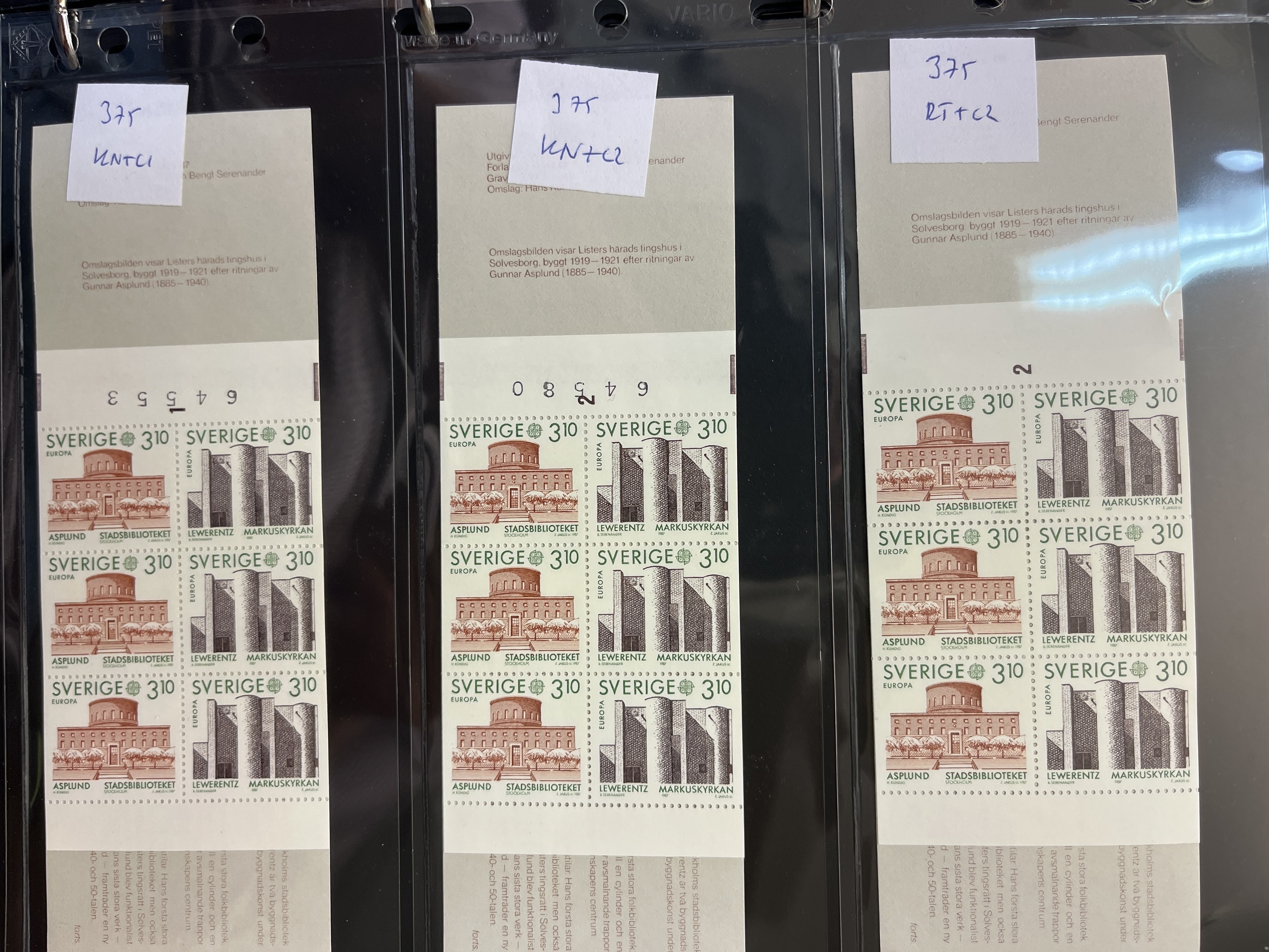 Sweden. Booklets, collection/accumulation 1982–1988 in five Leuchtturm albums with cassette with e.g. 27 discount stamp booklets, Many with cylinder digit, kn and RT. Please see a selection of scans at www.philea.se. Excellent quality. Approx. 15 kg.