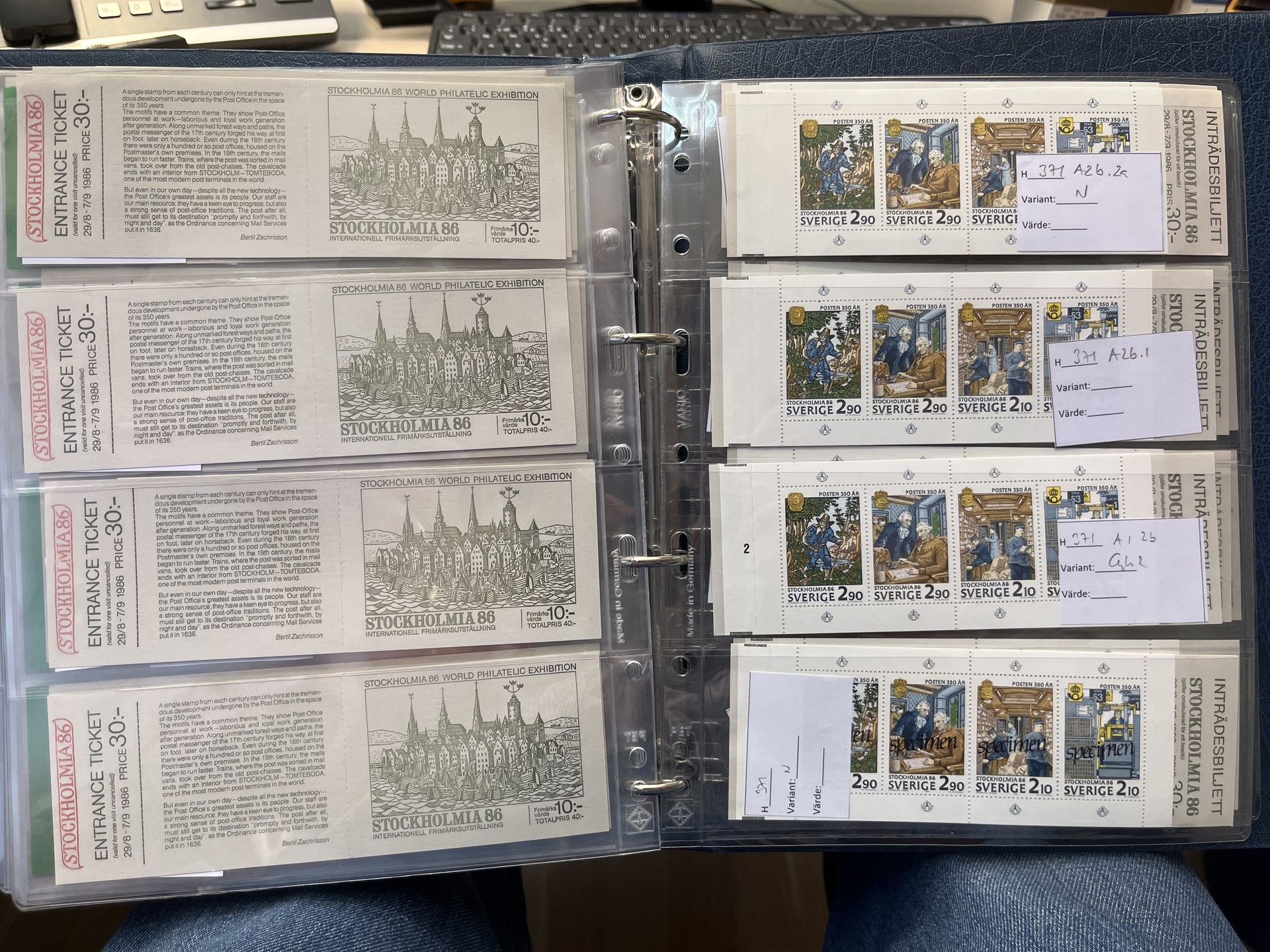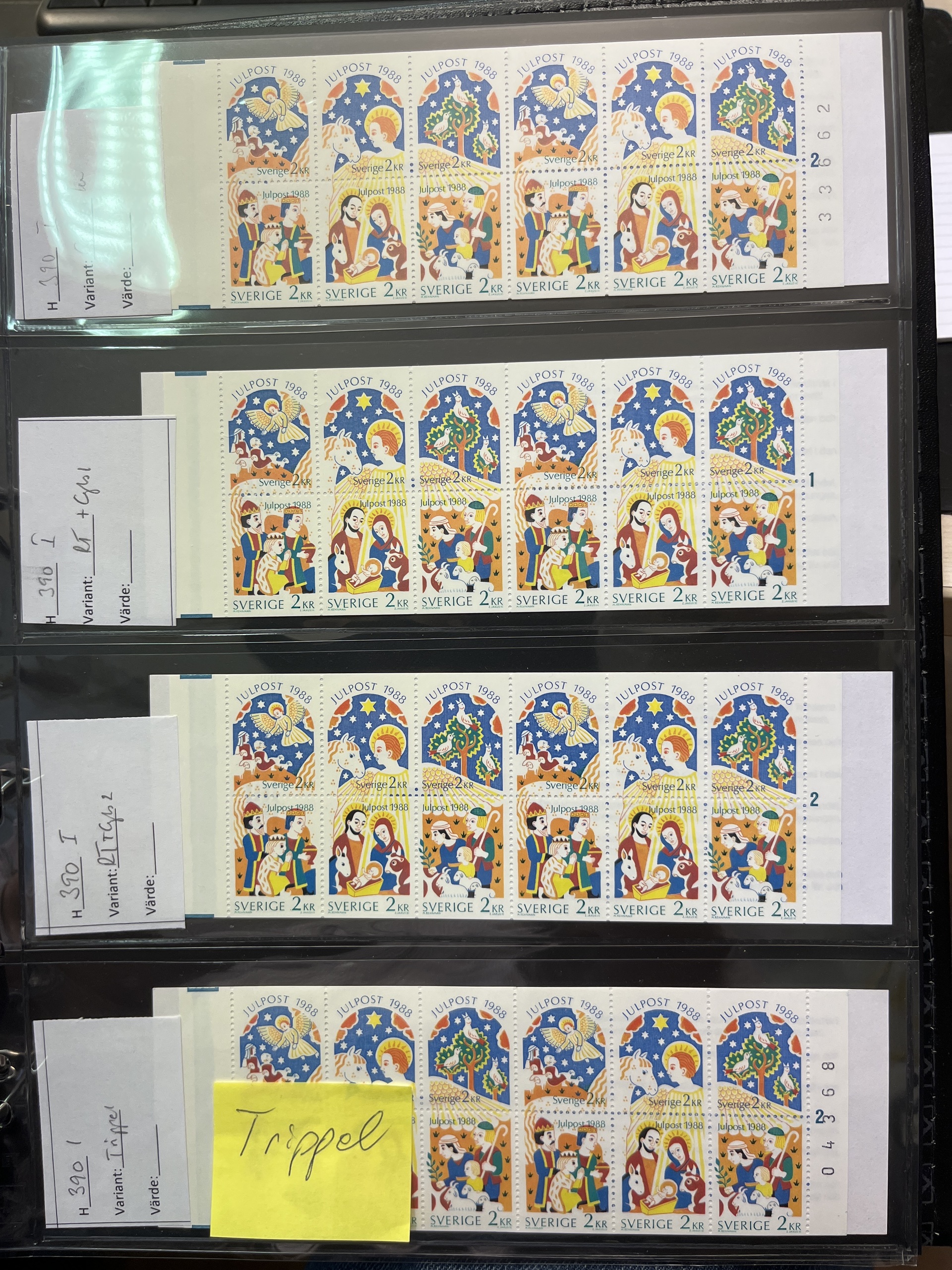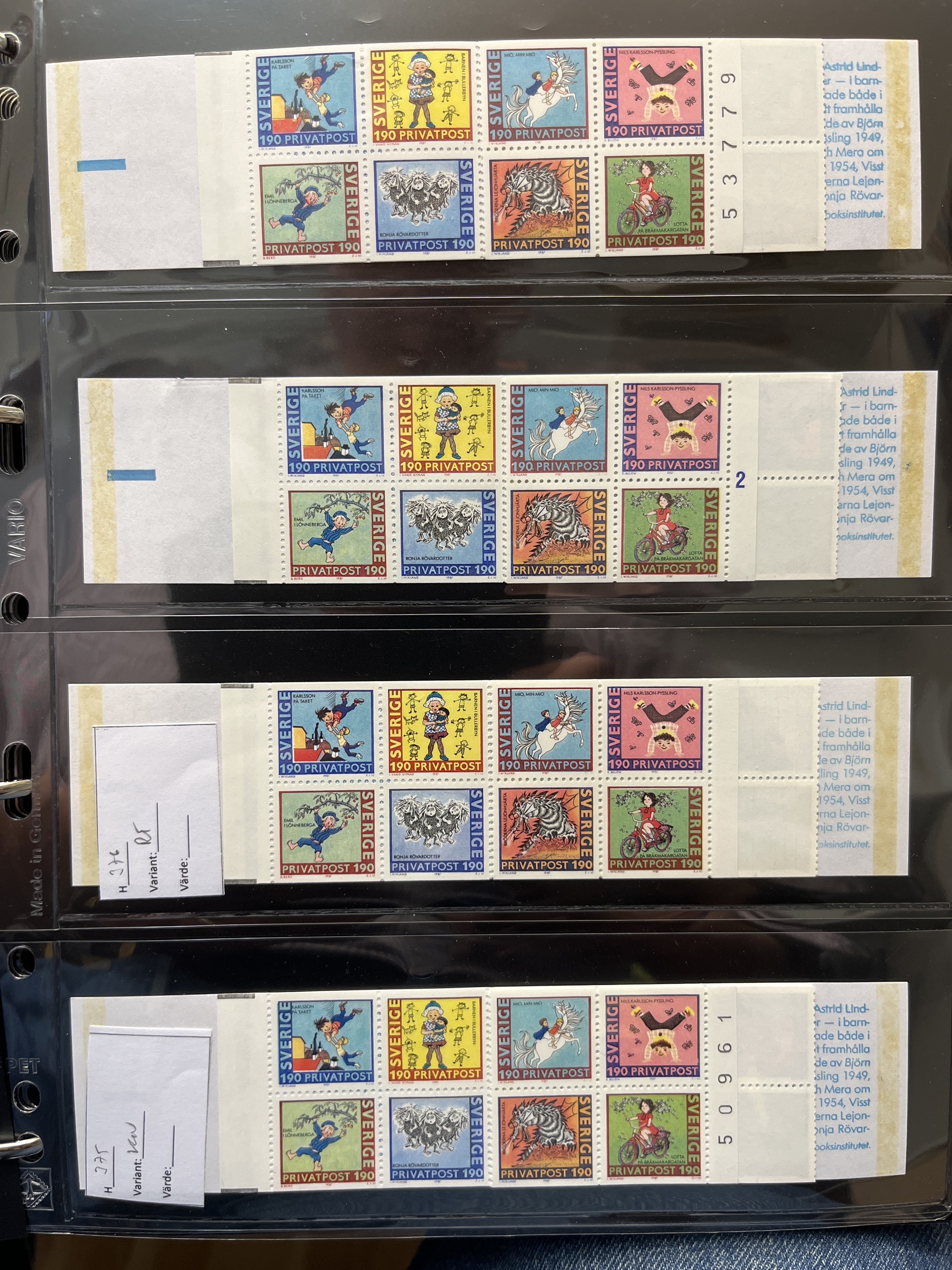 Sweden. Booklets, collection/accumulation 1982–1988 in five Leuchtturm albums with cassette with e.g. 27 discount stamp booklets, Many with cylinder digit, kn and RT. Please see a selection of scans at www.philea.se. Excellent quality. Approx. 15 kg.