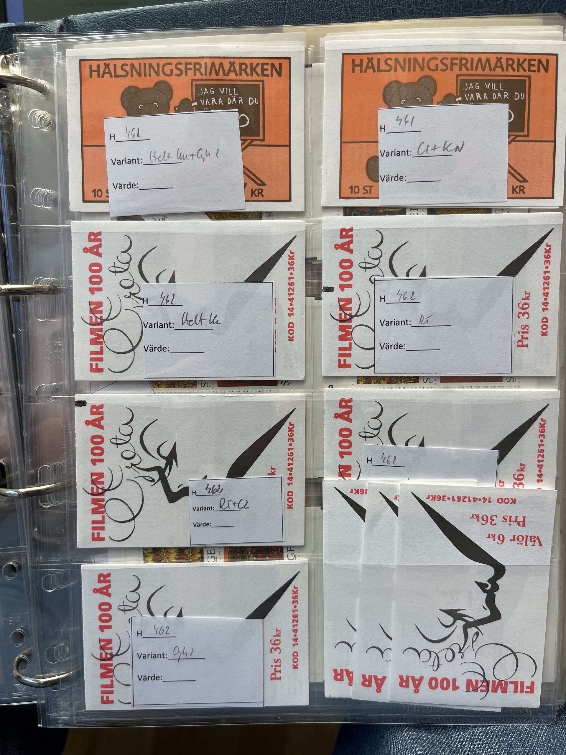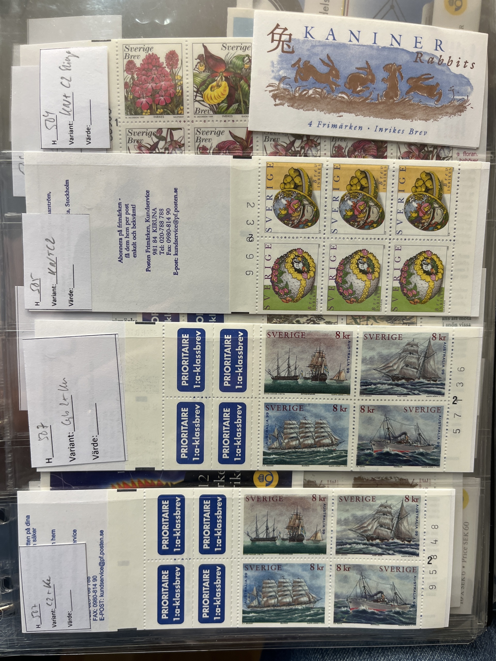 Sweden. Booklets, collection/accumulation 1993–2009 in three Leuchtturm albums with cassette. Many with cylinder digit, kn and RT. High face value. Please see a selection of scans at www.philea.se. Excellent quality. Approx. 8 kg.