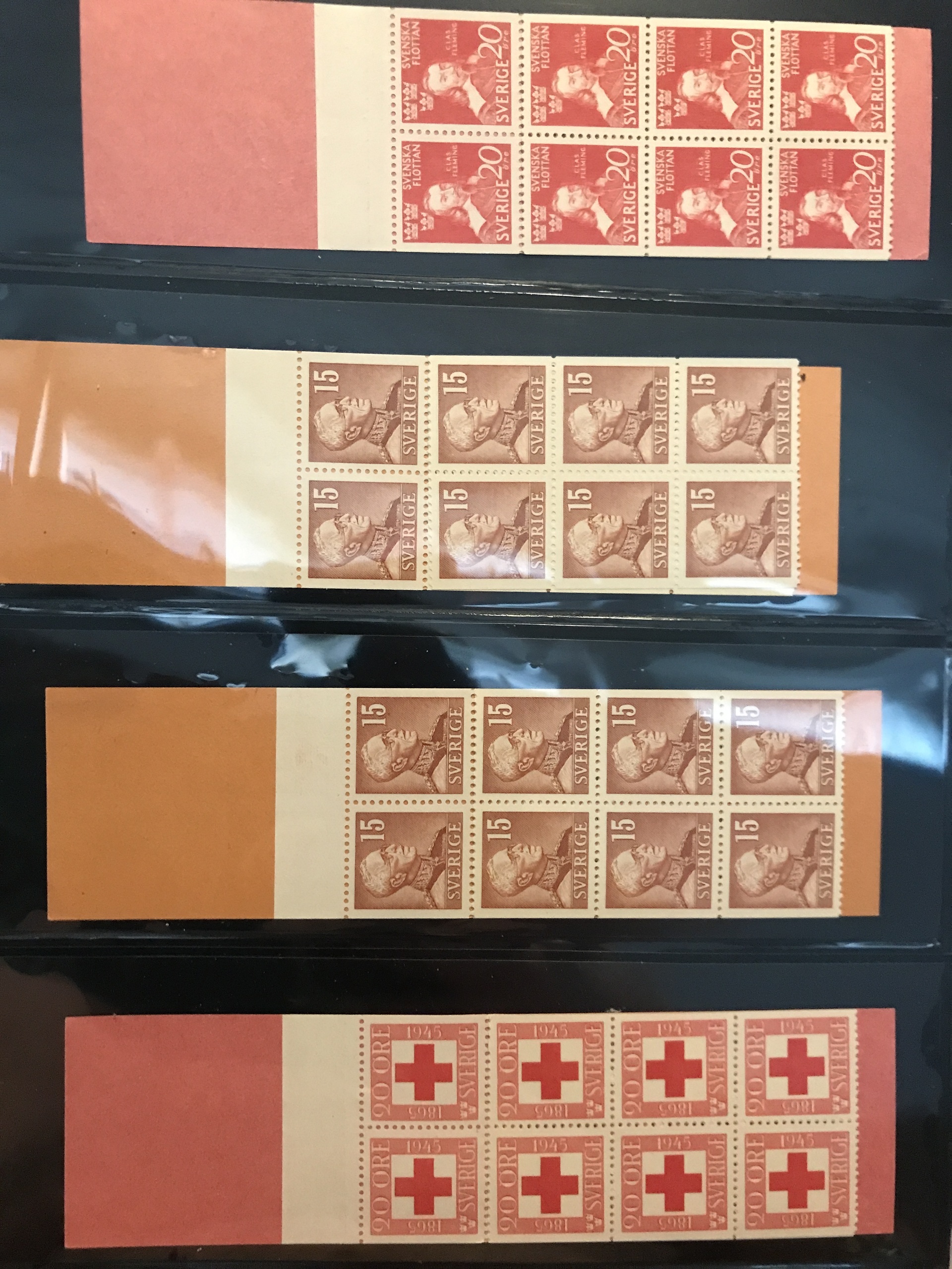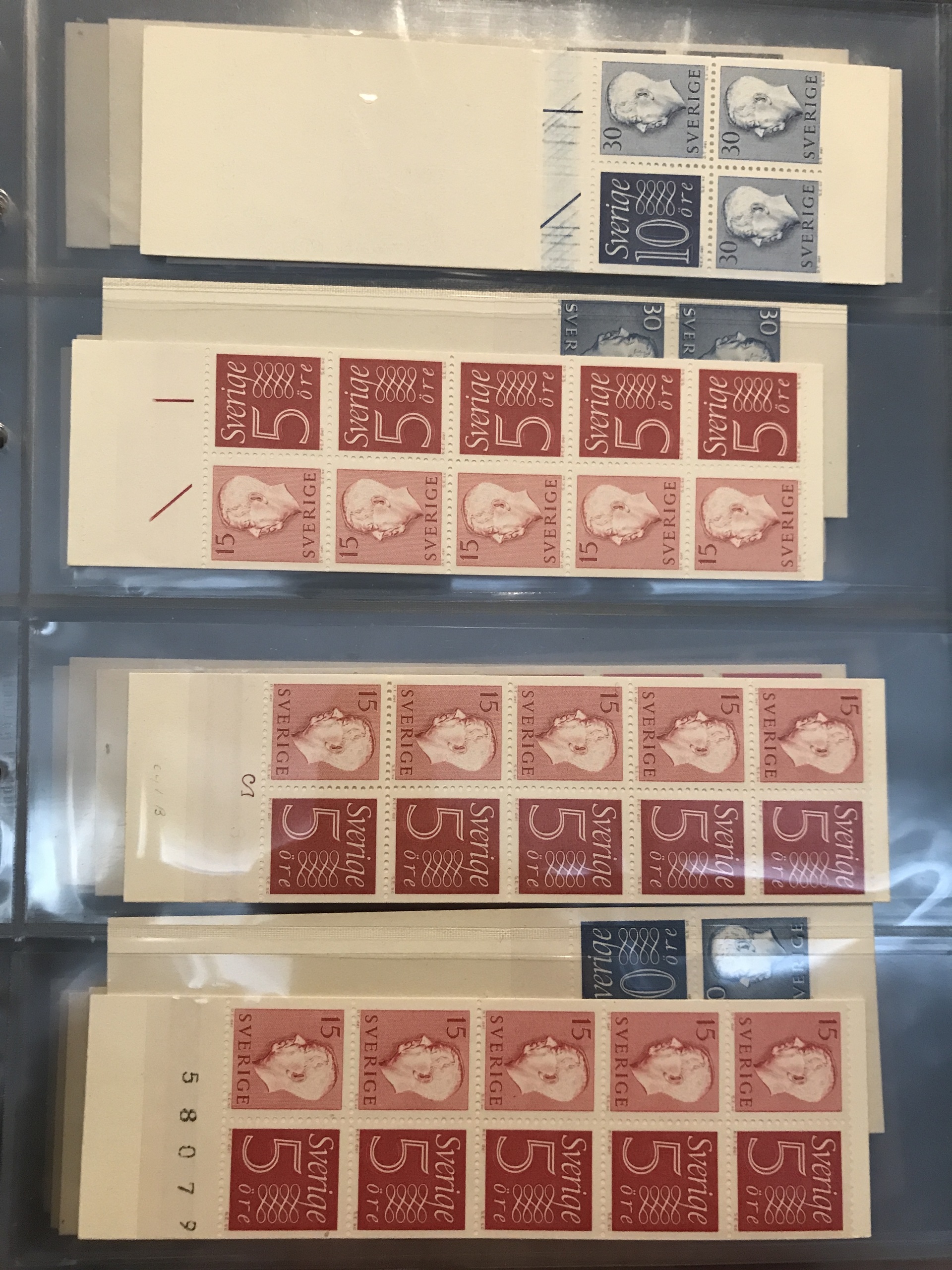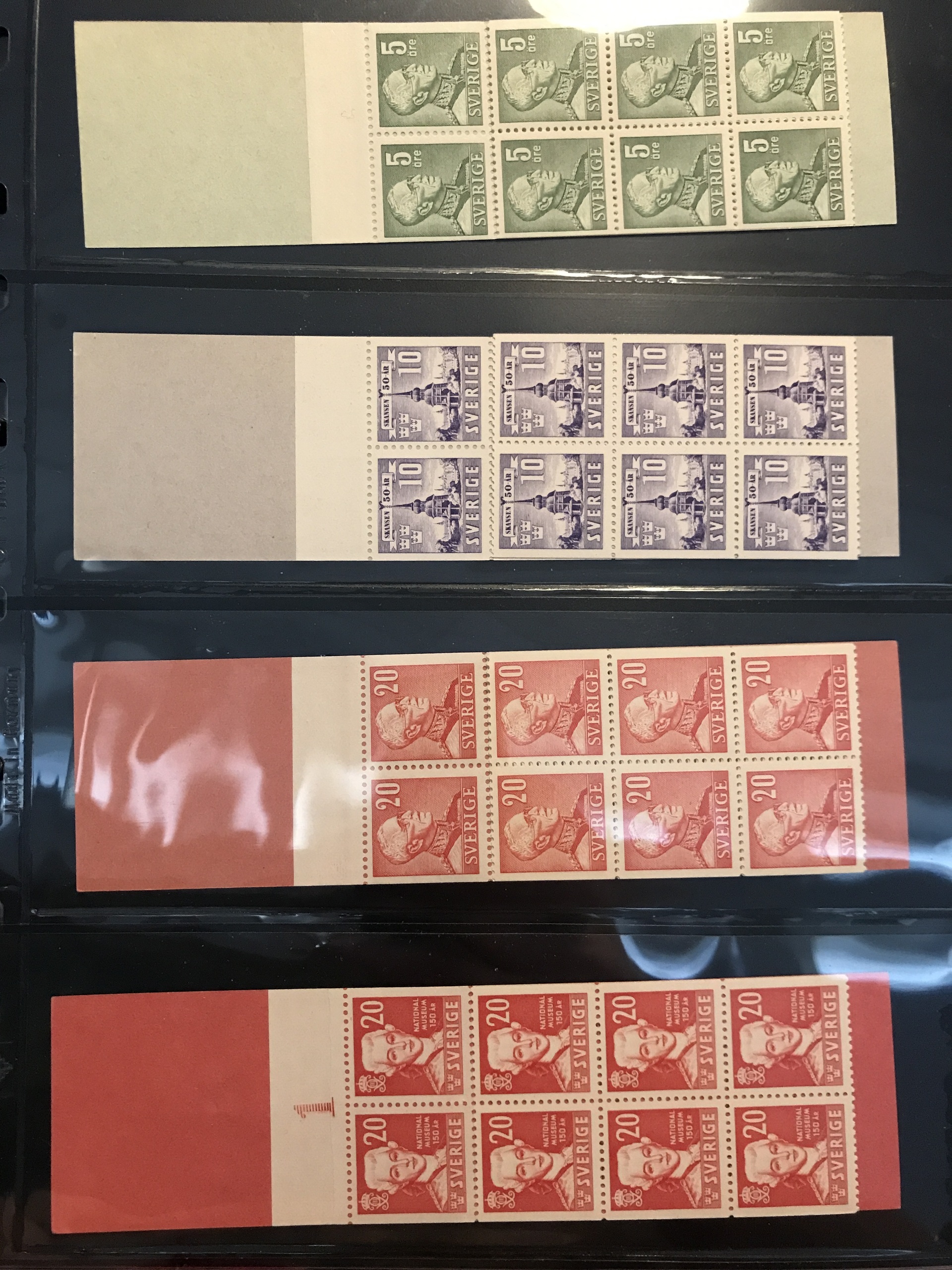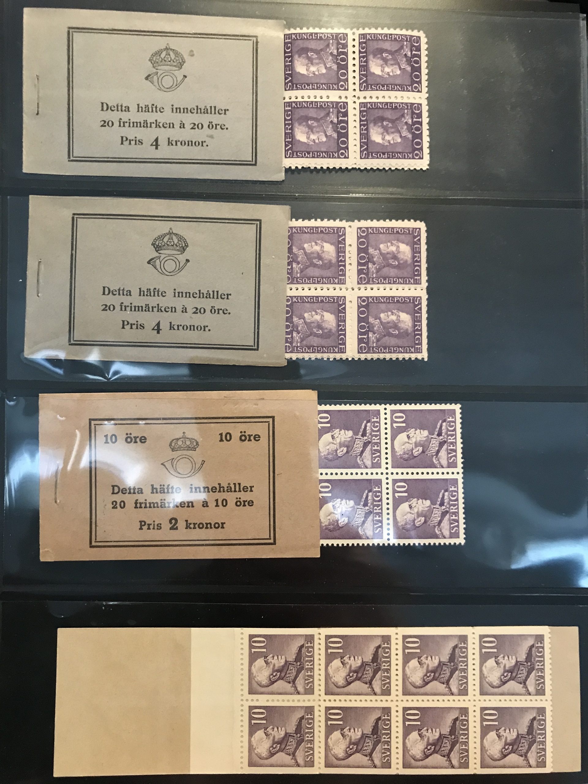 Sweden. Booklets. Collection 1918–80 in three Leuchtturm binders + one binder with slot-machine booklets. Containing e.g. H21, 27, 34BC, 35C and CB, 39, 65, 211–12, discount booklets 1979–1980, etc. Approx. 6 kg. (385)