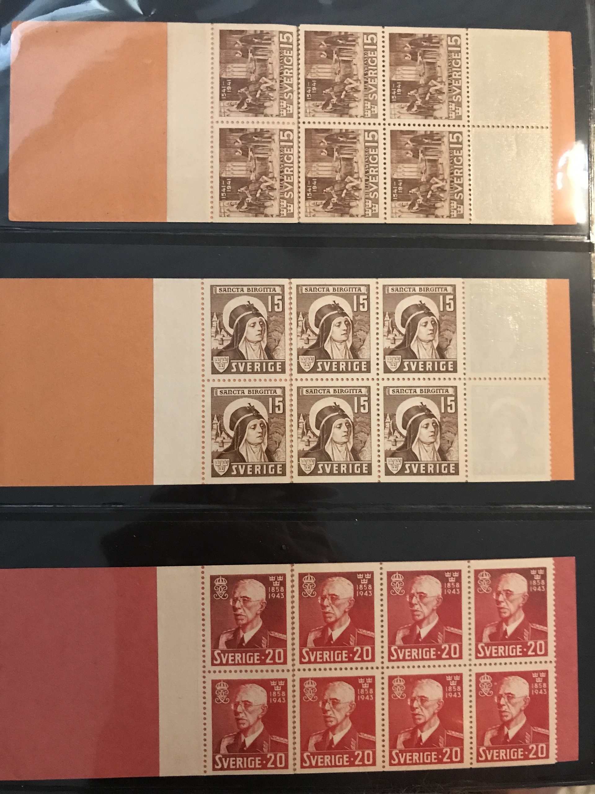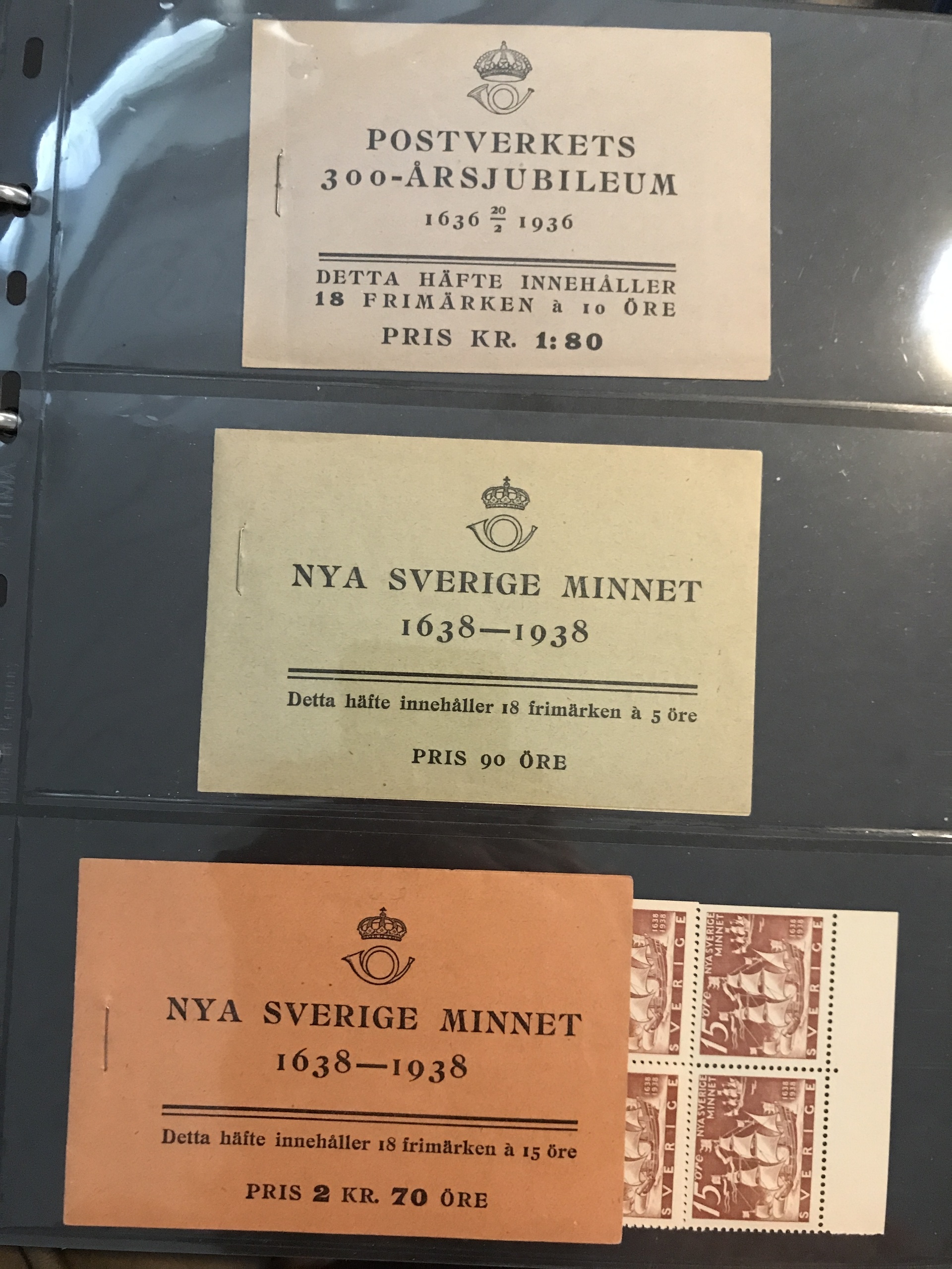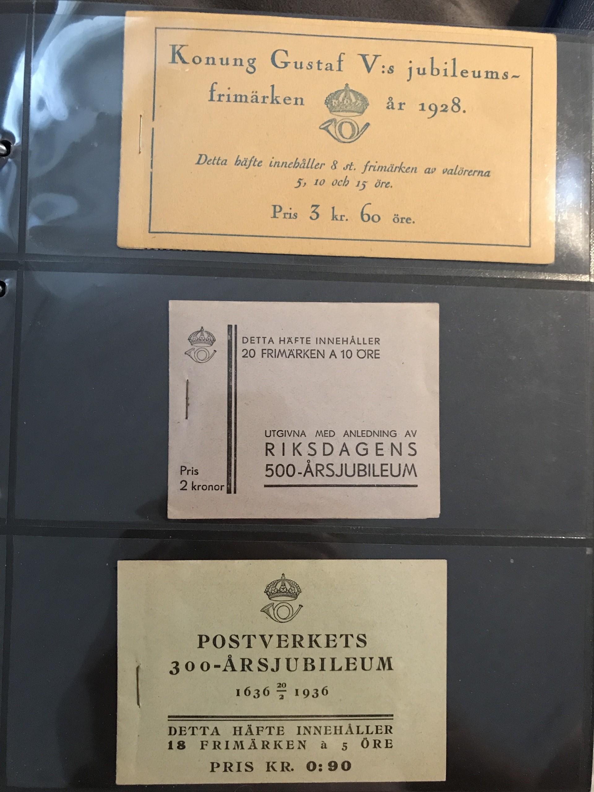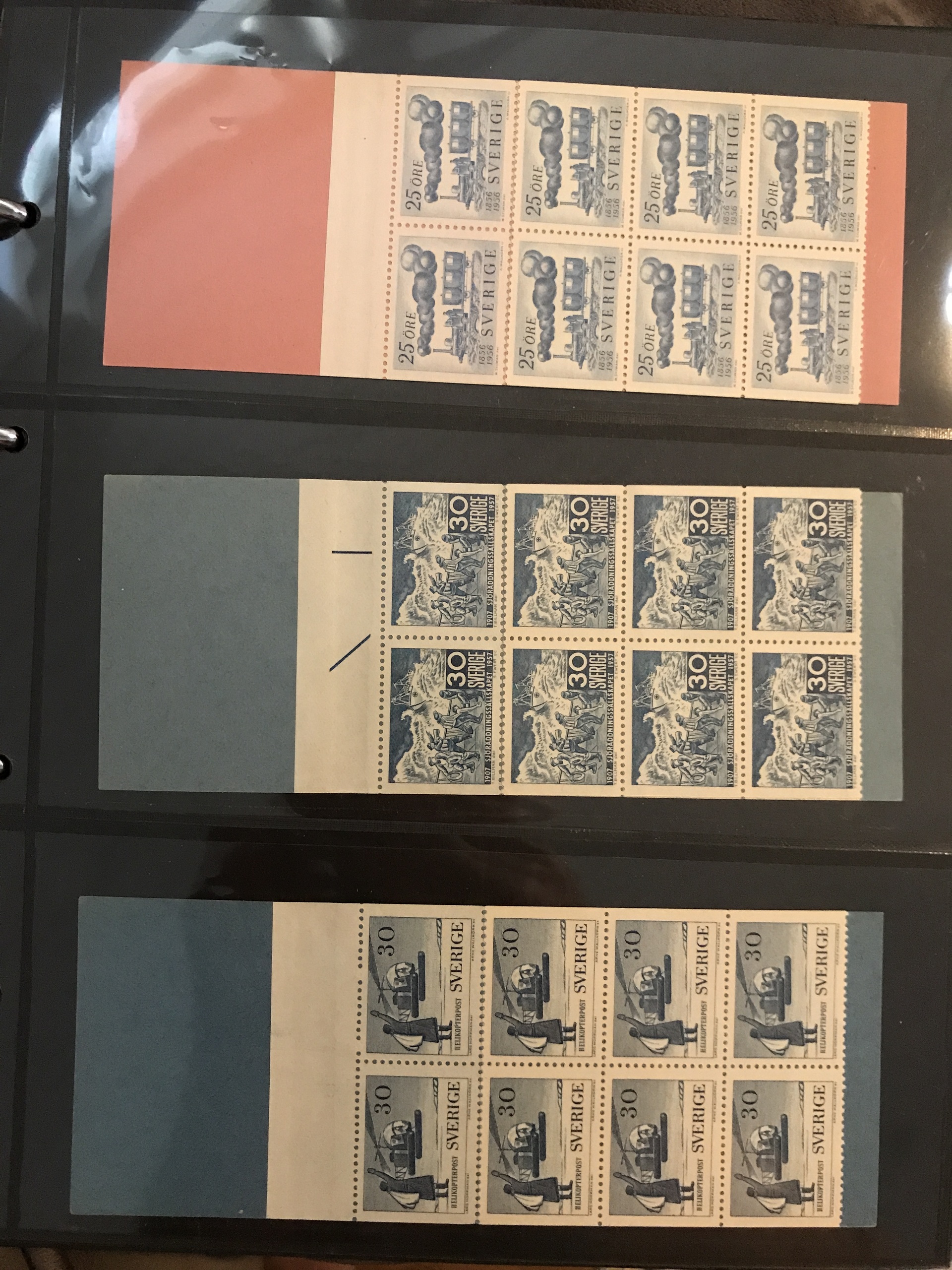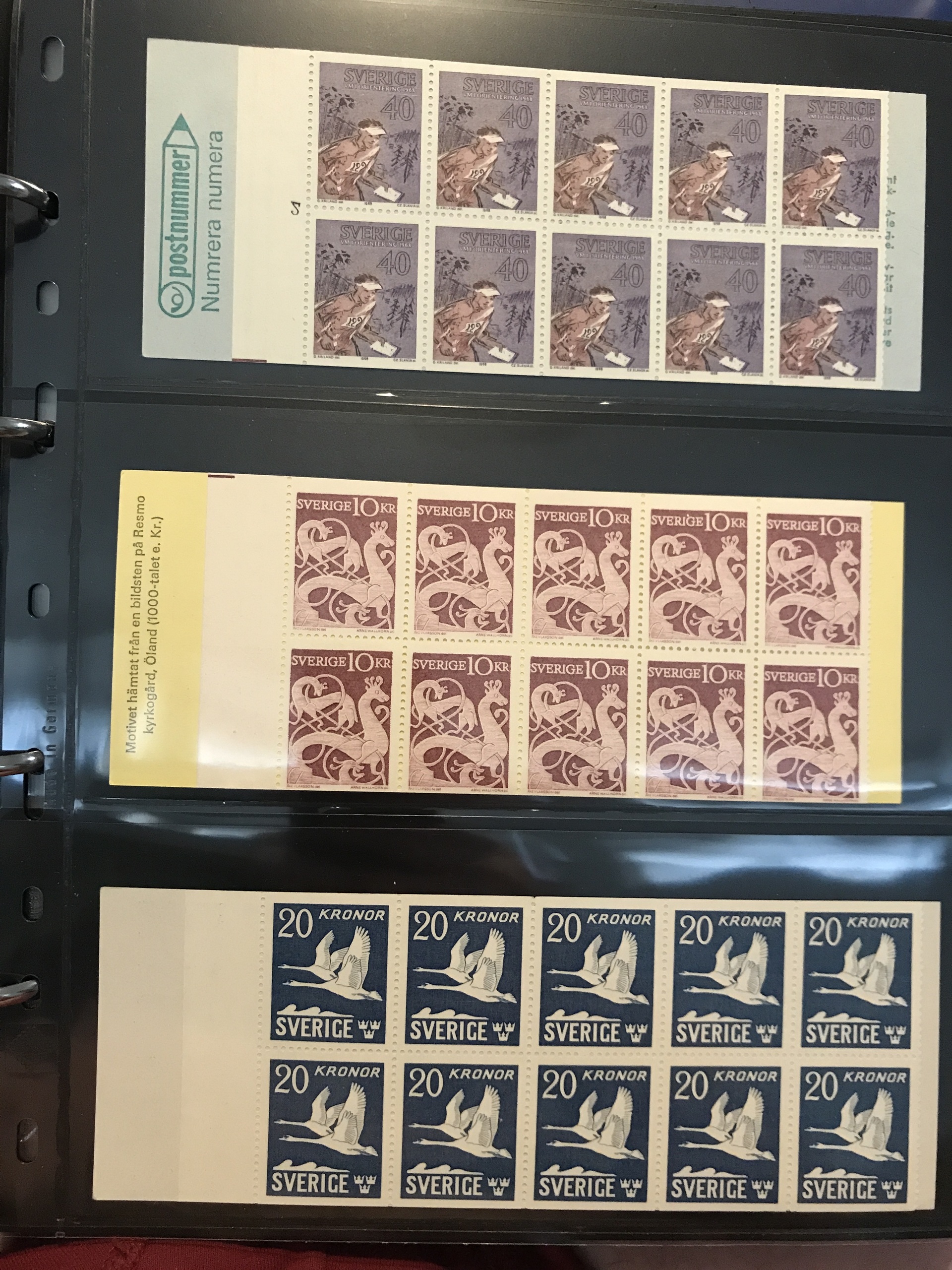 Sweden. Booklets. Collection 1918–80 in three Leuchtturm binders + one binder with slot-machine booklets. Containing e.g. H21, 27, 34BC, 35C and CB, 39, 65, 211–12, discount booklets 1979–1980, etc. Approx. 6 kg. (385)