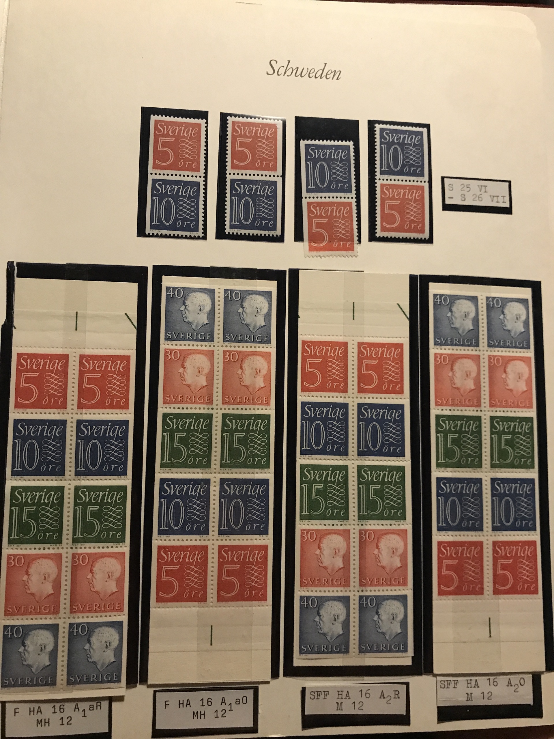 Sweden. Booklets. Comprehensive collection with more than 200 slot-machine booklets HA1–24 incl. e.g. 1R+O, 4AR+O, over complete HA5–6, margin signs, etc. Also several pair combinations, etc.