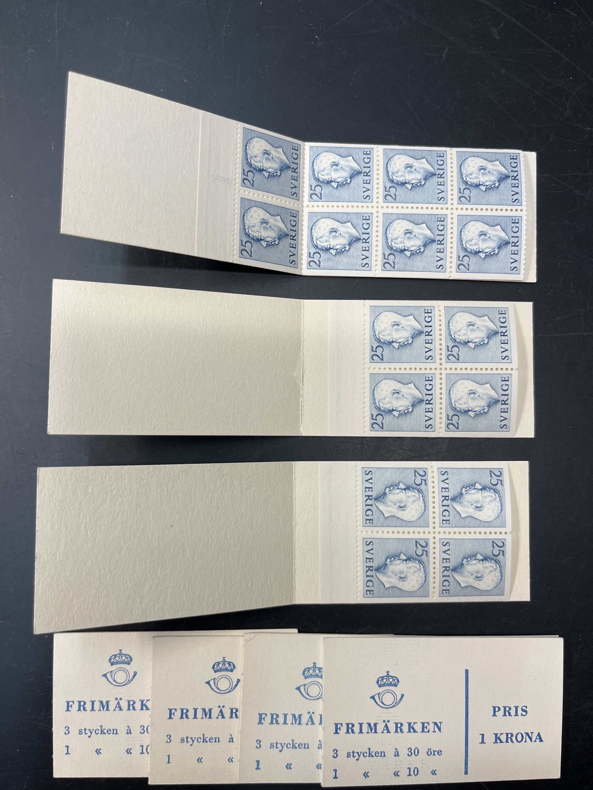Sweden. Booklets, lot. Seven slot-machine booklets: HA 1 R, 3 R (defective cover), O and HA 6 RH, RV, OH, OV. Ca. 3800