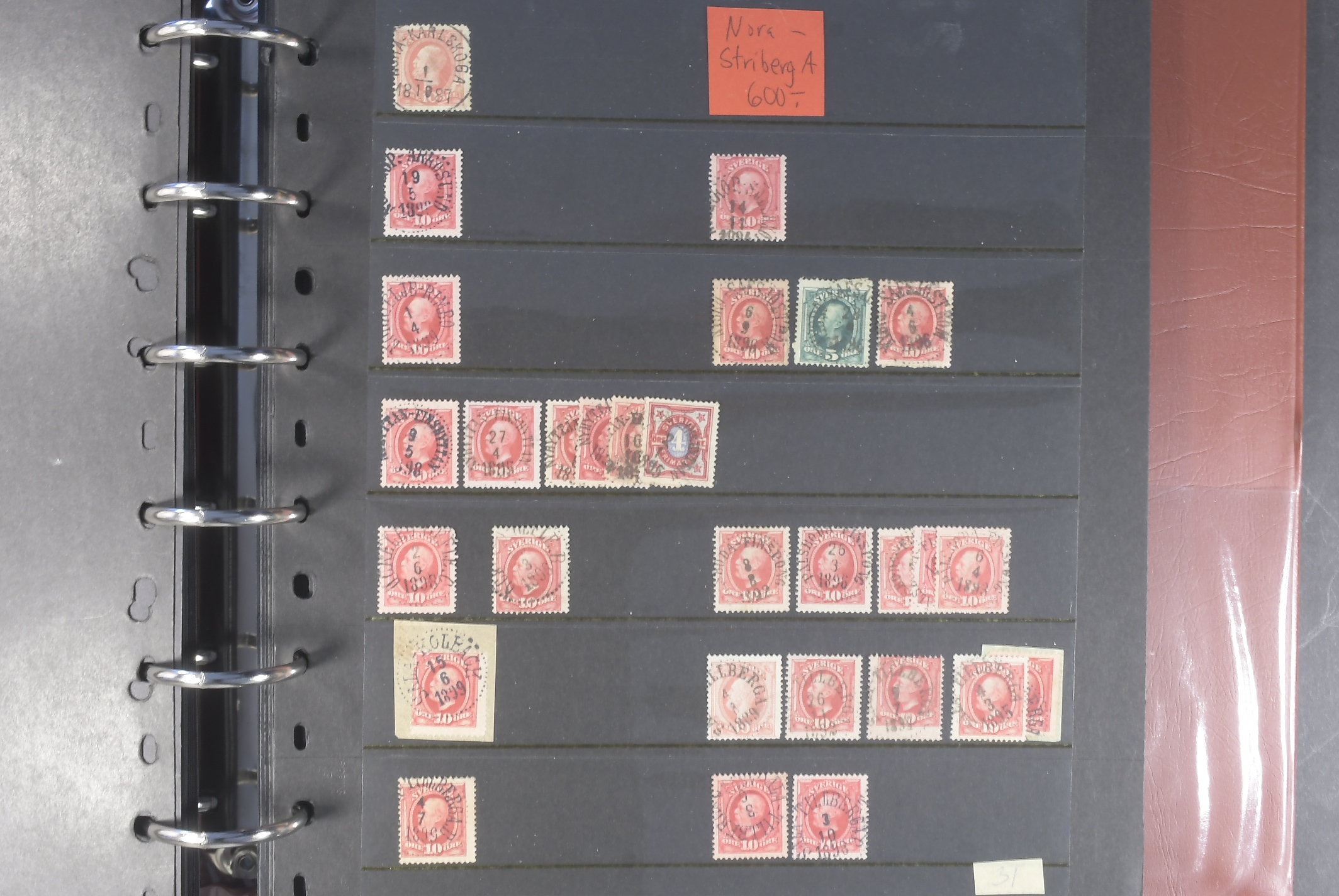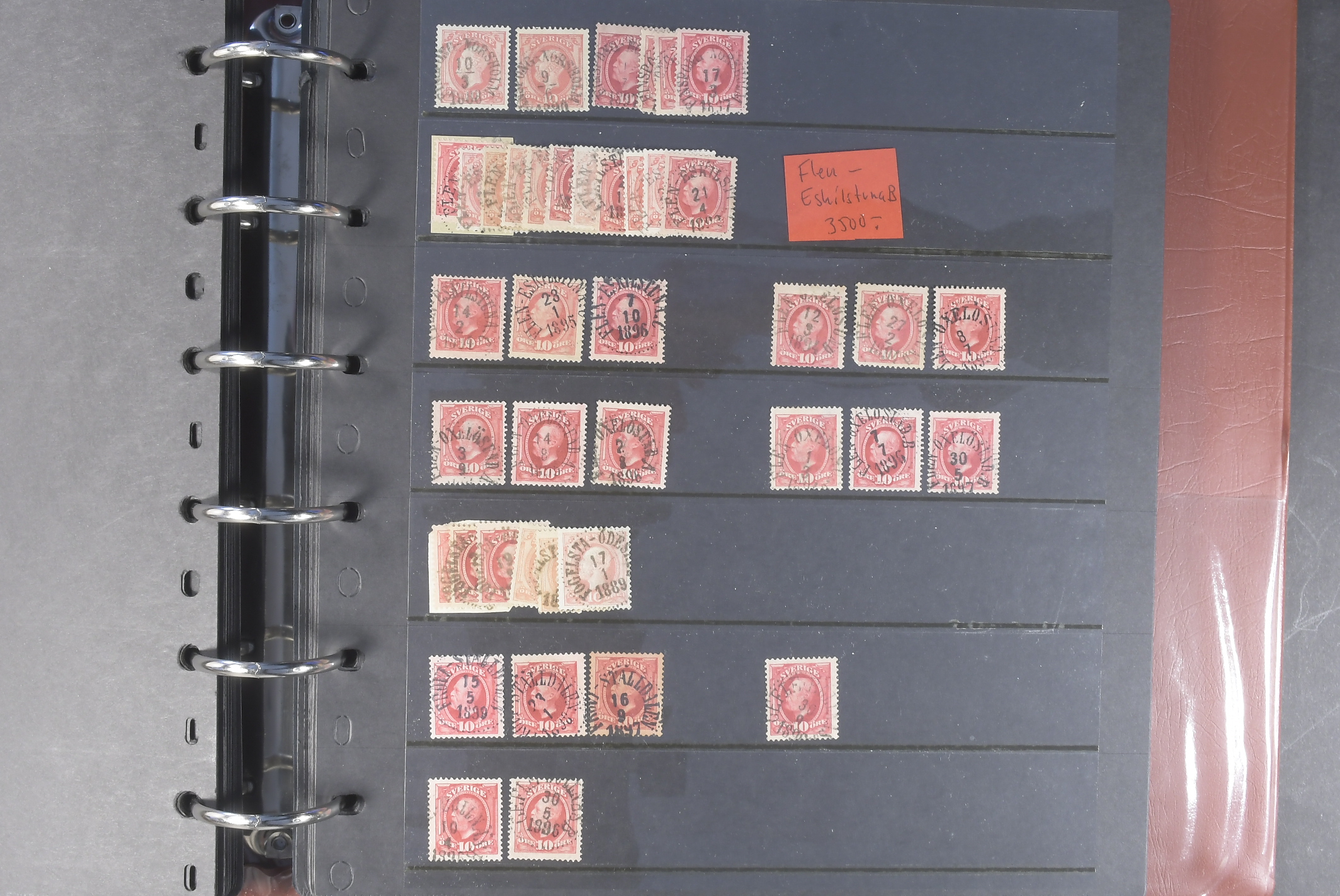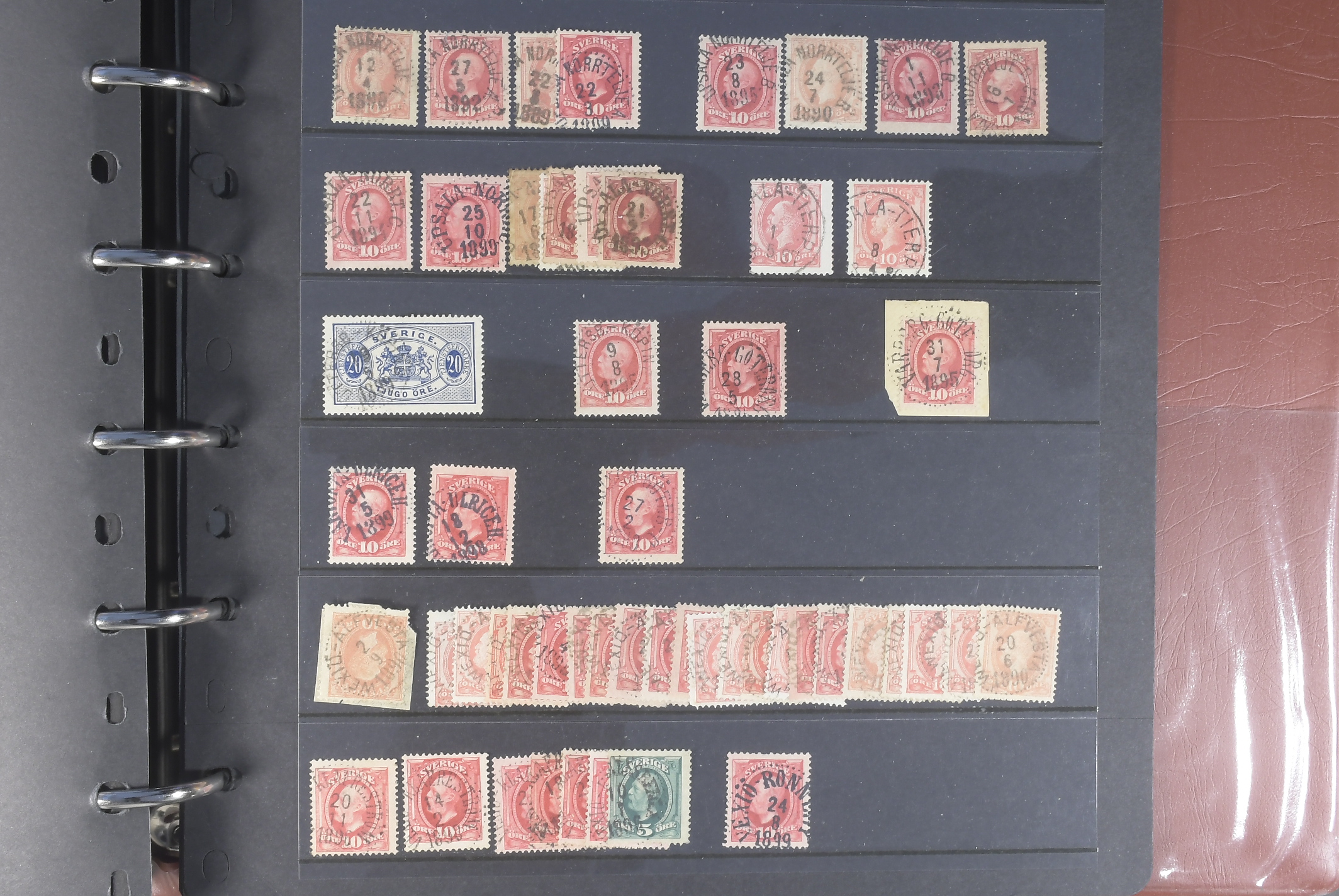 Sweden. Cancellations, collection/accumulation O II on 37 visir leaves in album. with Steamship/ Railway and Rural mail service cancellations (Ångb./Jvg/Lbb). Please see a selection of scans at www.philea.se. Fine quality.