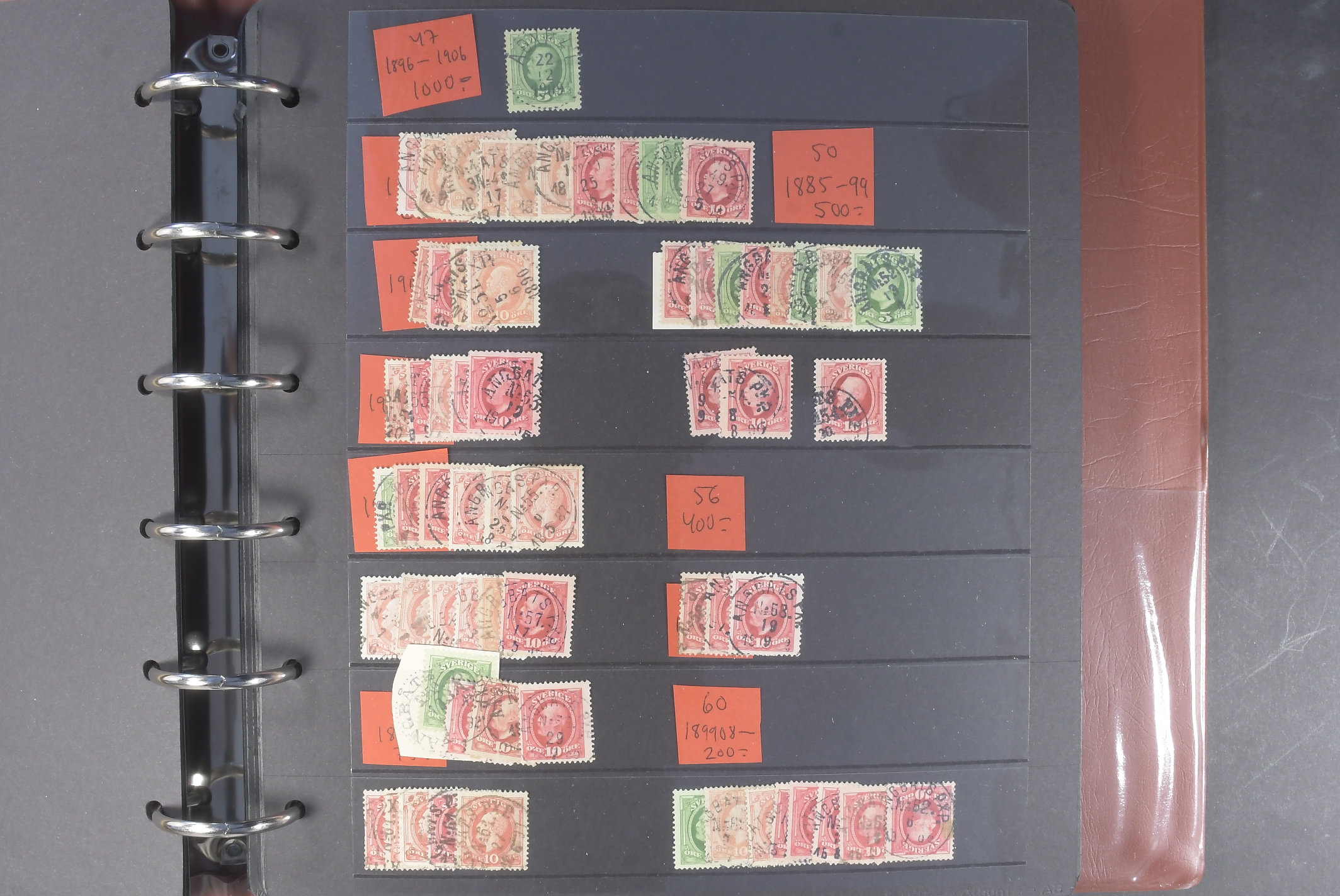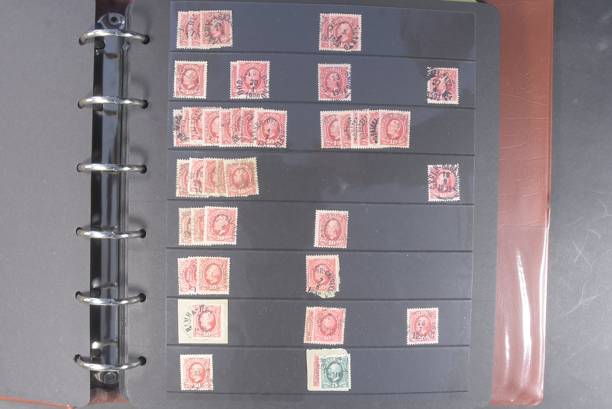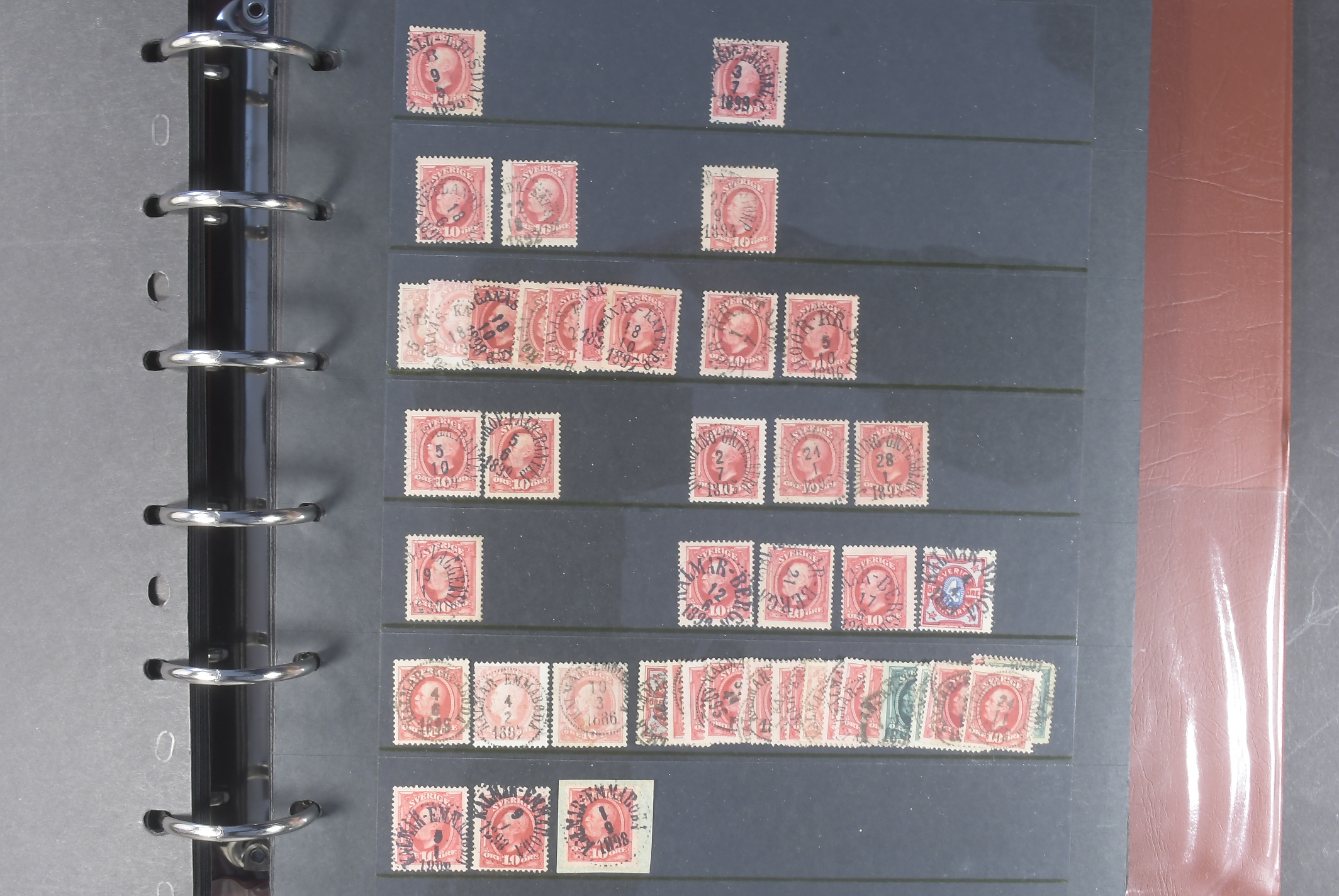 Sweden. Cancellations, collection/accumulation O II on 37 visir leaves in album. with Steamship/ Railway and Rural mail service cancellations (Ångb./Jvg/Lbb). Please see a selection of scans at www.philea.se. Fine quality.