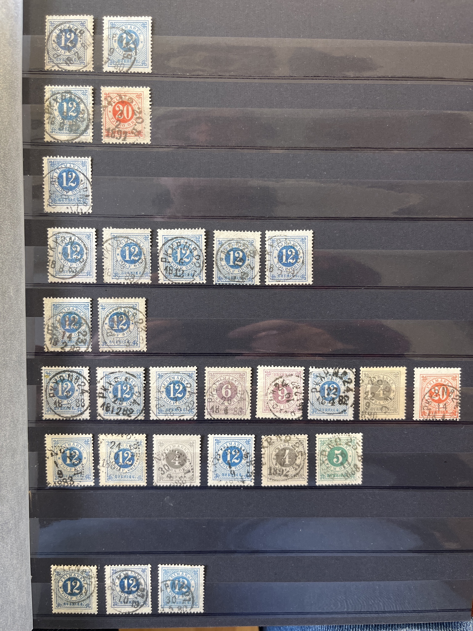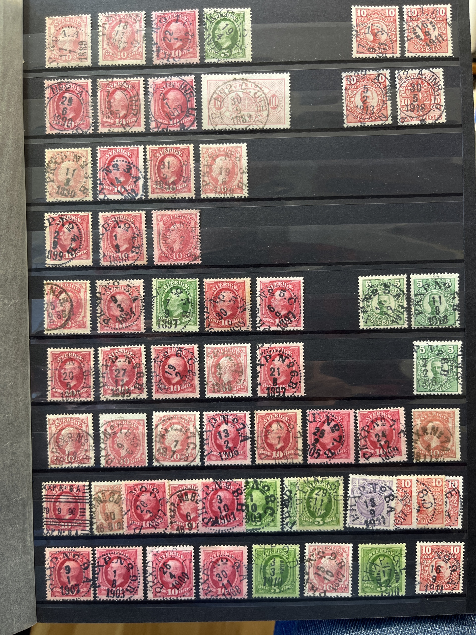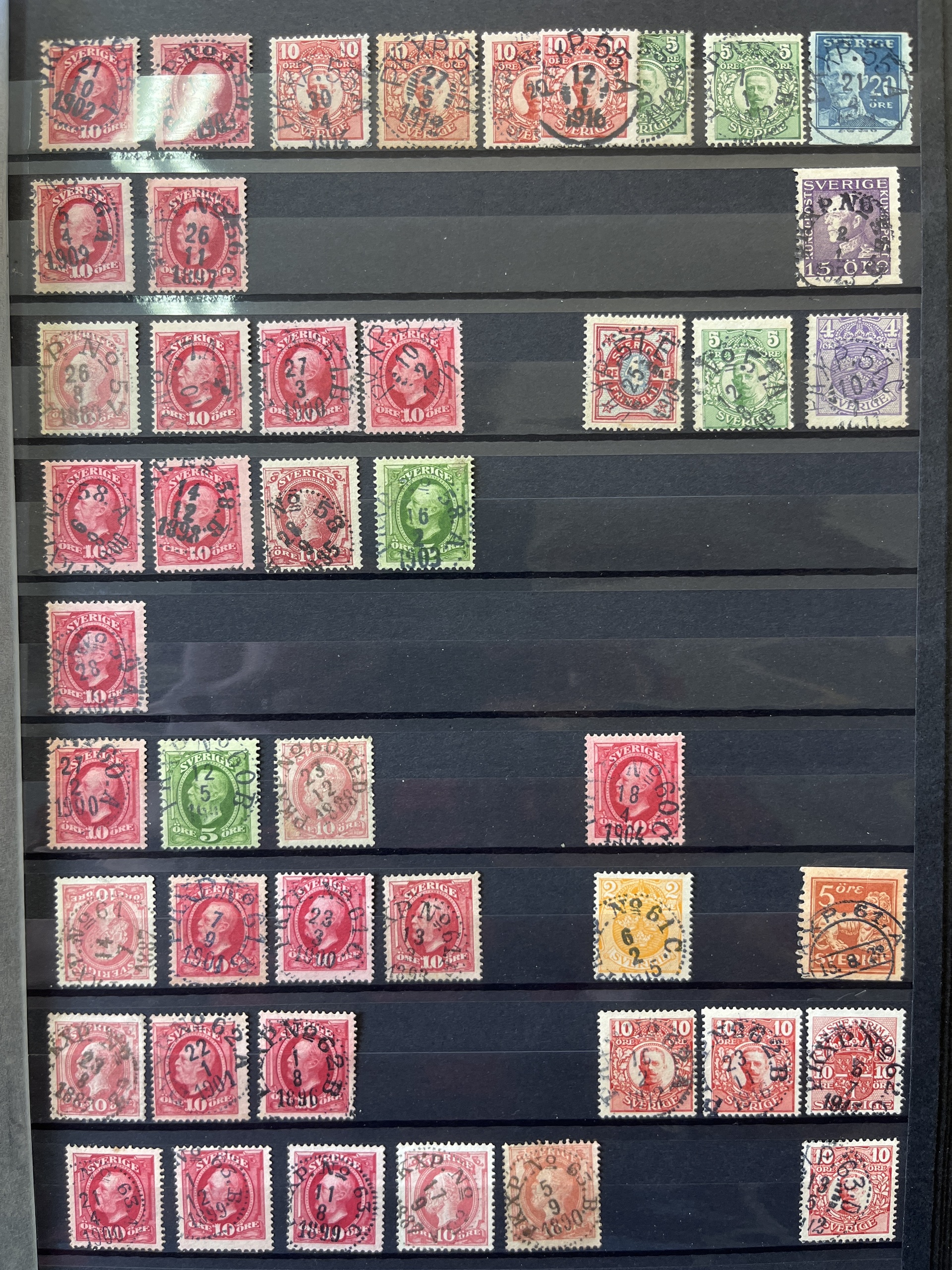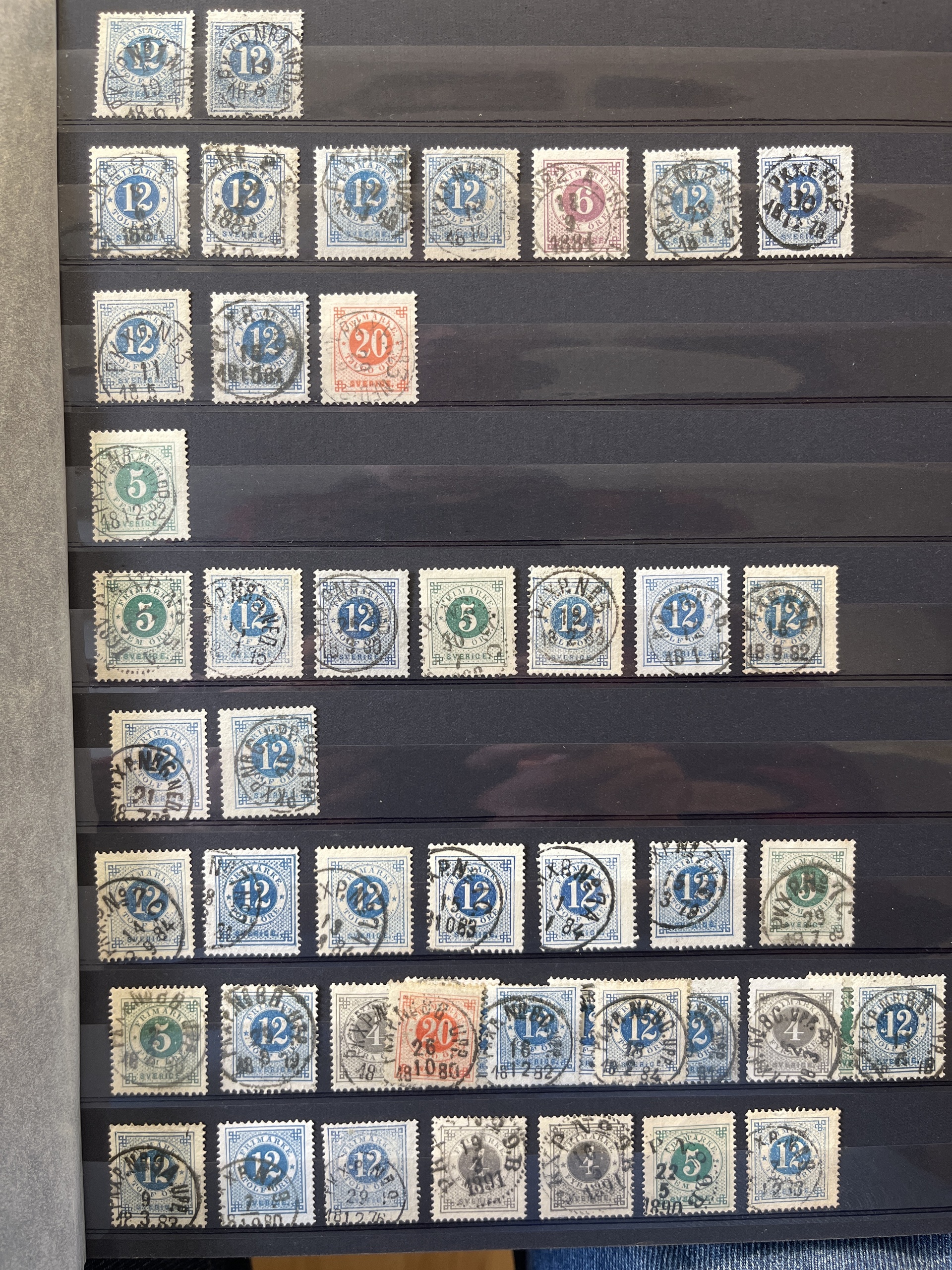 Sweden. Cancellations, collection/accumulation in box. RAILWAY canc. in 10 albums with collection, duplicates and some covers .Please see a selection of scans at www.philea.se. Approx. 9 kg.