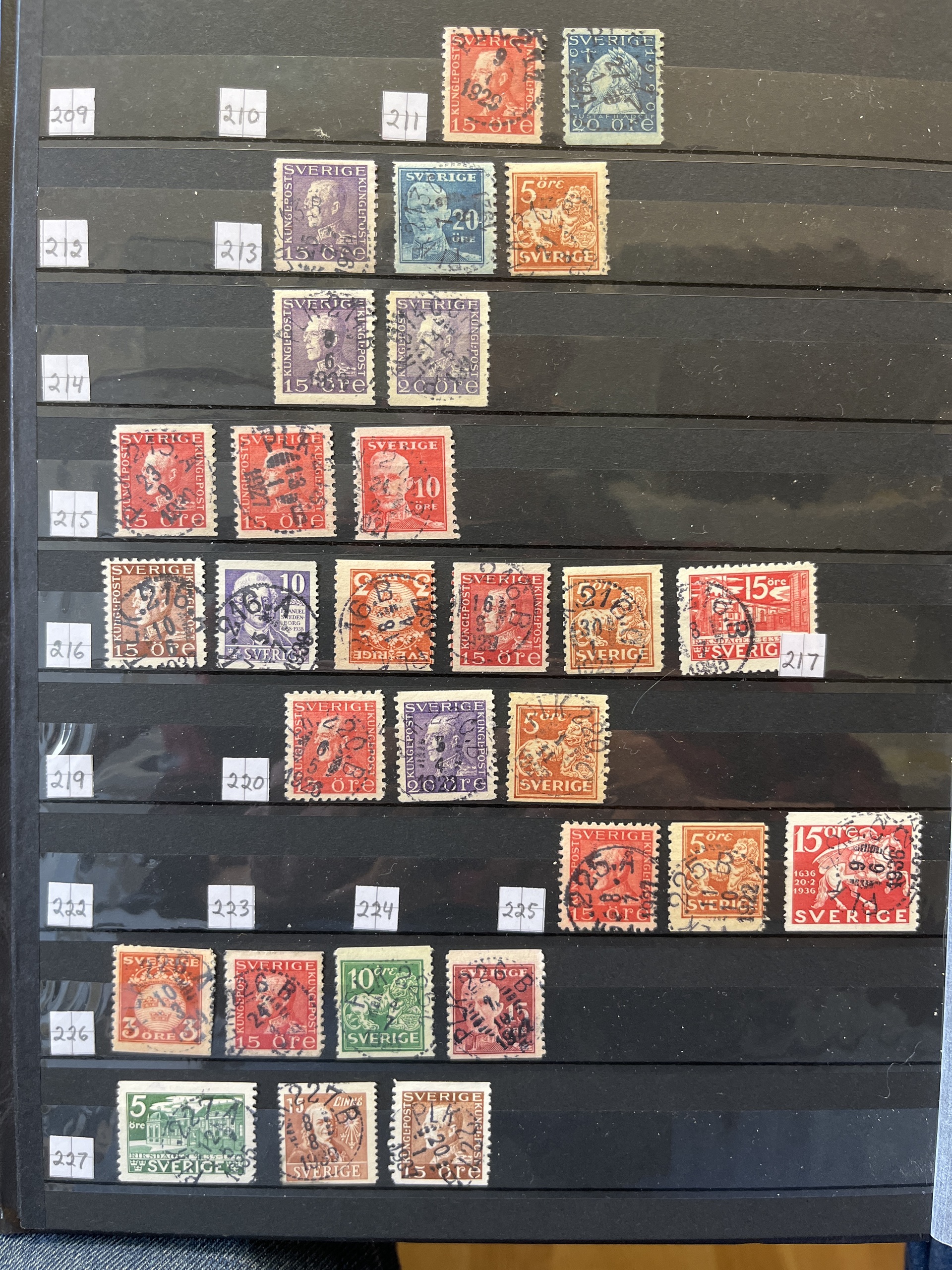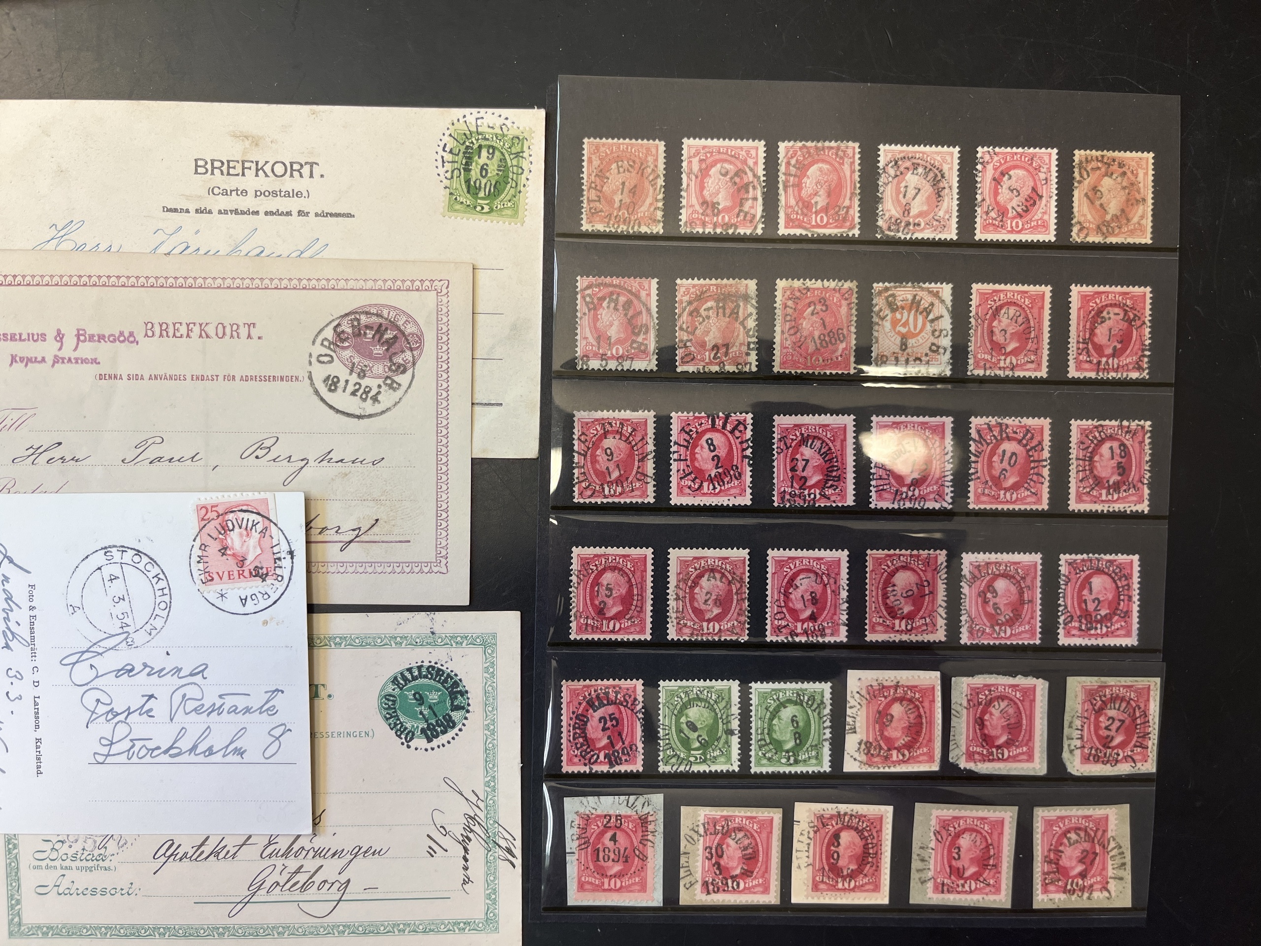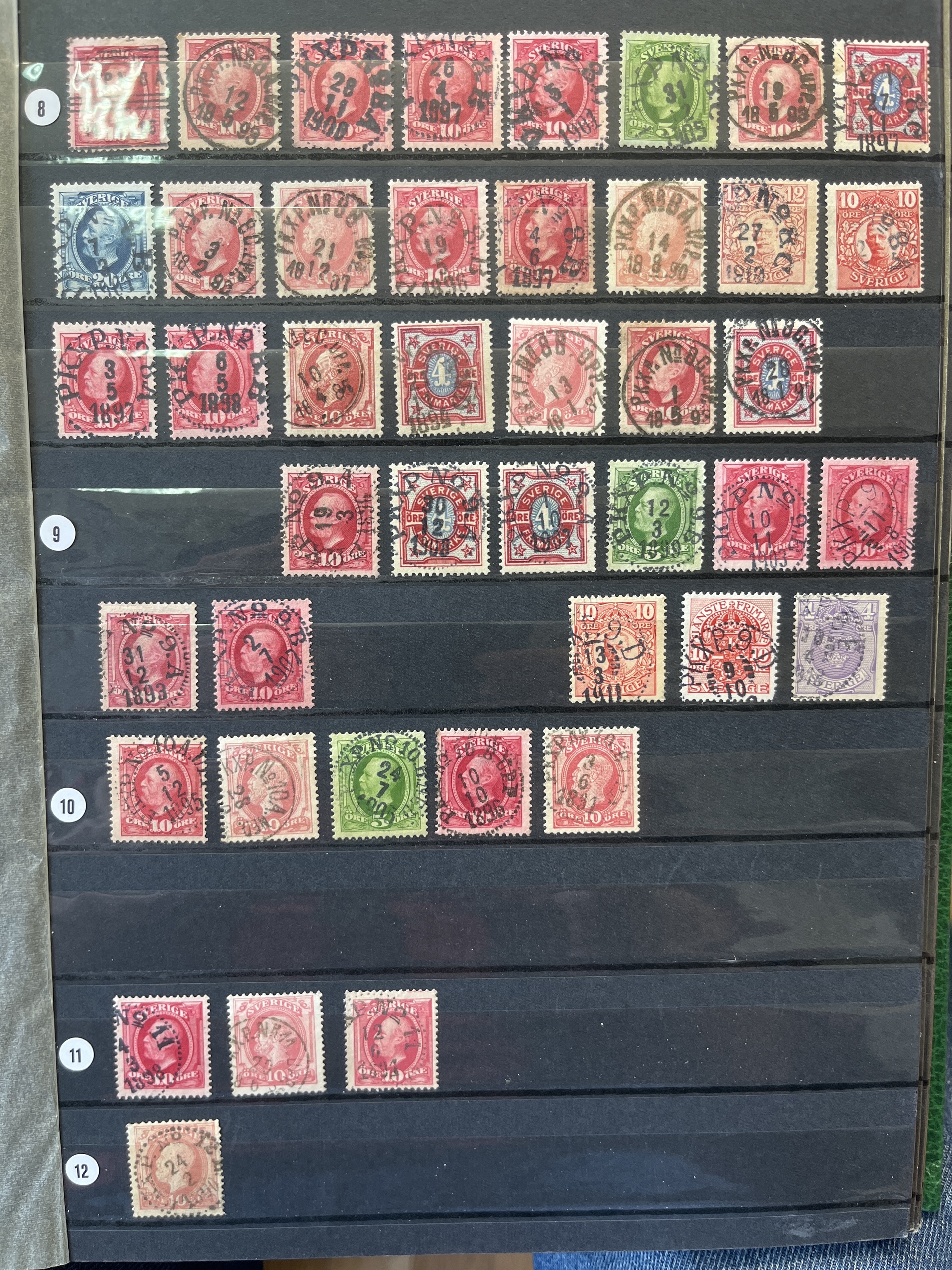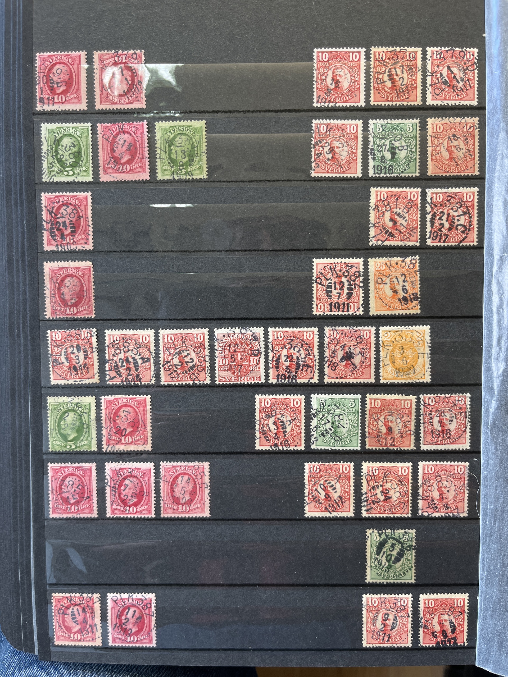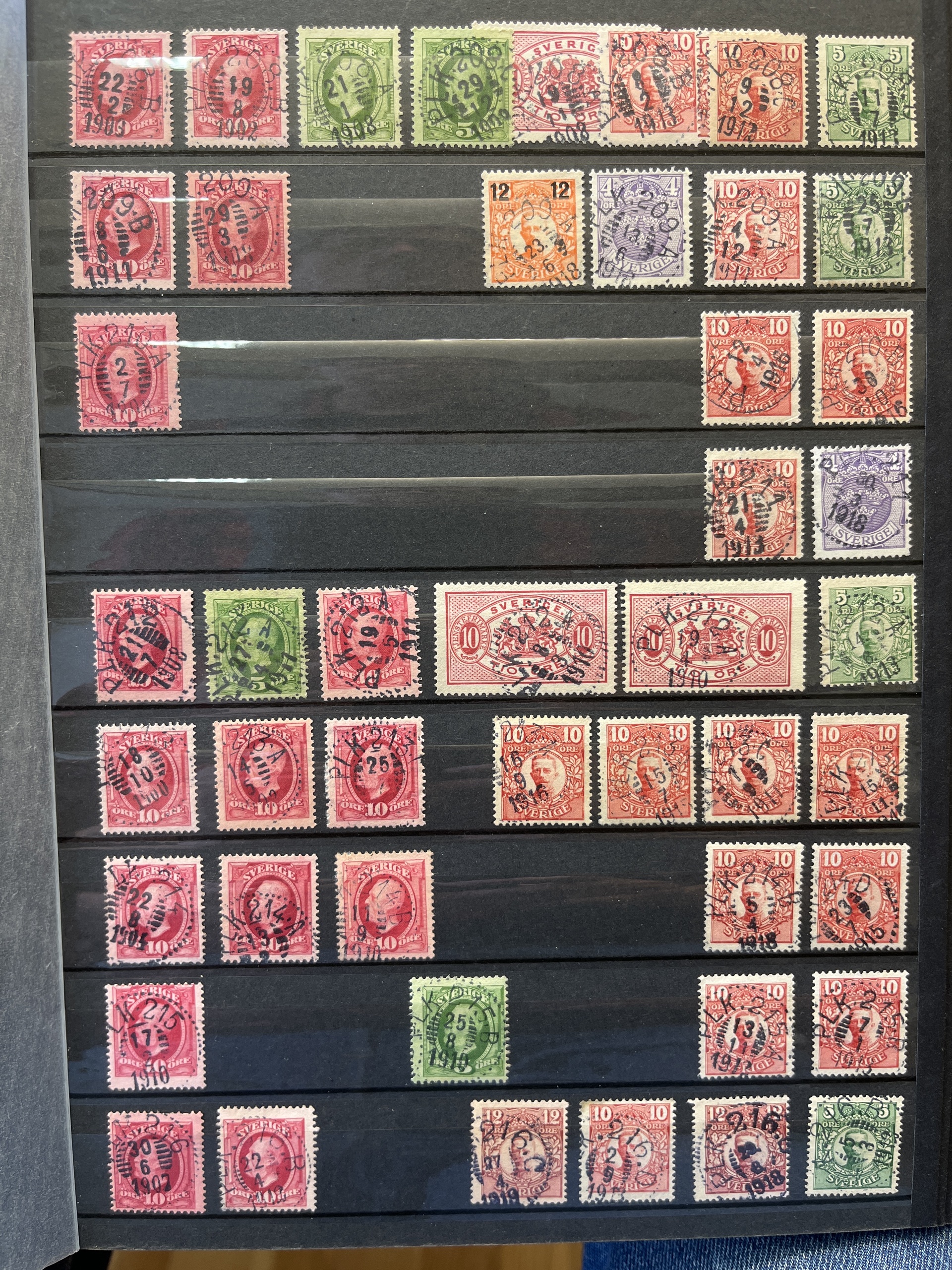 Sweden. Cancellations, collection/accumulation in box. RAILWAY canc. in 10 albums with collection, duplicates and some covers .Please see a selection of scans at www.philea.se. Approx. 9 kg.