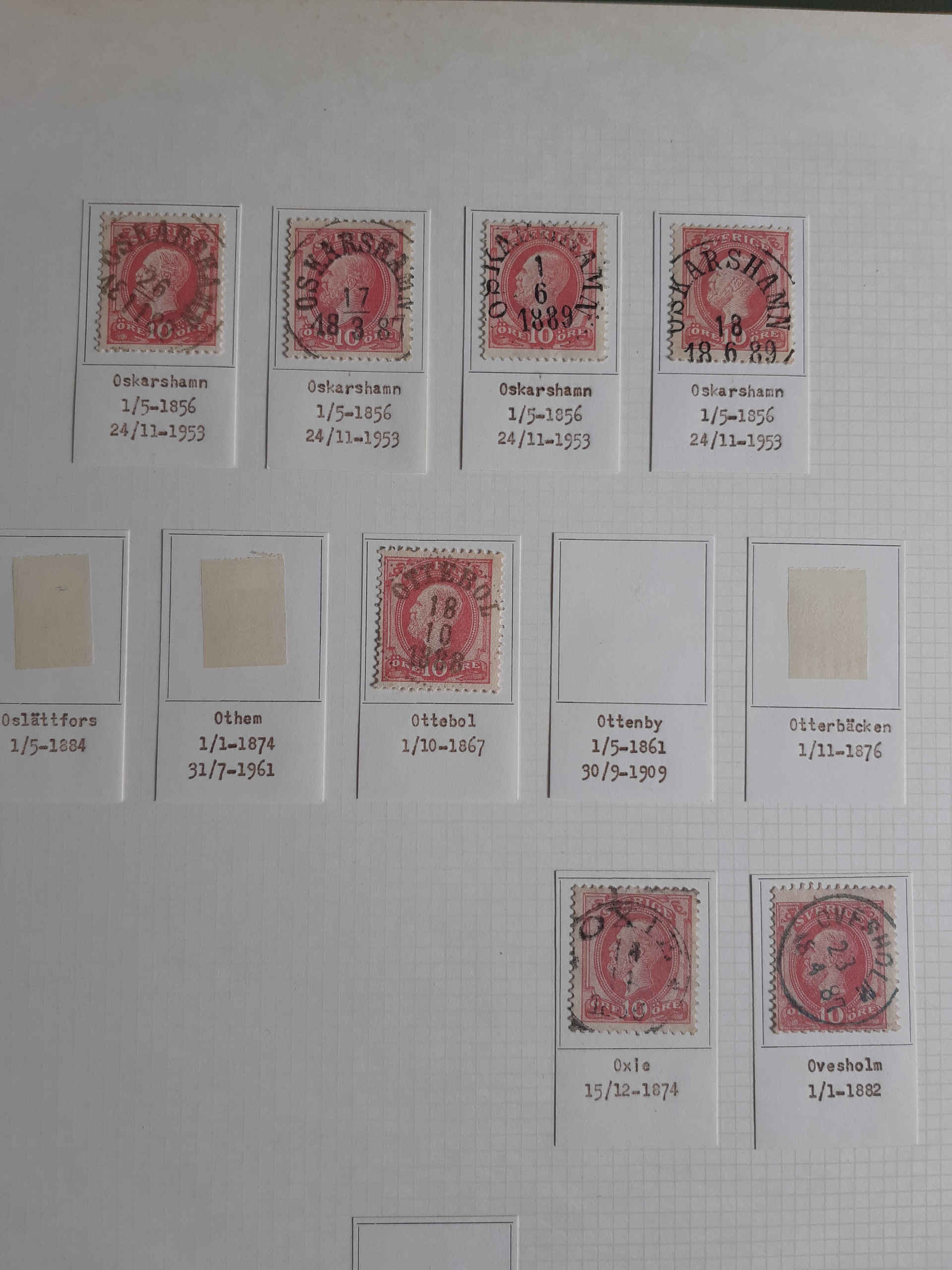 Sweden. Cancellations, collection OSCAR II letter press in threee fine albums. Remainder collection. Please see a selection of scans at www.philea.se. Approx. 5 kg. (ca. 520)