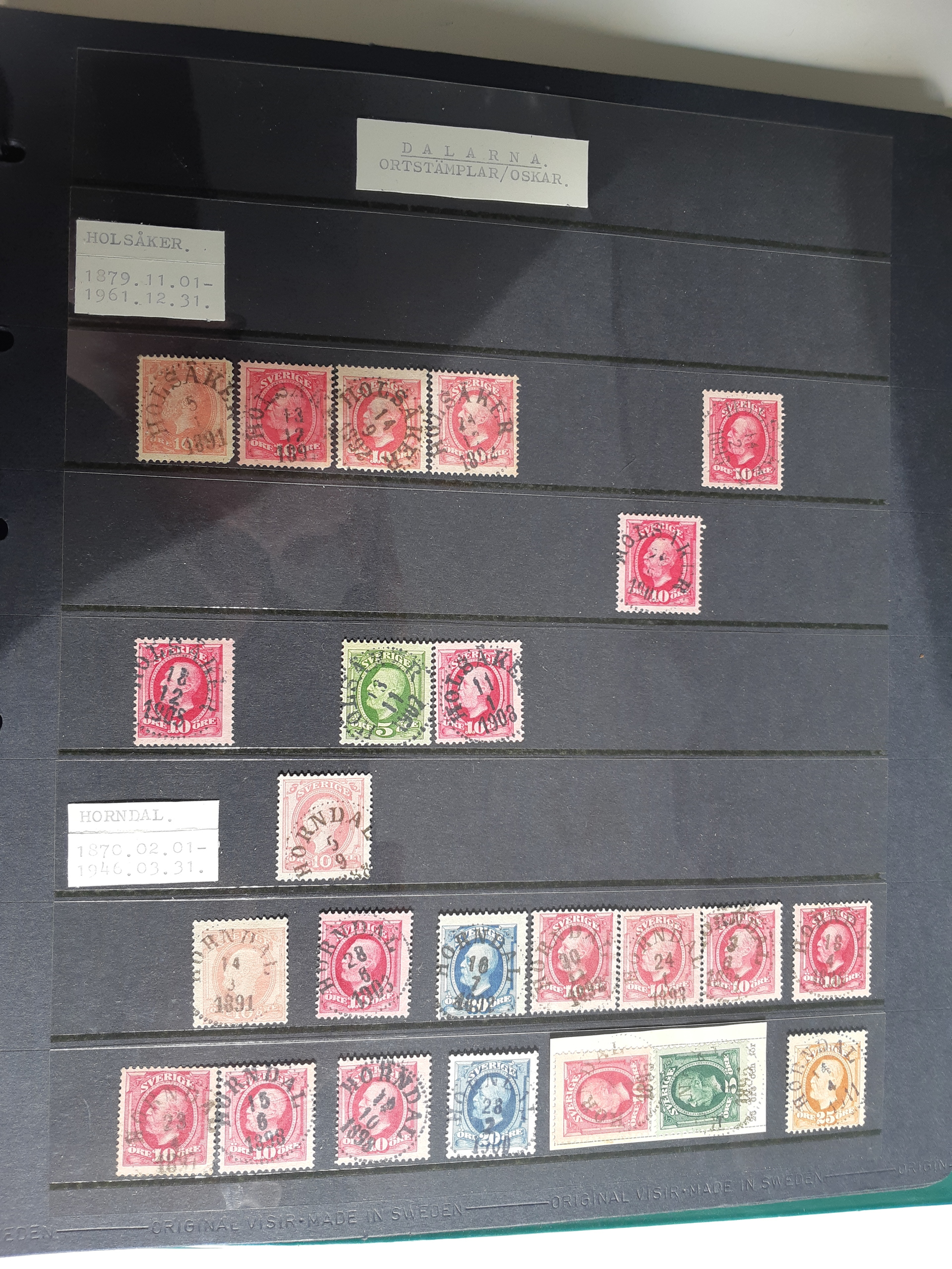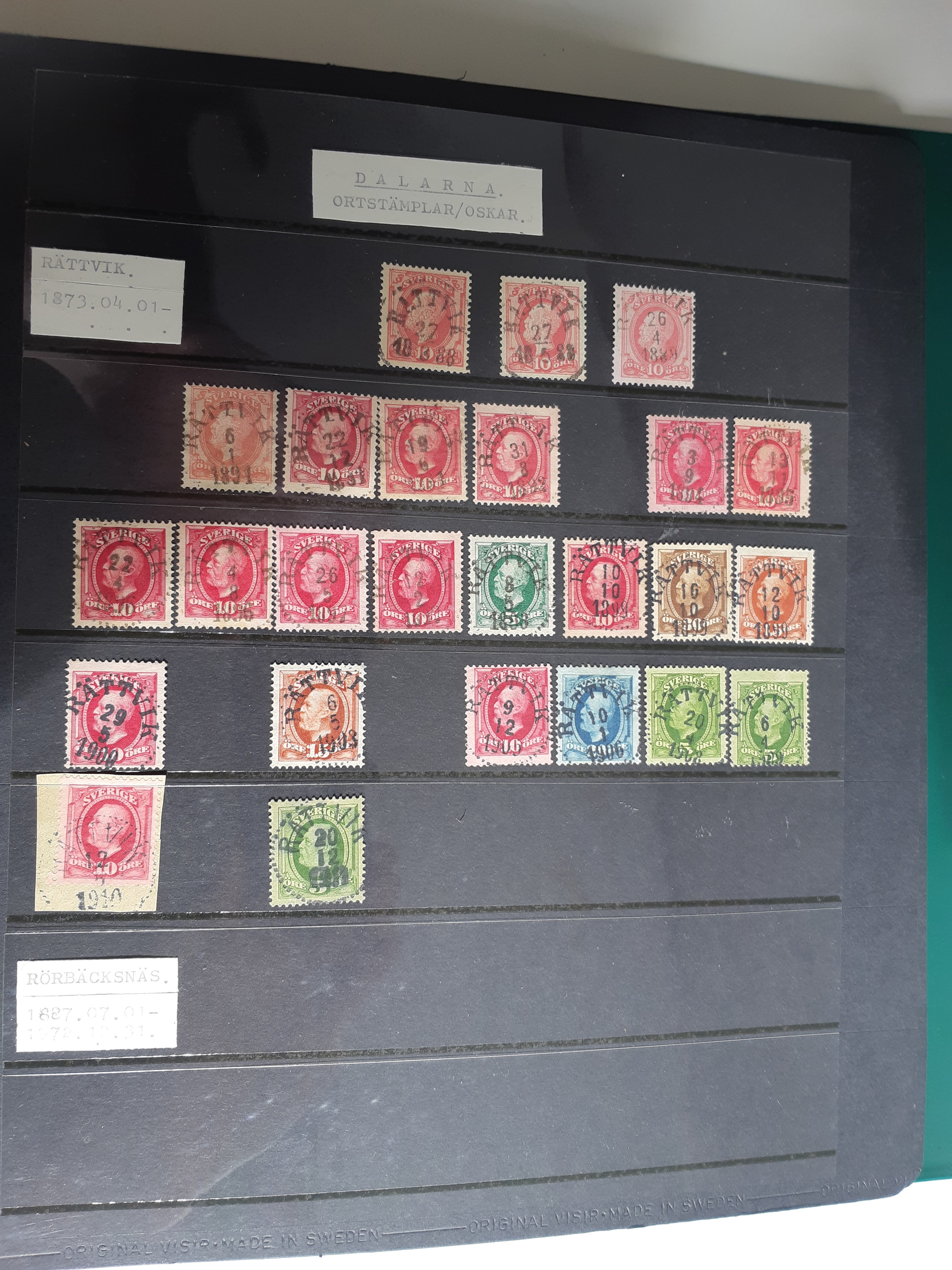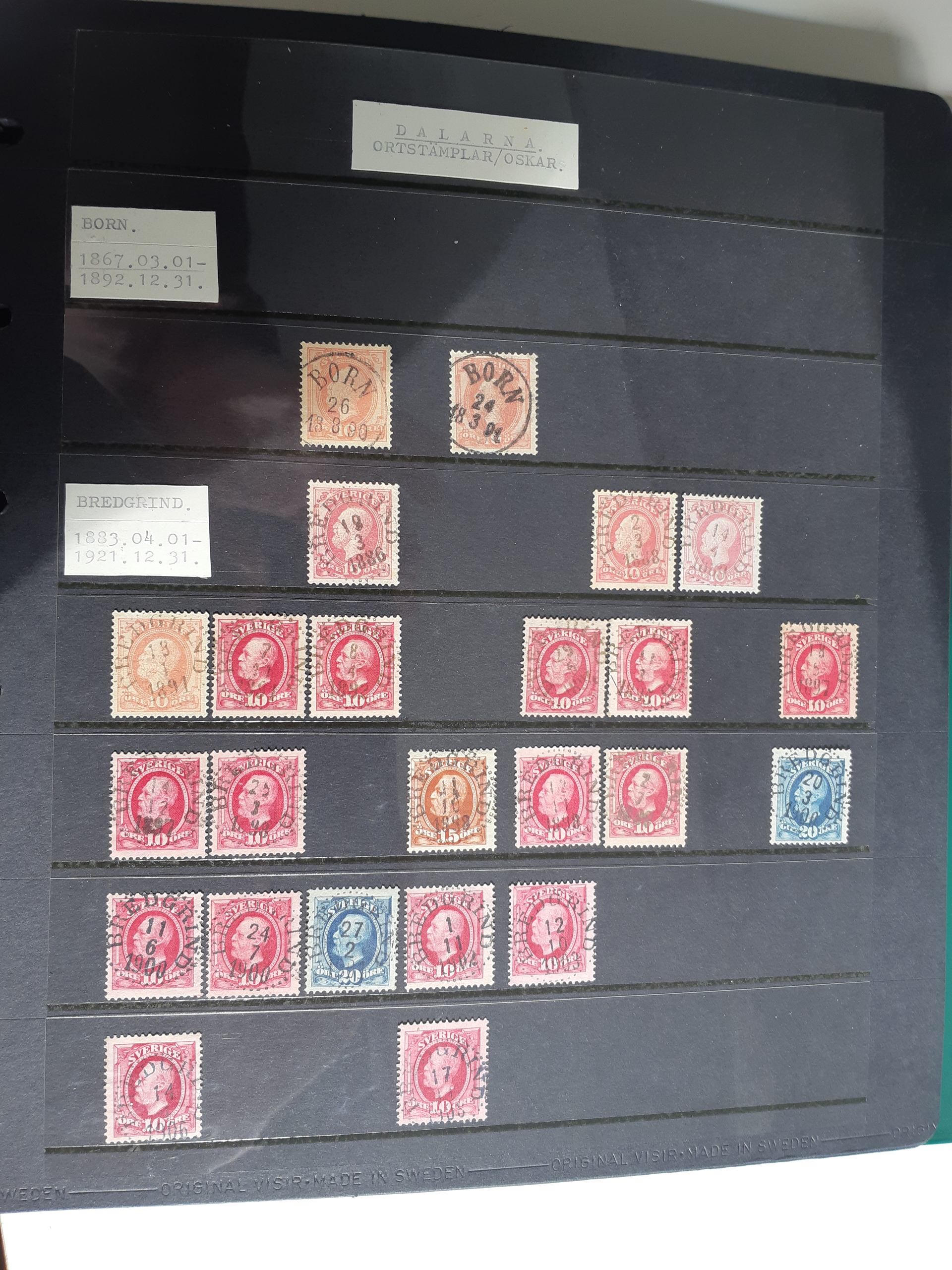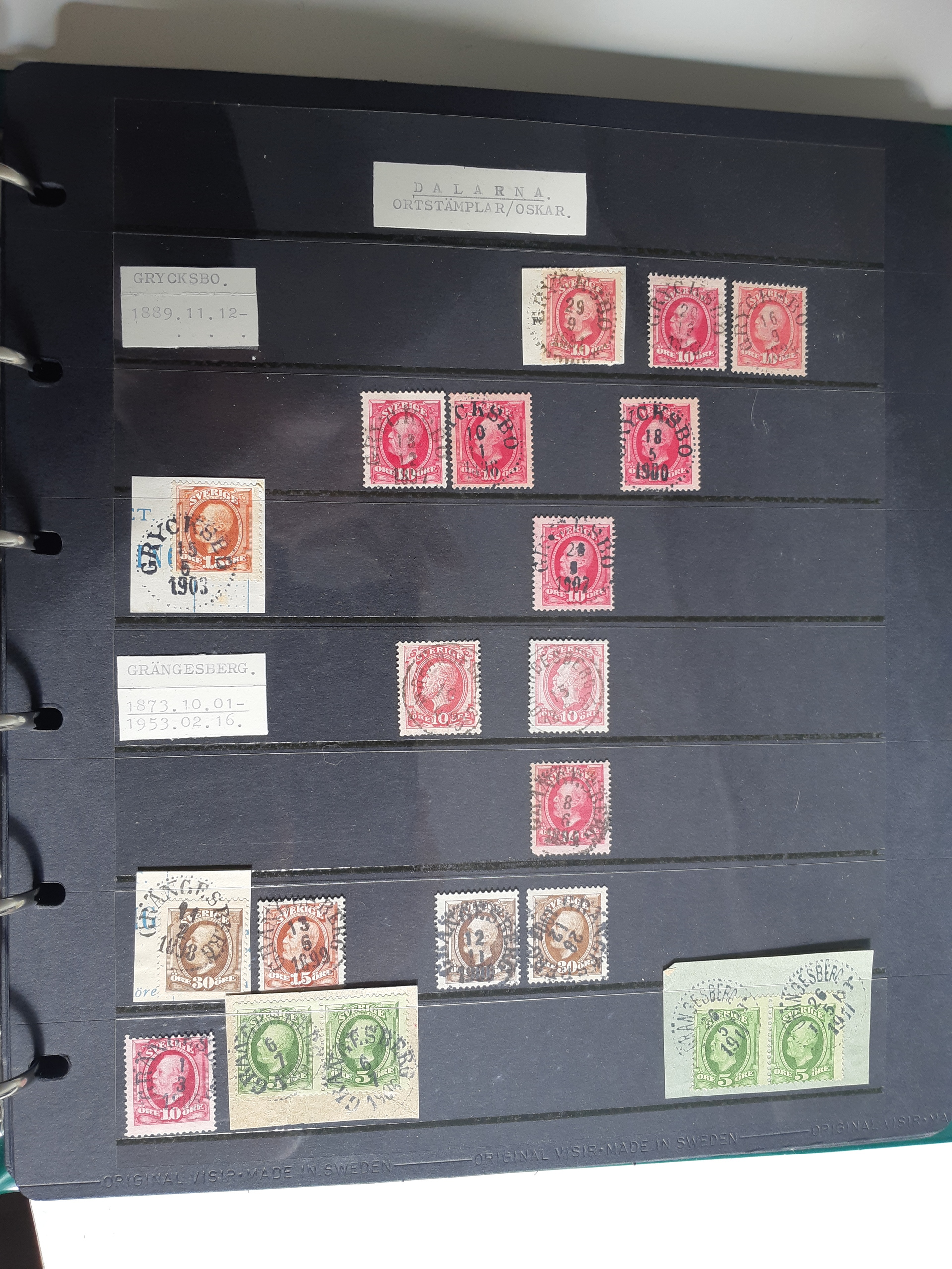 Sweden. Cancellations, collection DALARNA in two visir albums. Oscar II incl. a few cut pieces. Readable–superb cancellations. Please see a selection of scans at www.philea.se. (1000)