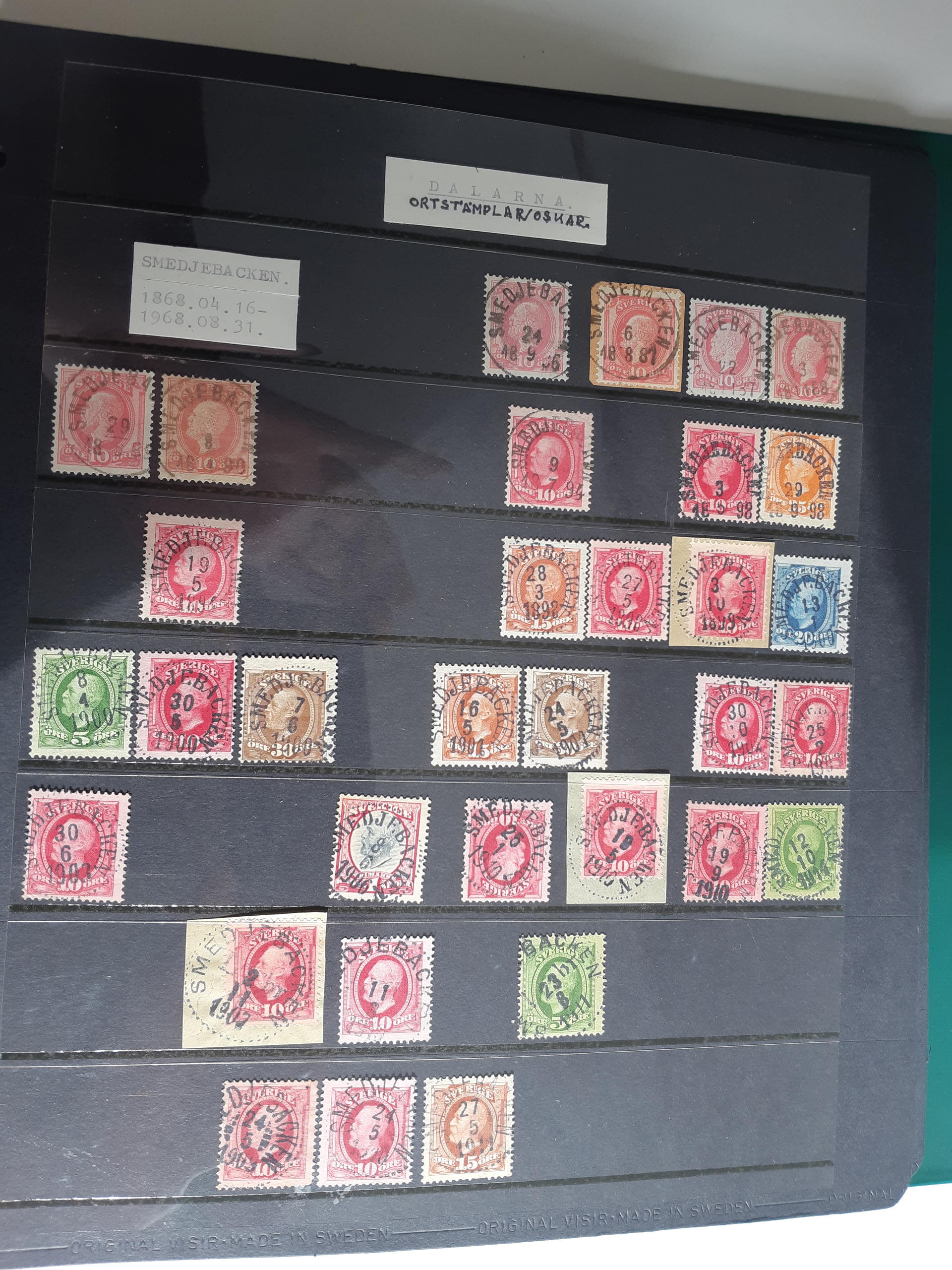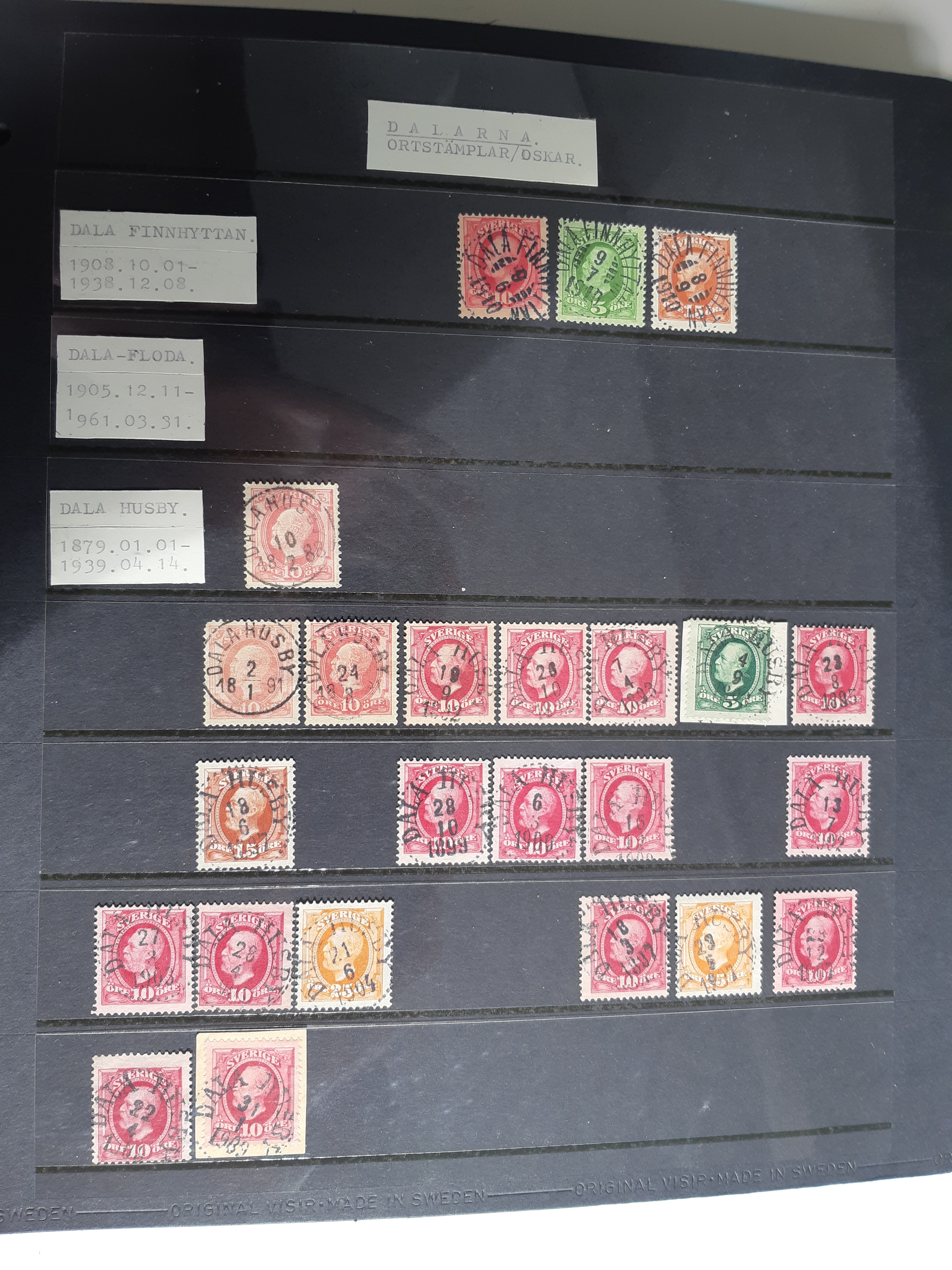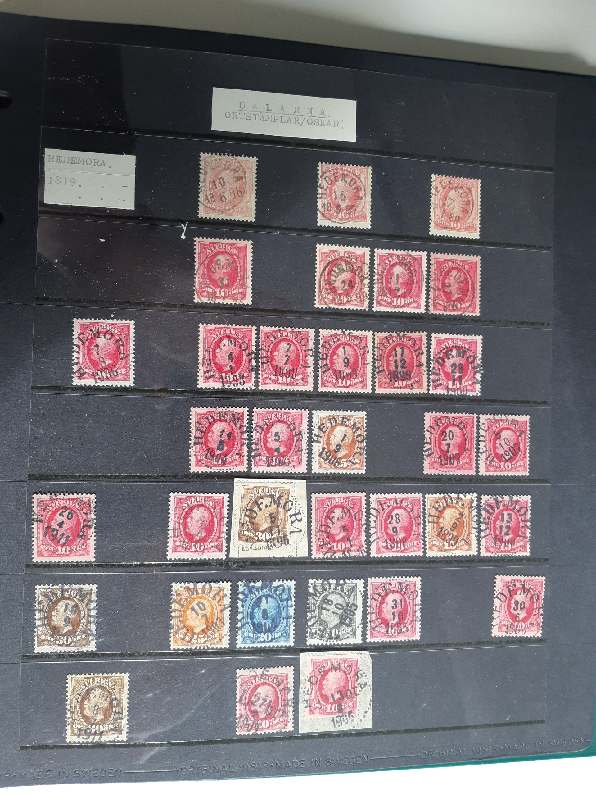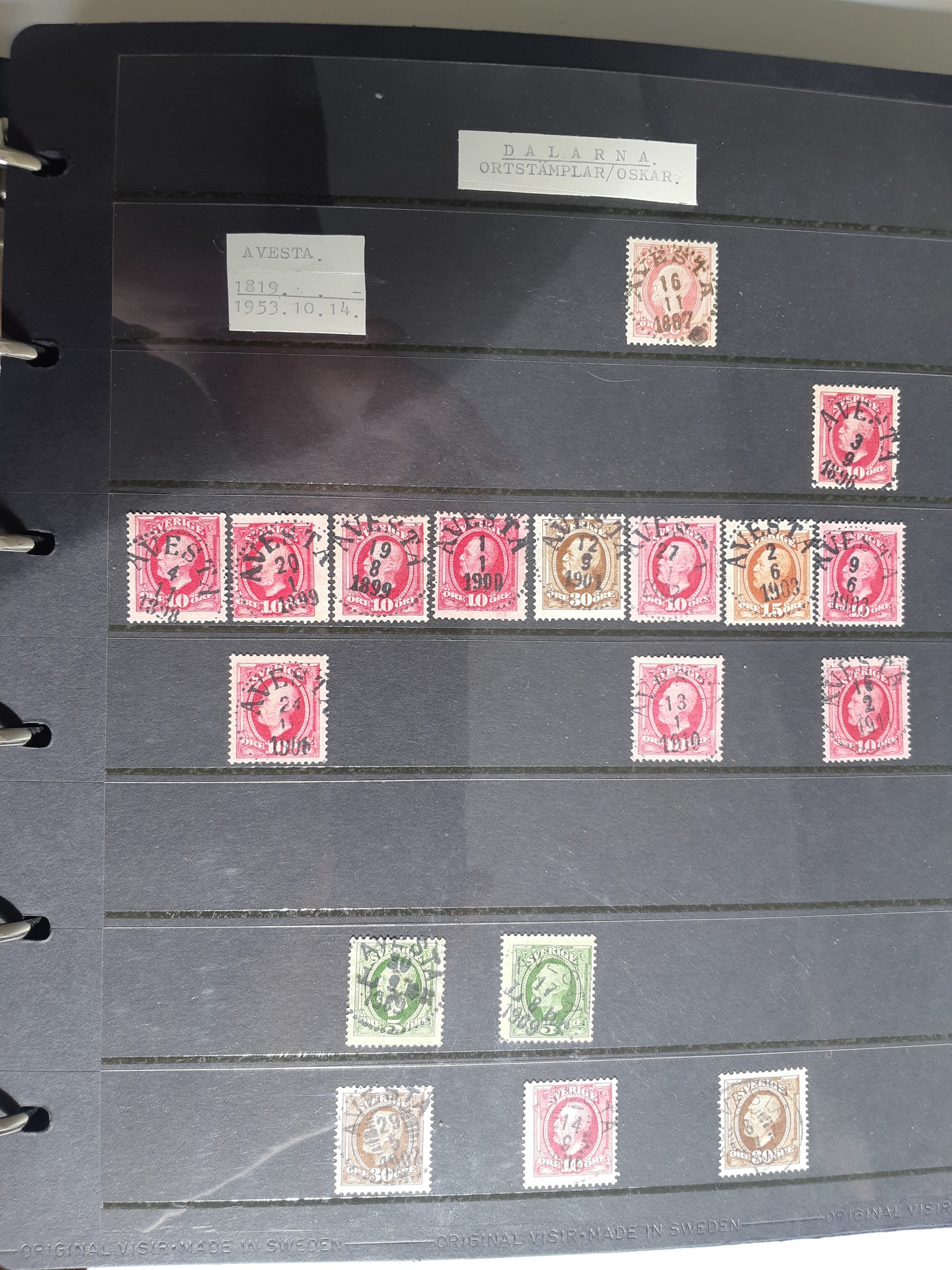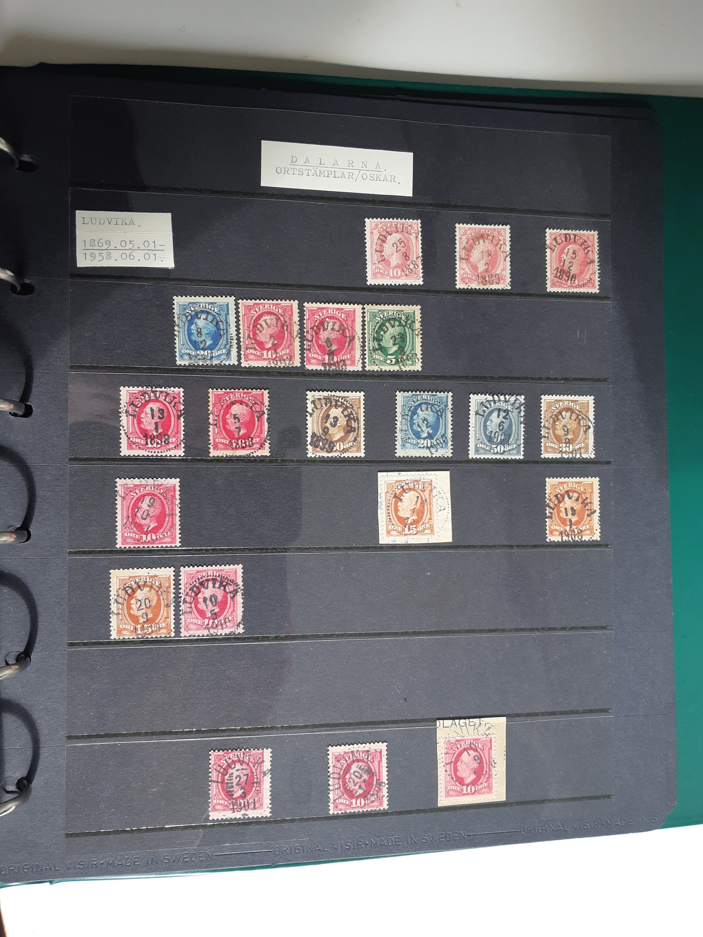 Sweden. Cancellations, collection DALARNA in two visir albums. Oscar II incl. a few cut pieces. Readable–superb cancellations. Please see a selection of scans at www.philea.se. (1000)