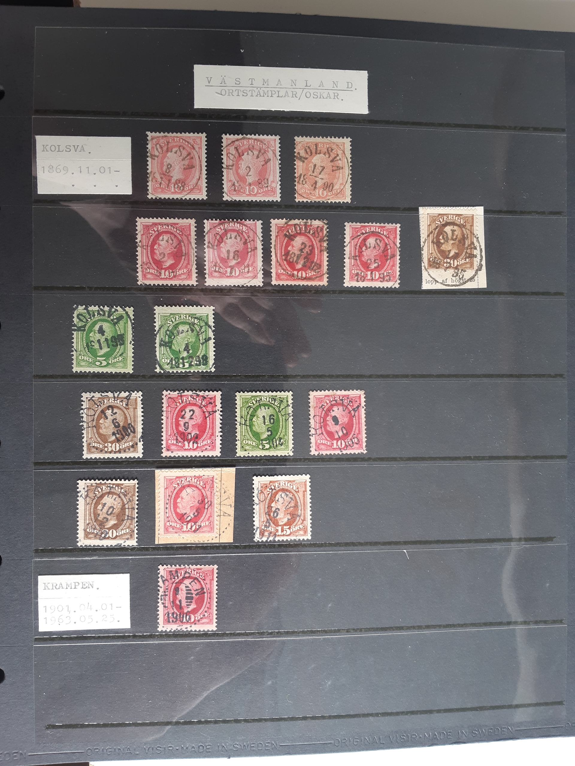 Sweden. Cancellations, collection VÄSTMANLAND in two visir albums. Oscar II incl. a few cut pieces. Readable–superb cancellations. Please see a selection of scans at www.philea.se. (1000)