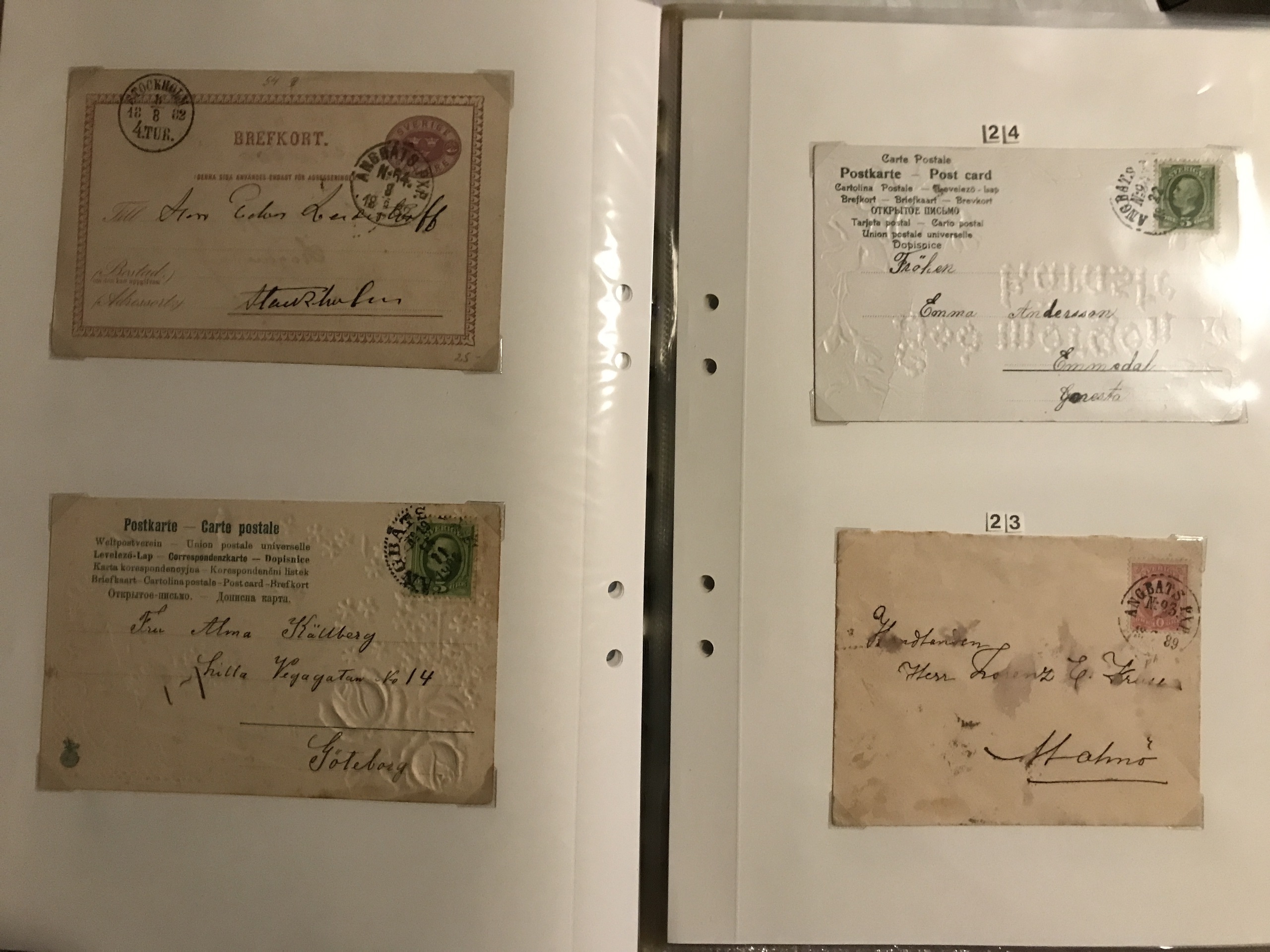 Sweden. Cancellations. Binder with about 150 covers, cards and postal statoneries with steamship cancellations 1879–1938 incl. also better ones. Please see a selection of scans at www.philea.se. Mostly fine quality.