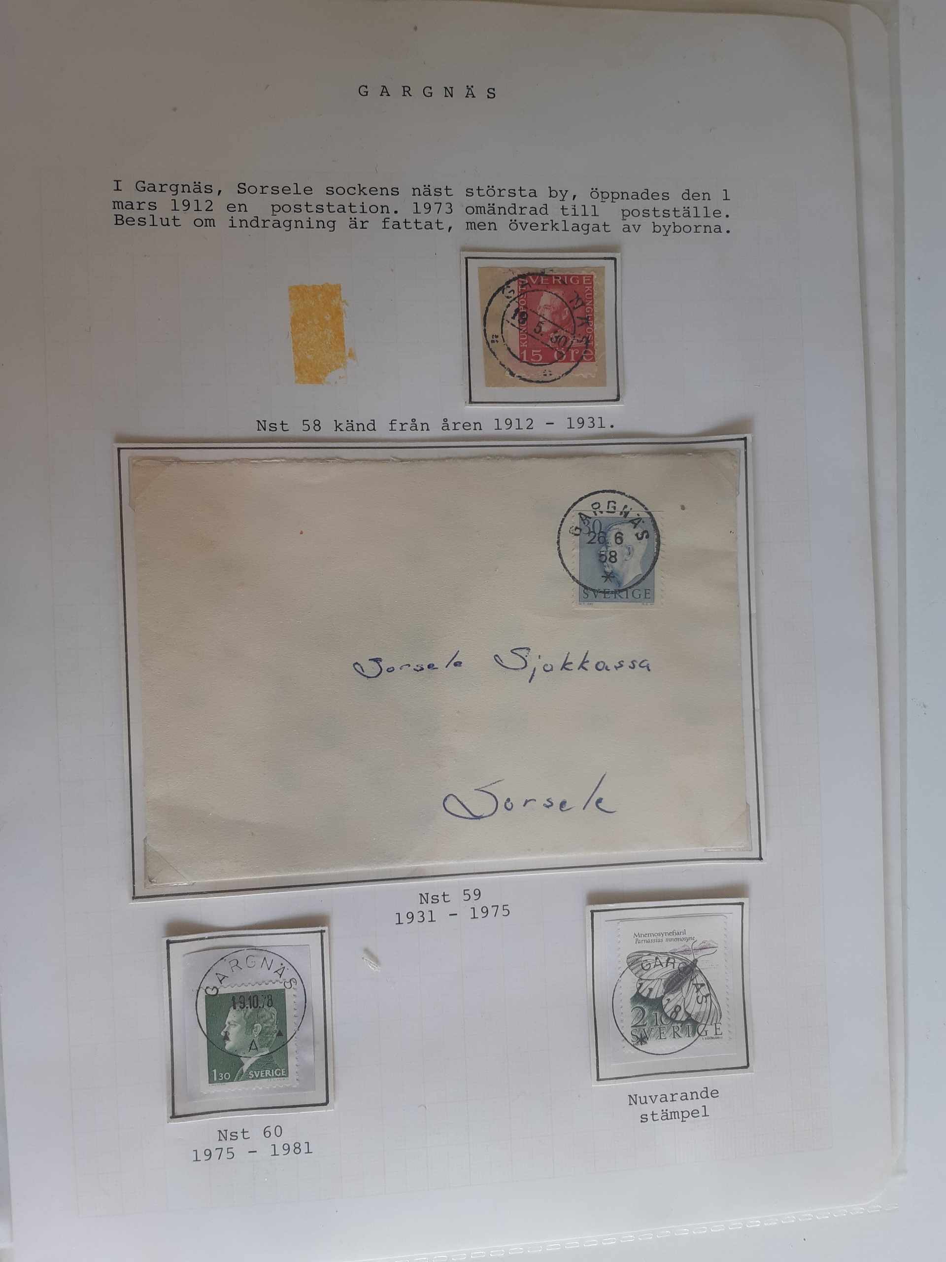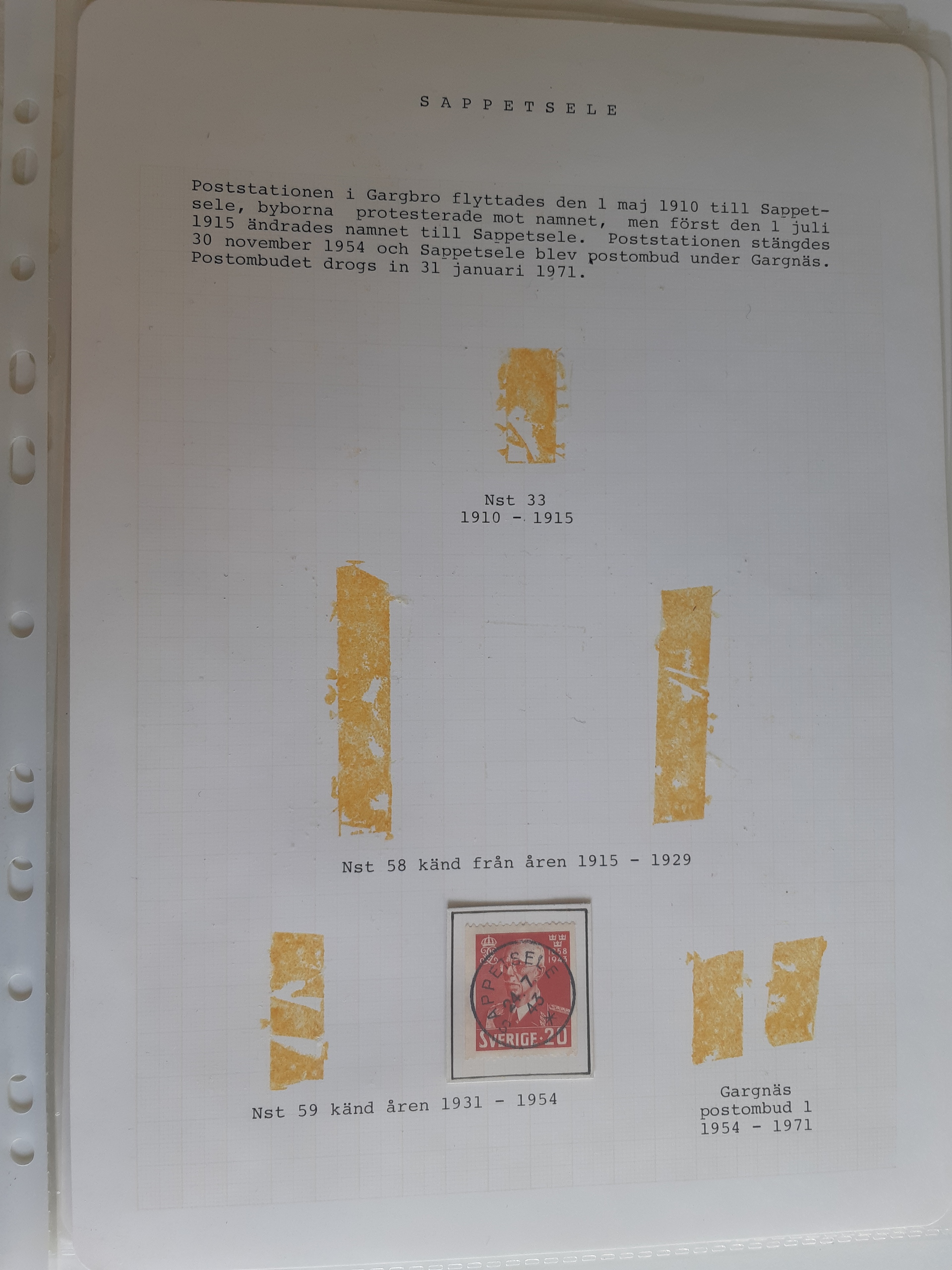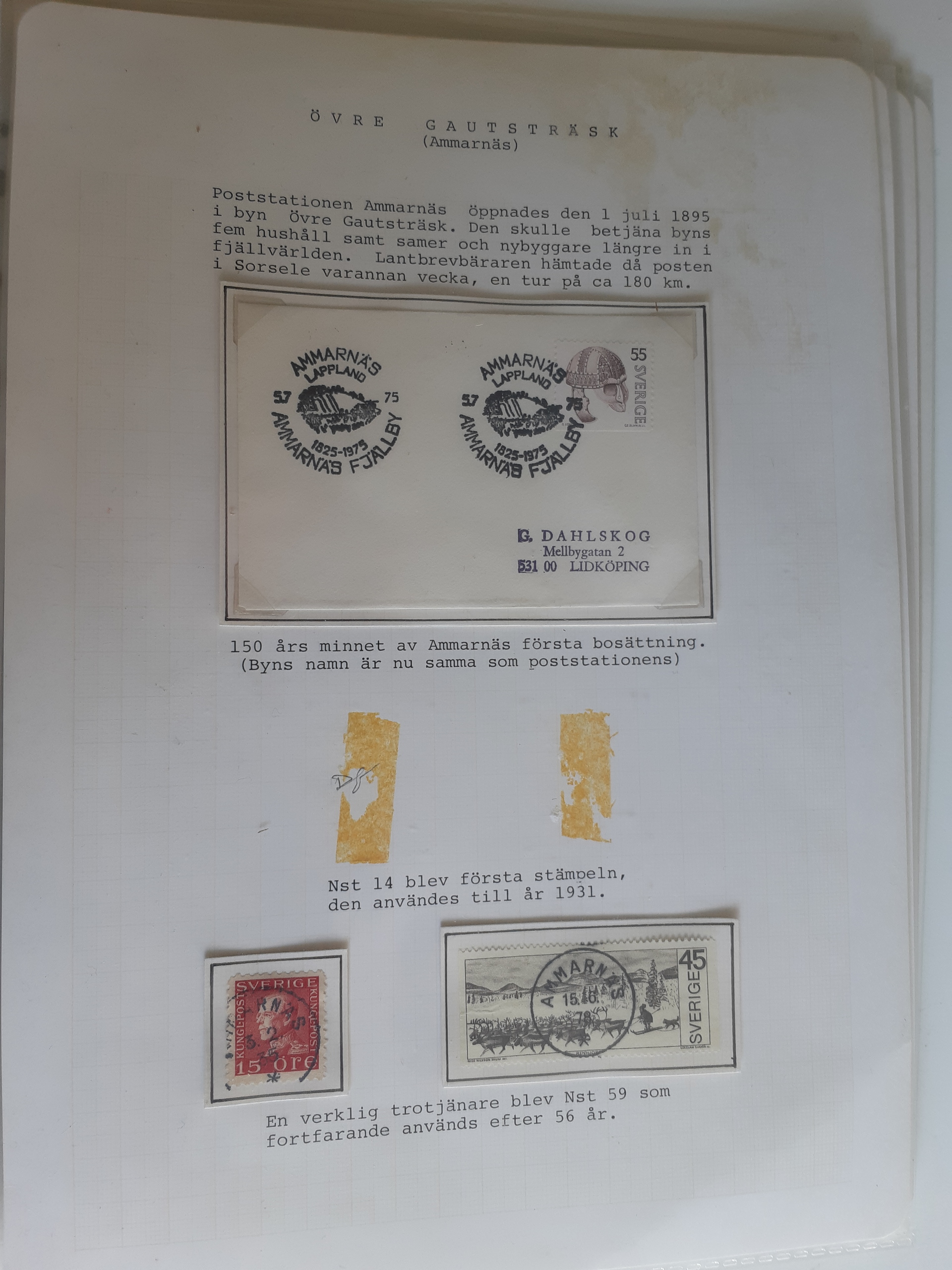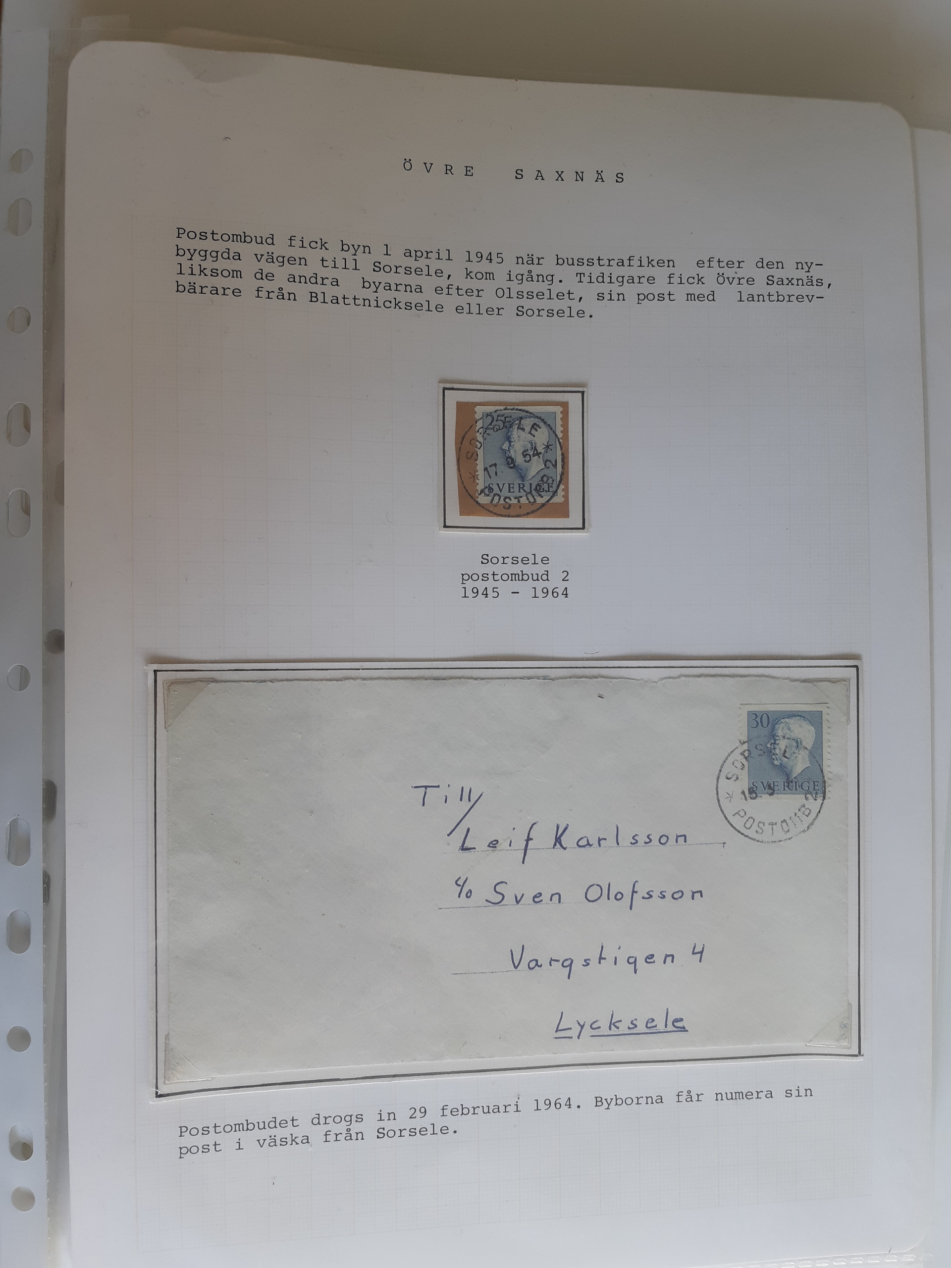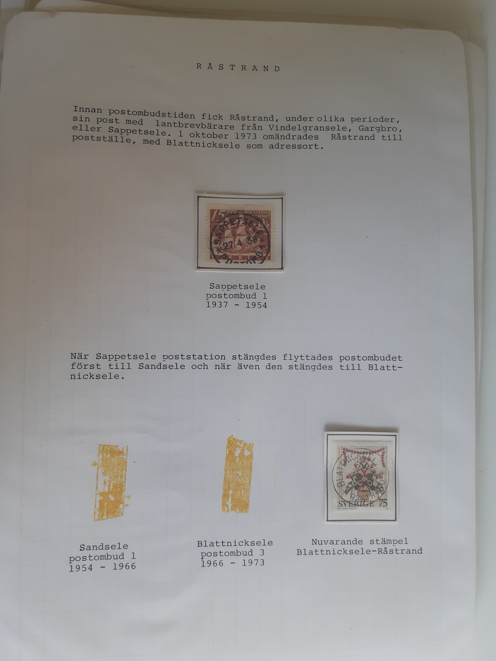 Sweden. Cancellations, collection VINDELÄLVEN on leaves. Övre Gautsträsk–Ruskträsk. Stamps and covers. The entire lot is presented at www.philea.se. (48)