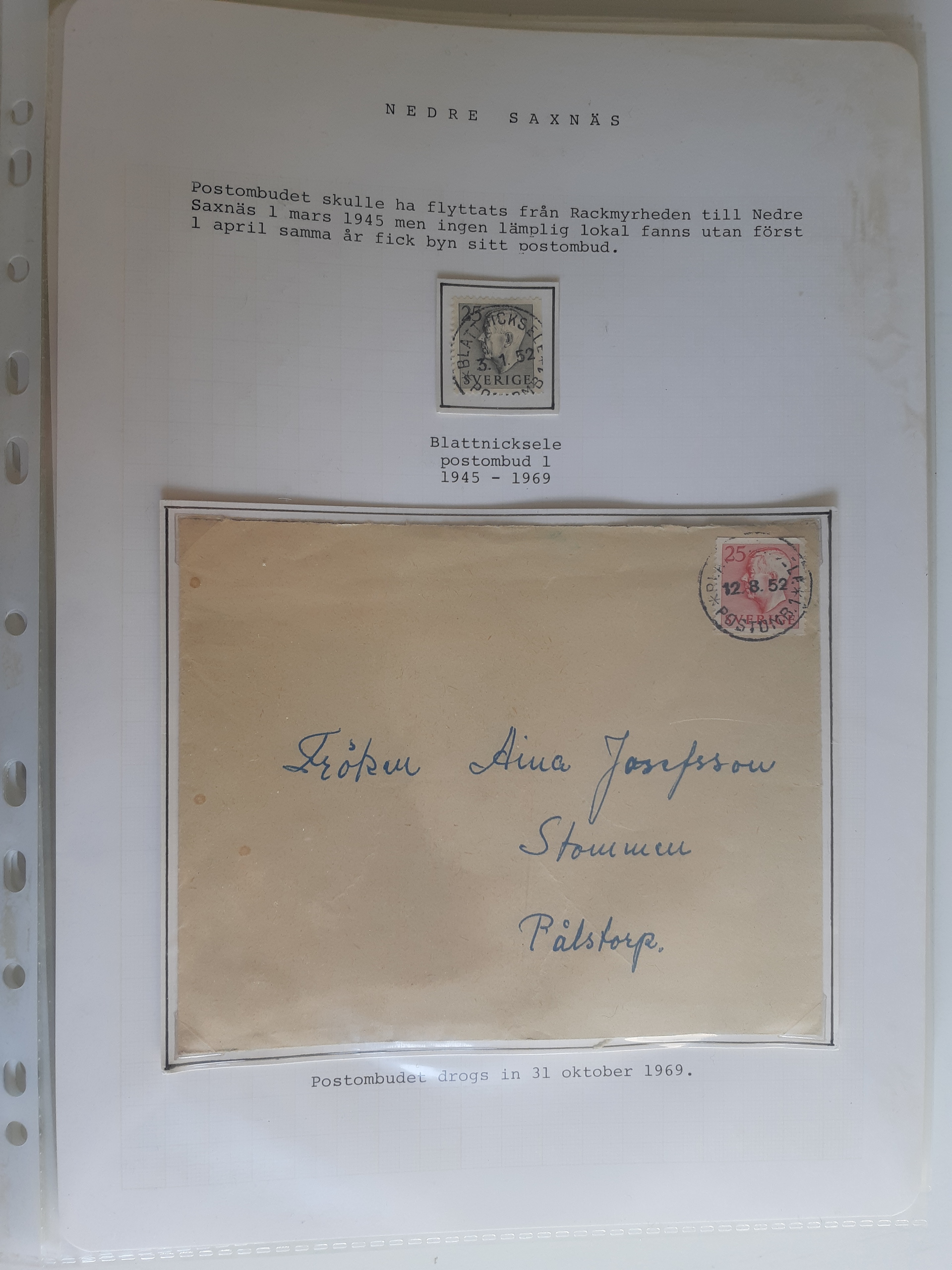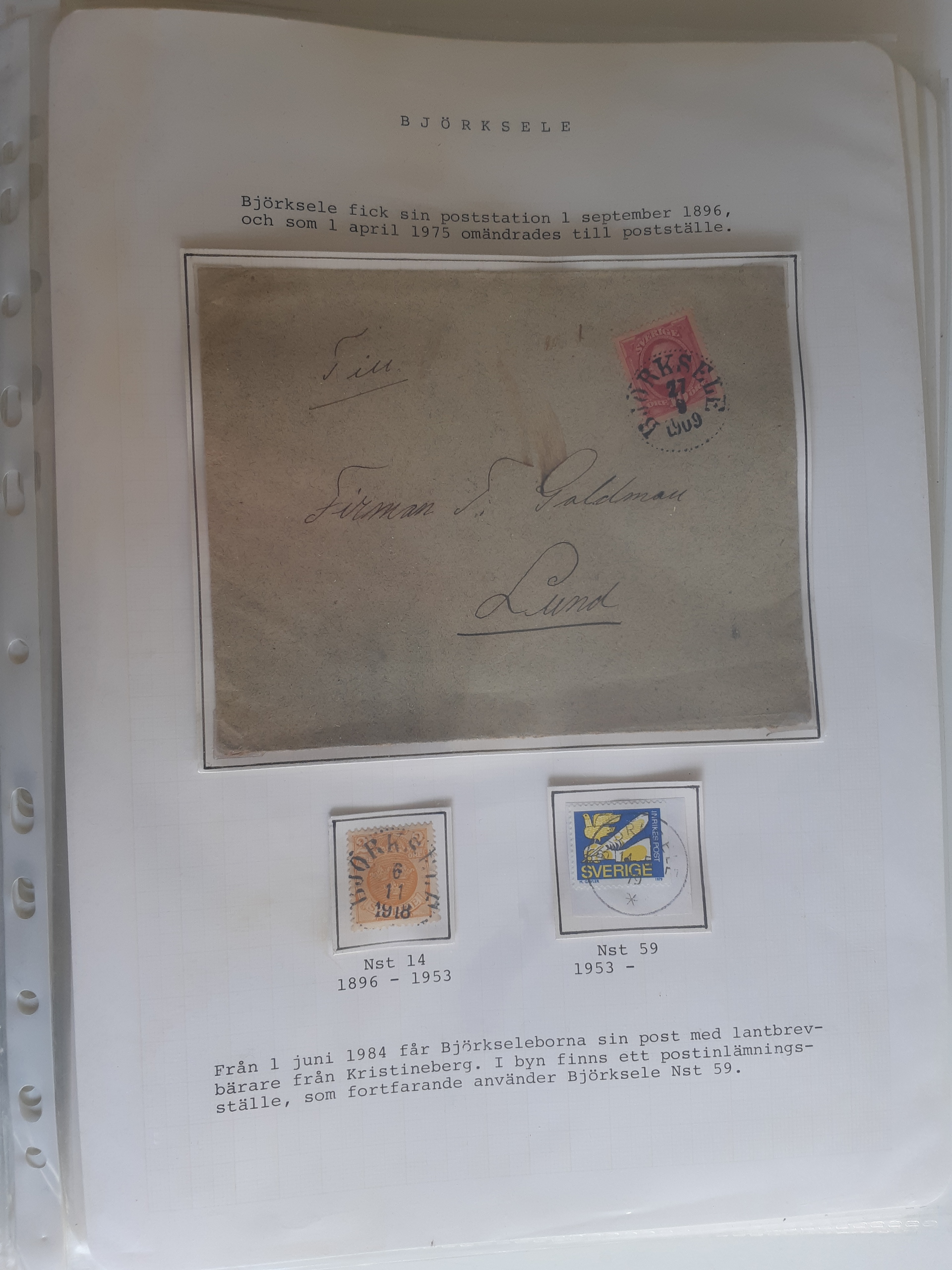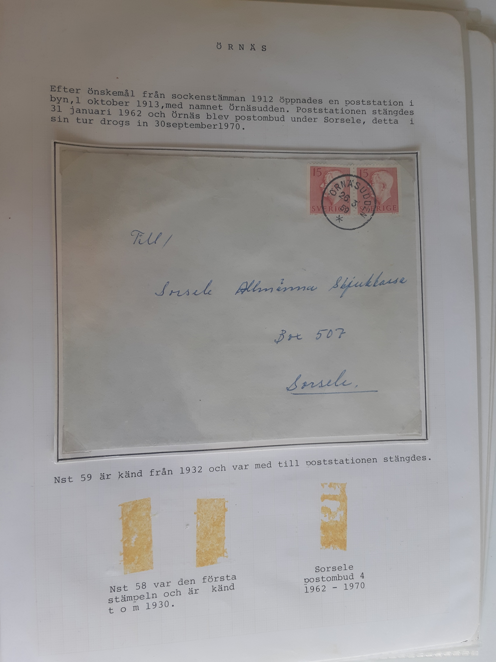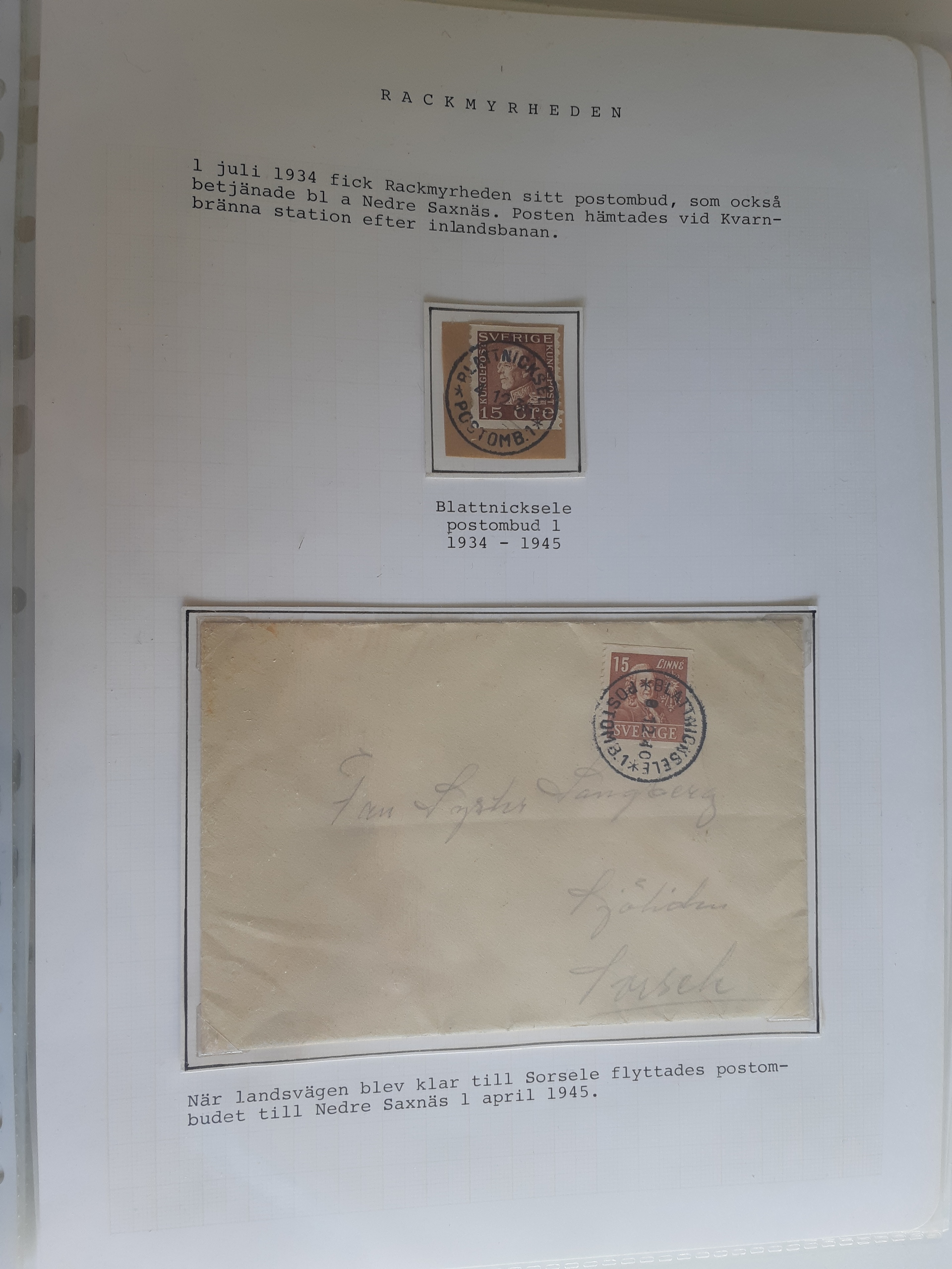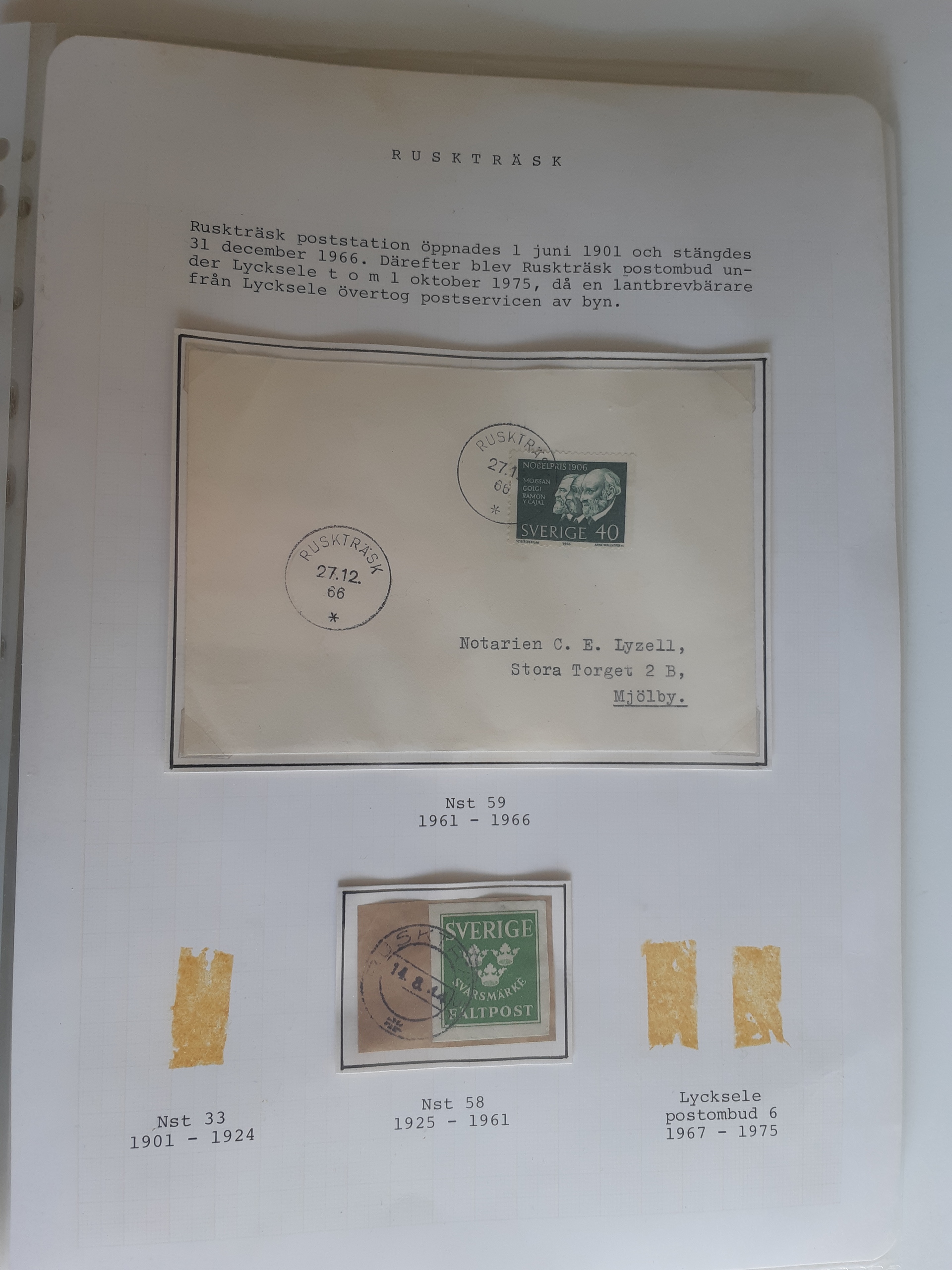 Sweden. Cancellations, collection VINDELÄLVEN on leaves. Övre Gautsträsk–Ruskträsk. Stamps and covers. The entire lot is presented at www.philea.se. (48)