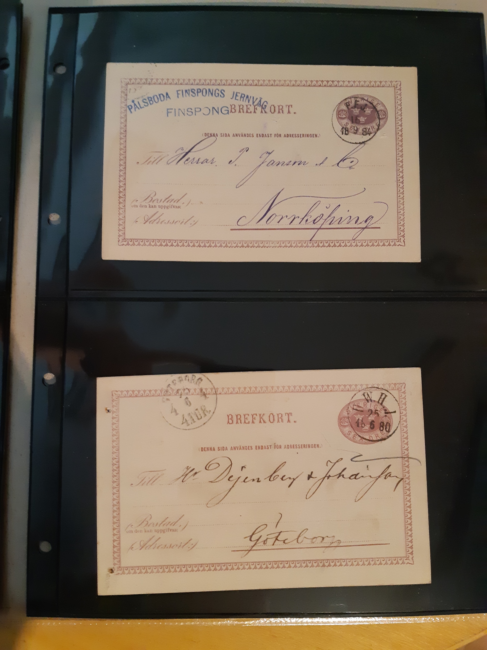 Sweden. Cancellations, collection RAILWAY MAIL 2 on visir leaves. Postmarks GDJ, HEJ, KEJ, KHJ, KSJ, LSS, PFJ, UWHJ and ÖH on postal stationery. The entire lot is presented at www.philea.se. Mostly good quality. (12)