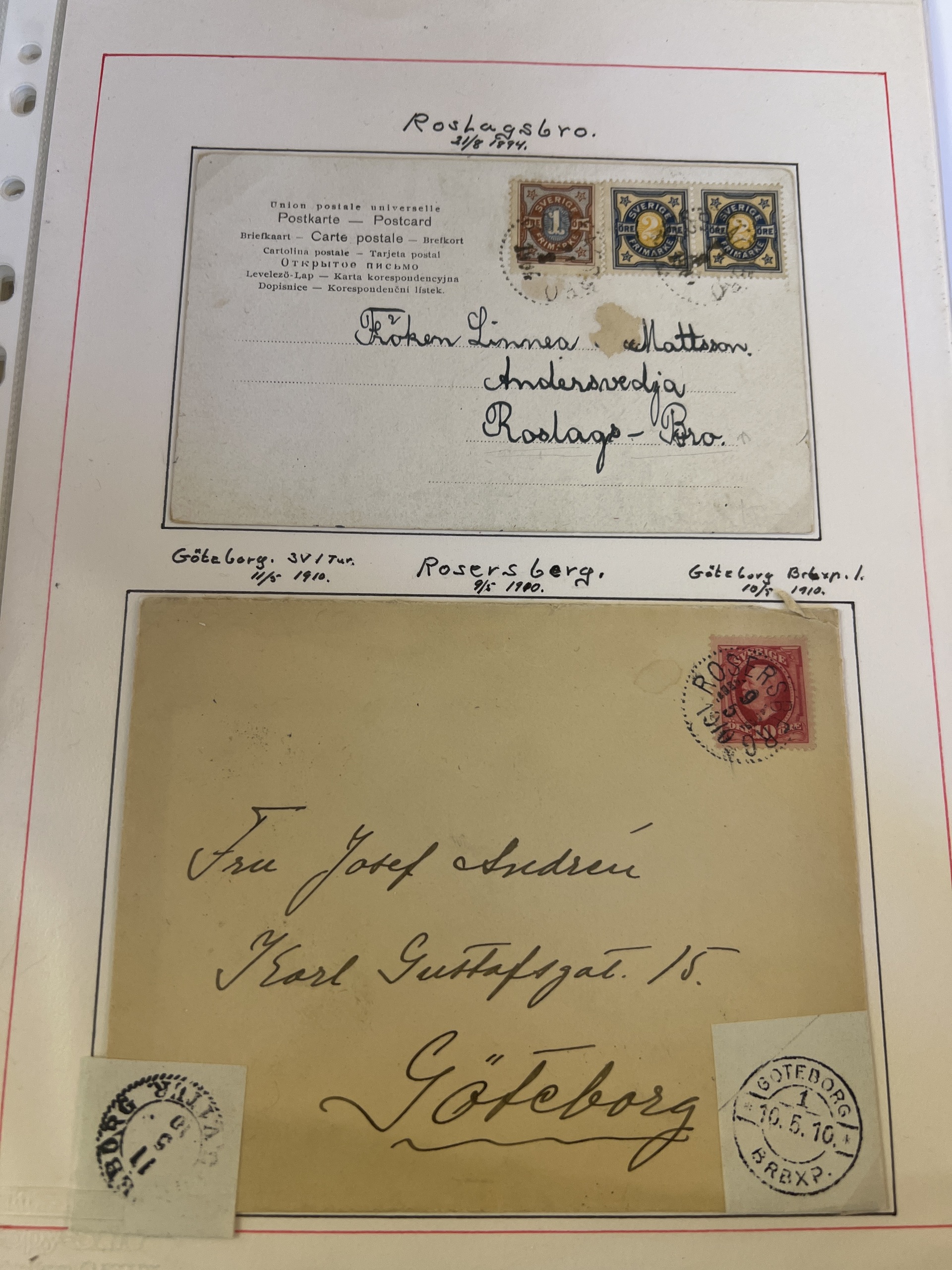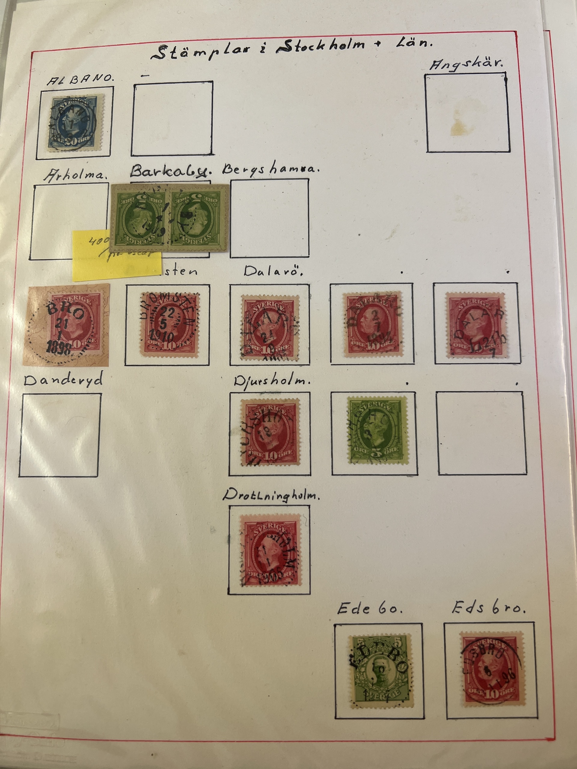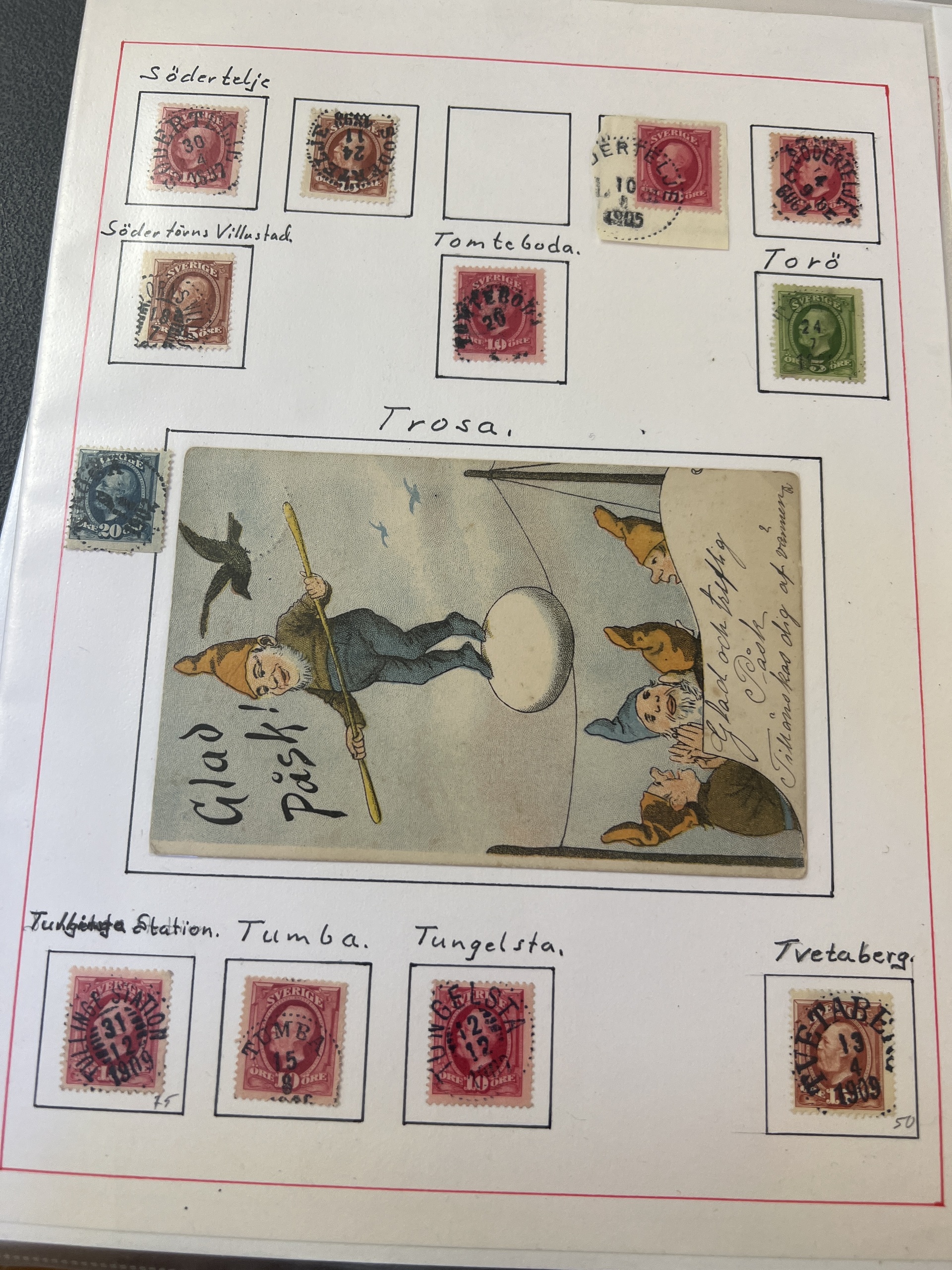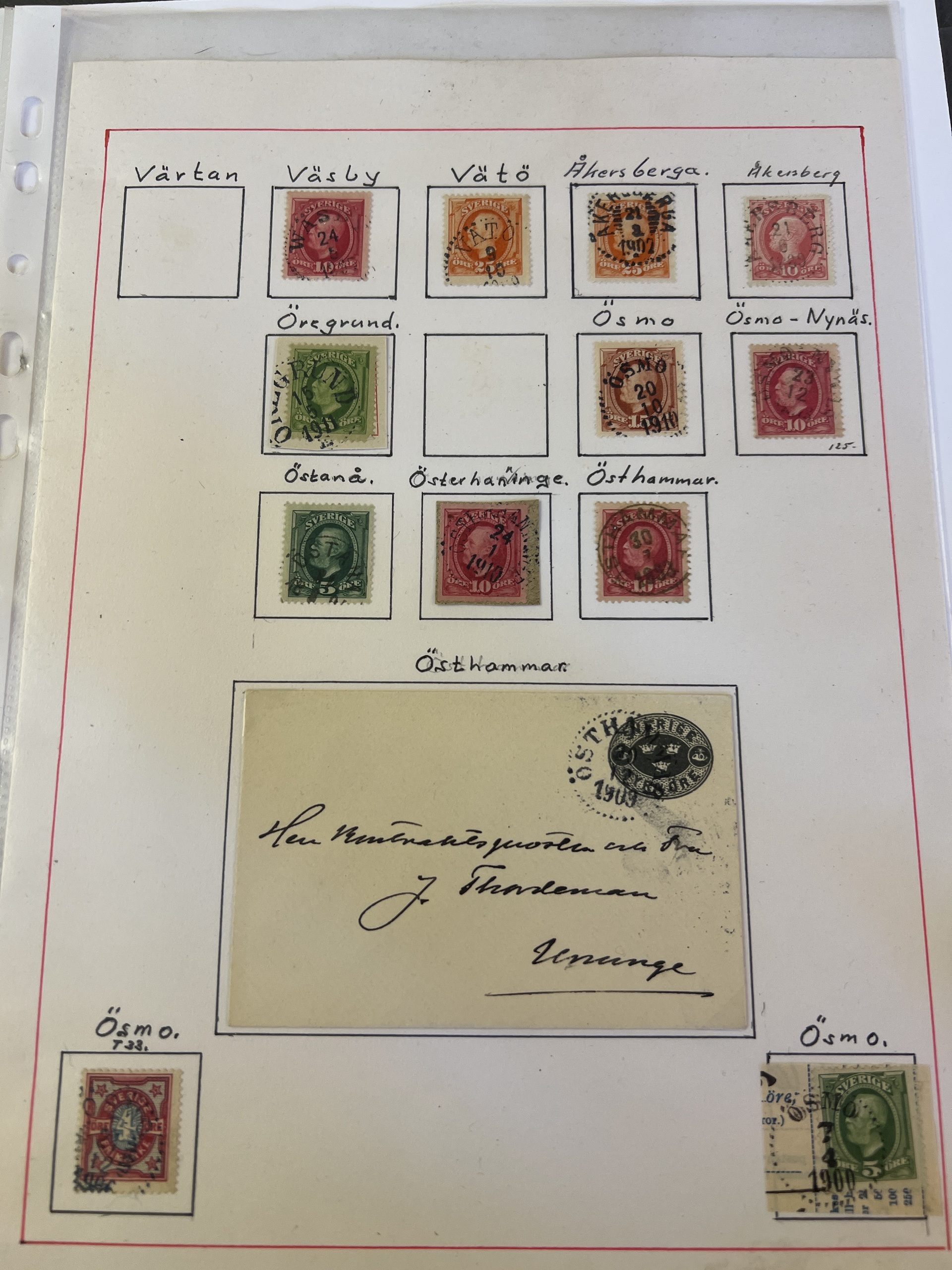 Sweden. Cancellations, collection 1891–1910 on leaves. Oscar counties A and B, some scarce and about 40 covers/cards incl. One with return label from Russia. Mostly fine quality. (125)