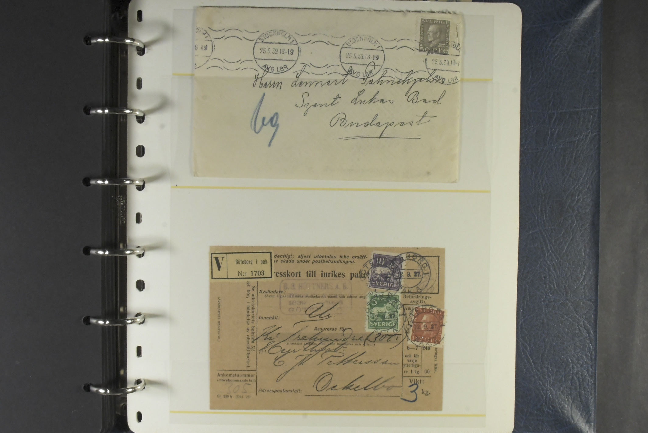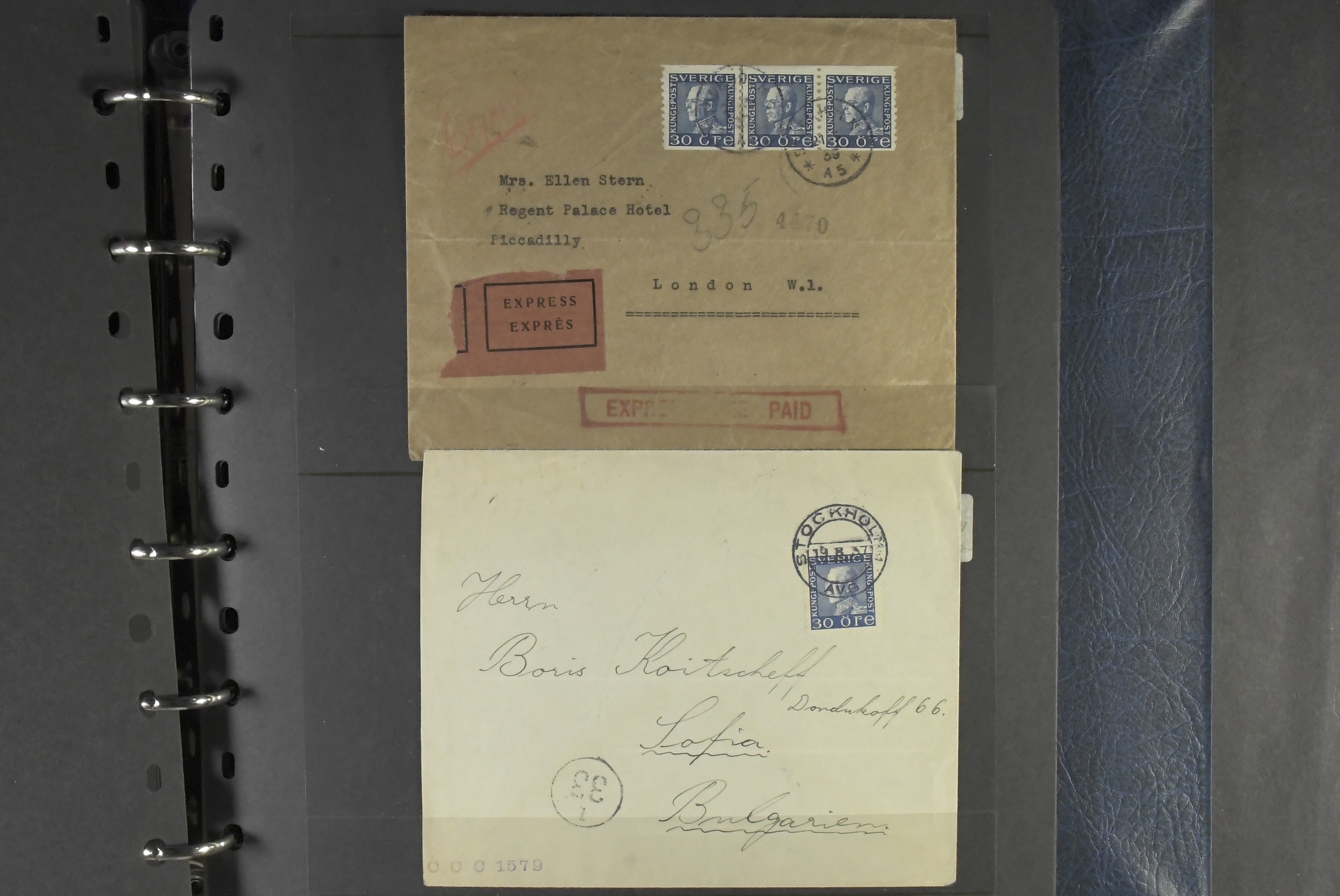 Sweden. Collection covers GUSTAF V LEFT PROFILE in visir album. Selected better items, e.g. postal forms, special delivery and air mail, foreign destinations incl. Bulgaria, Canada, Chile, China, Colombia, India, Iran, Ireland, Java, Philippines, South Africa, Turkey and Venezuela. The entire lot is presented at www.philea.se. Somewhat mixed quality. (38)