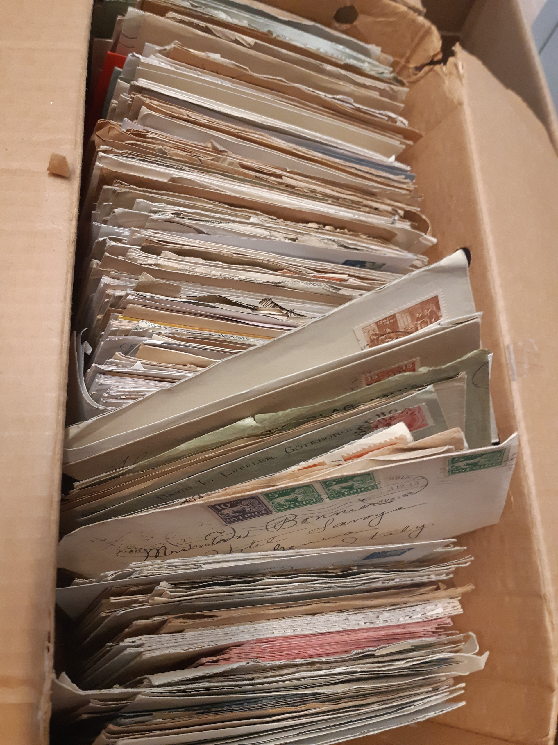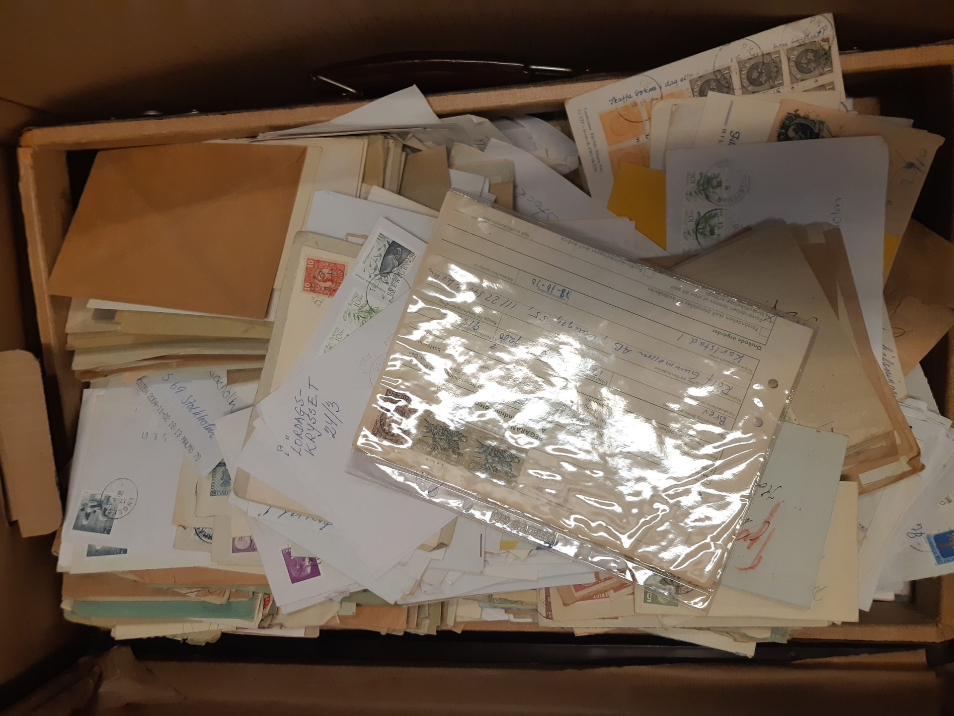 Sweden. Accumulation covers Oscar II–modern in removal box. In boxes and an old suitcase. Also a metal box with souvenir cards from Europe. Approx. 20 kg. (1000)