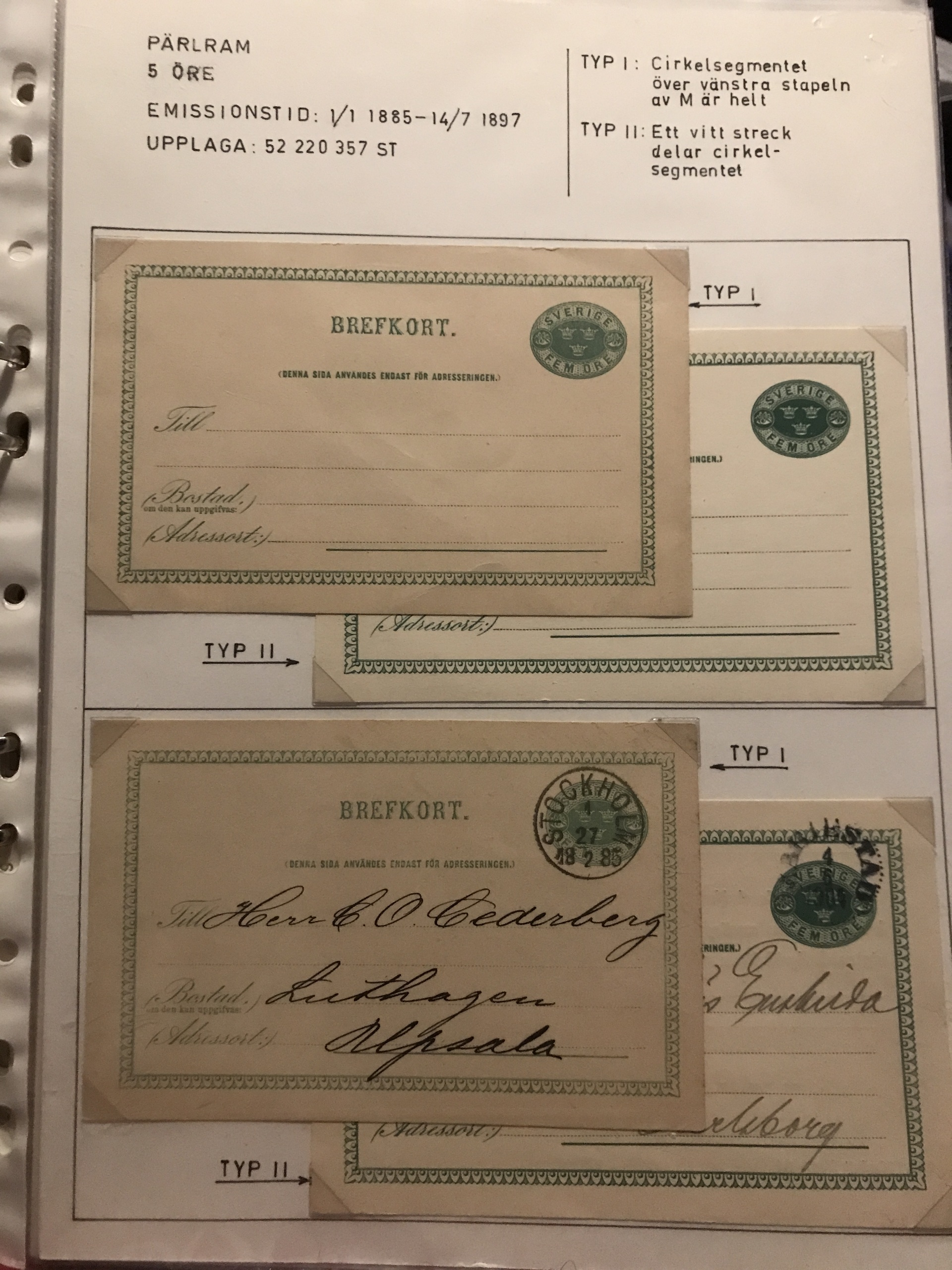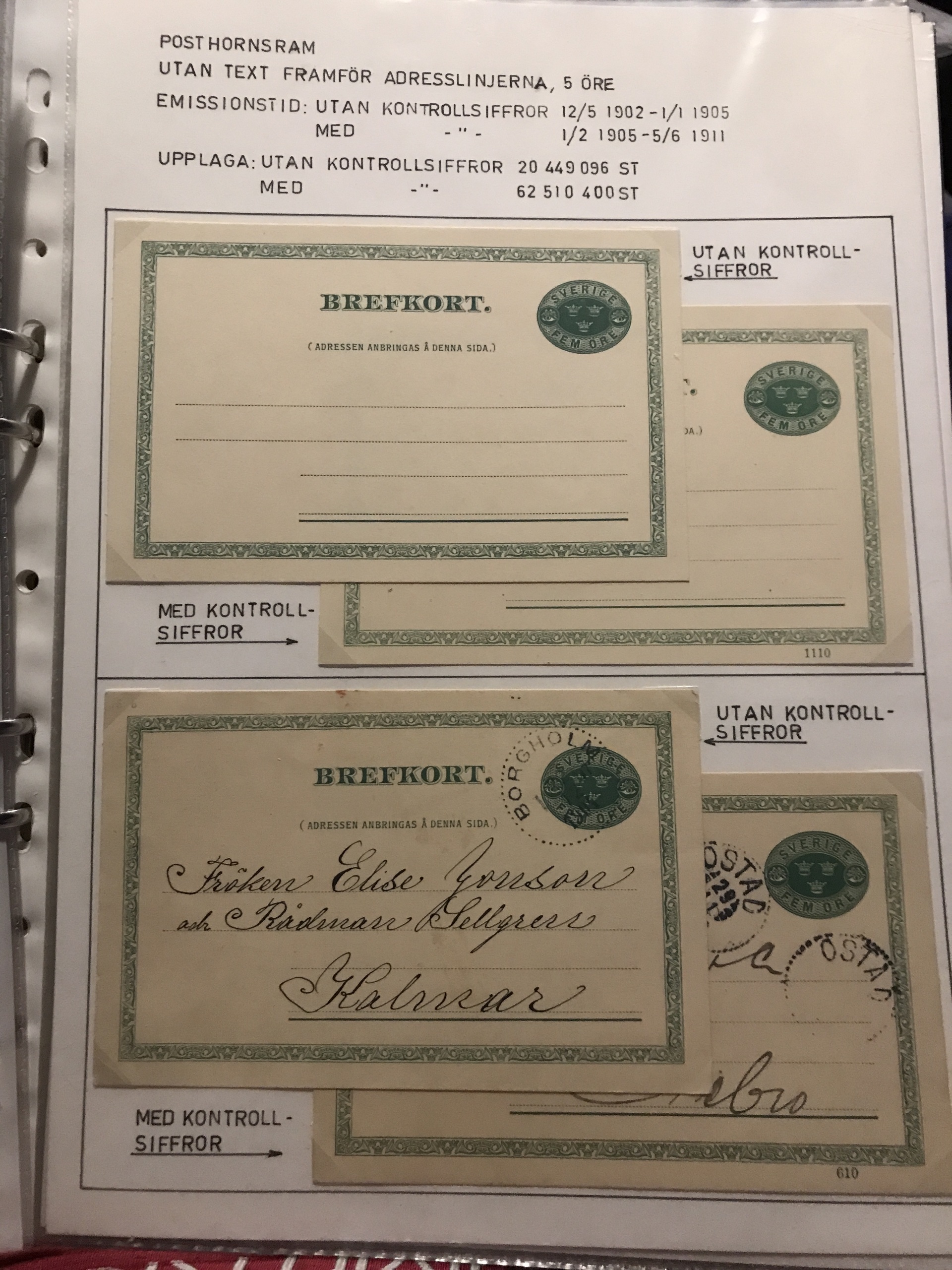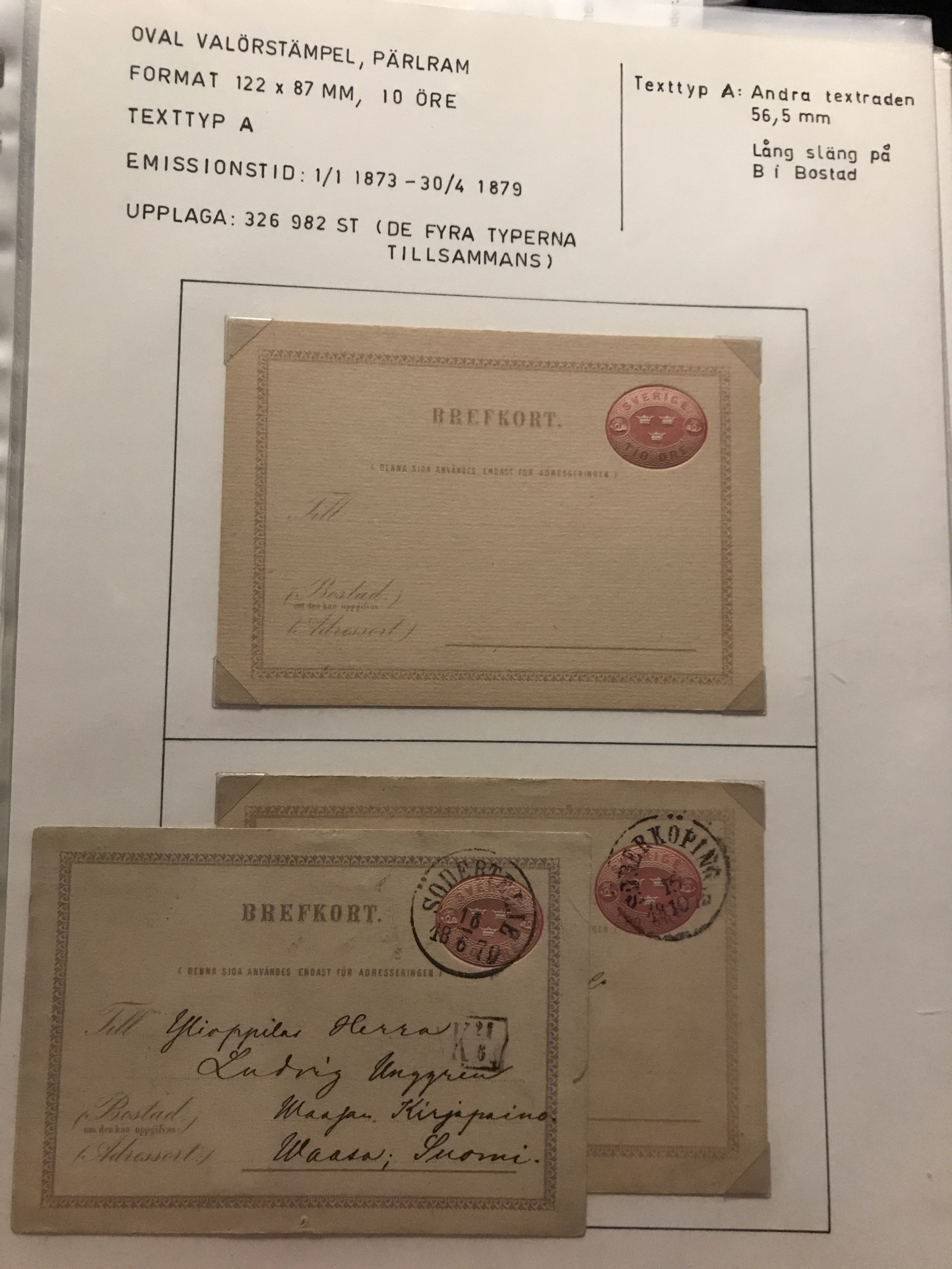 Sweden. Postal stationery. Epic and specialized collection used/unused 1872-1988 in three binders+ one binder with dupl. Please see a selection of scans at www.philea.se. Approx. 8 kg.