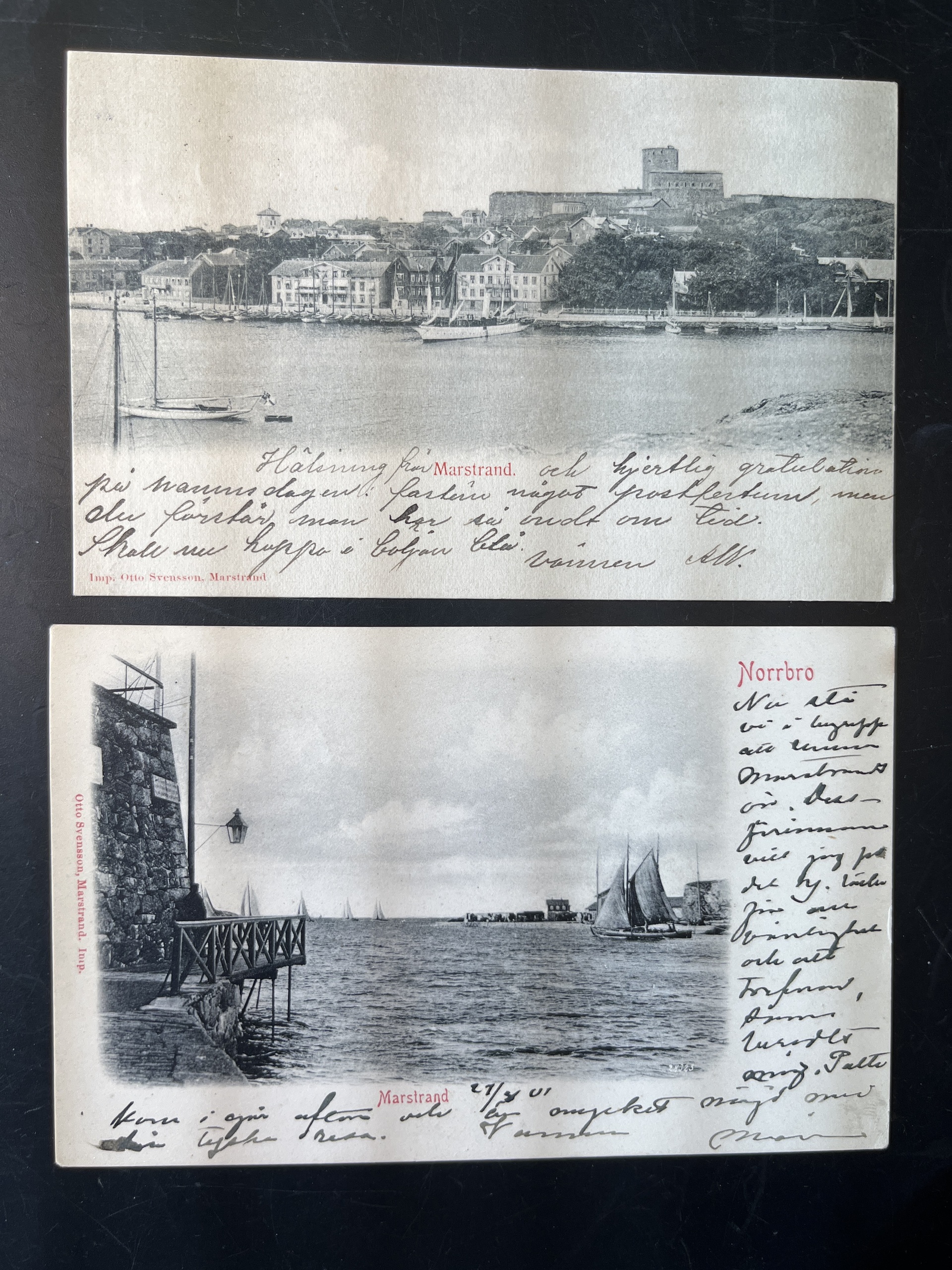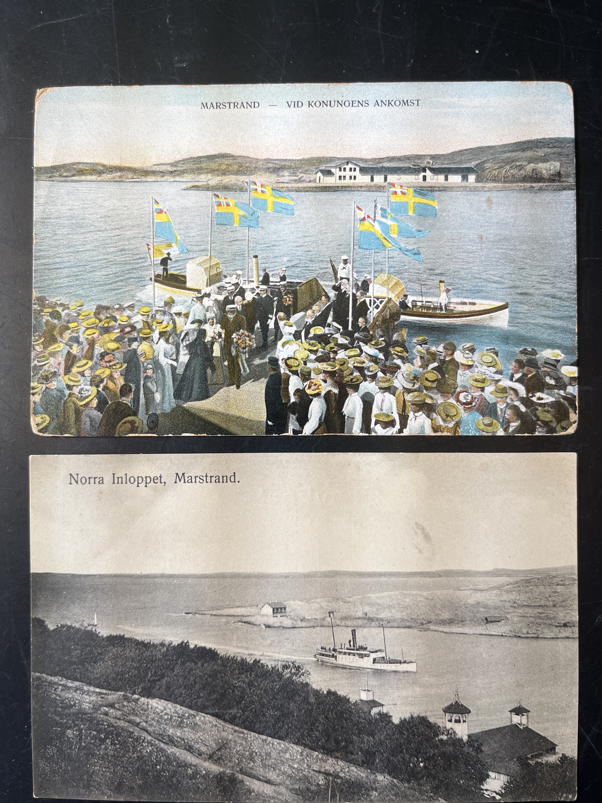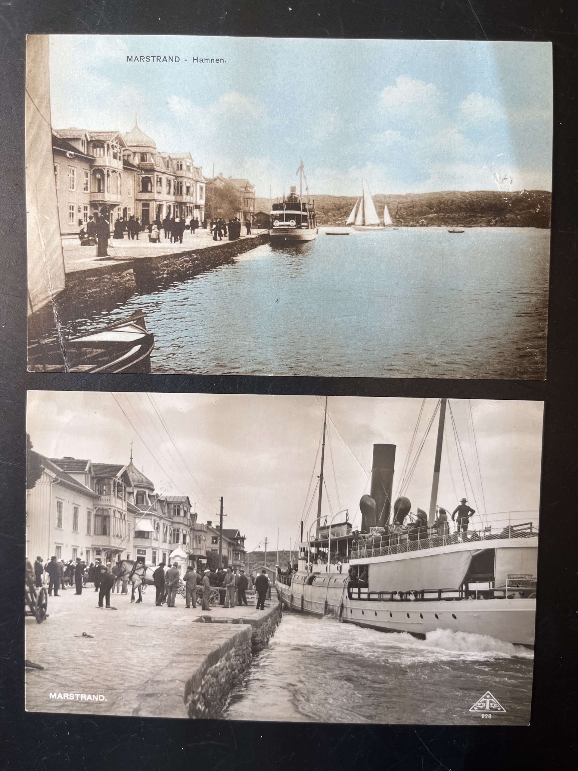 Sweden. Picture postcards, collection ca. 1898–modern in box with seven binders. MARSTRAND. Collection about Marstrand with over 650 postcards including duplicates and unused, cards and other items related to Marstrand and the West Coast. Very intressting lot. Please see a selection of scans at www.philea.se. Approx. 11 kg.