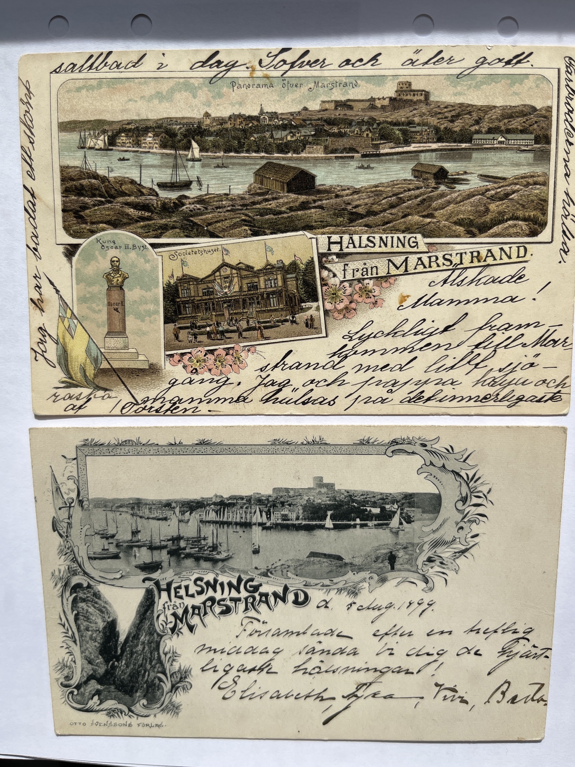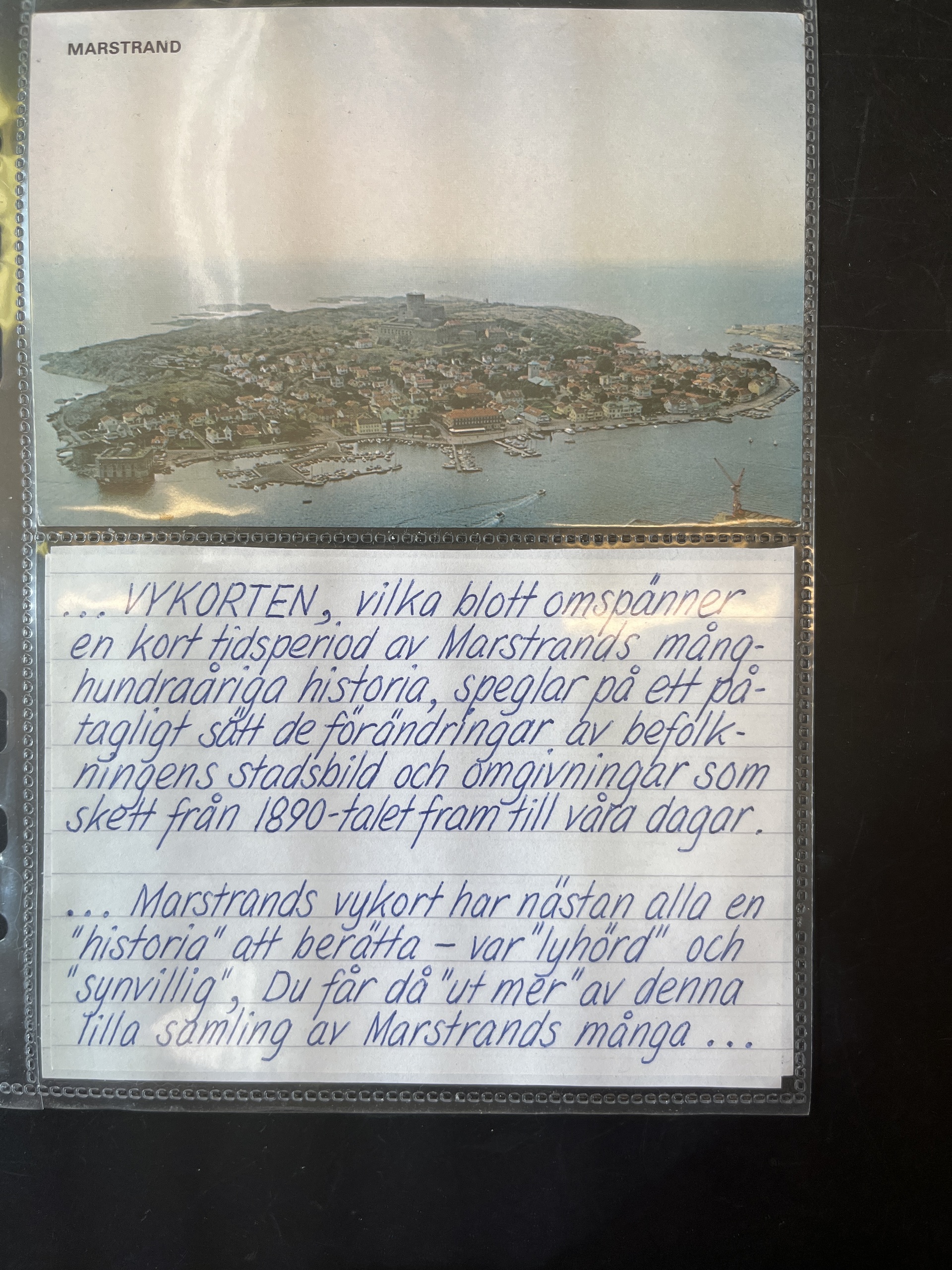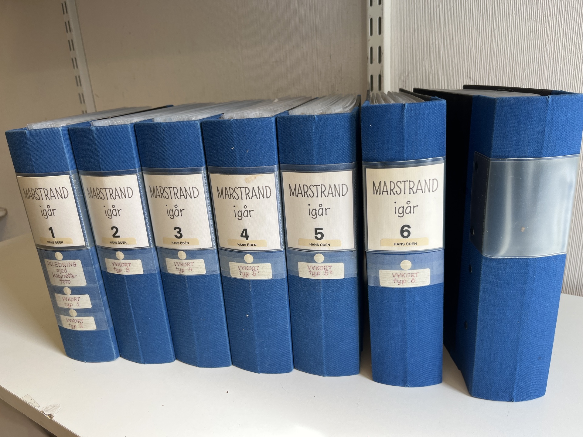 Sweden. Picture postcards, collection ca. 1898–modern in box with seven binders. MARSTRAND. Collection about Marstrand with over 650 postcards including duplicates and unused, cards and other items related to Marstrand and the West Coast. Very intressting lot. Please see a selection of scans at www.philea.se. Approx. 11 kg.