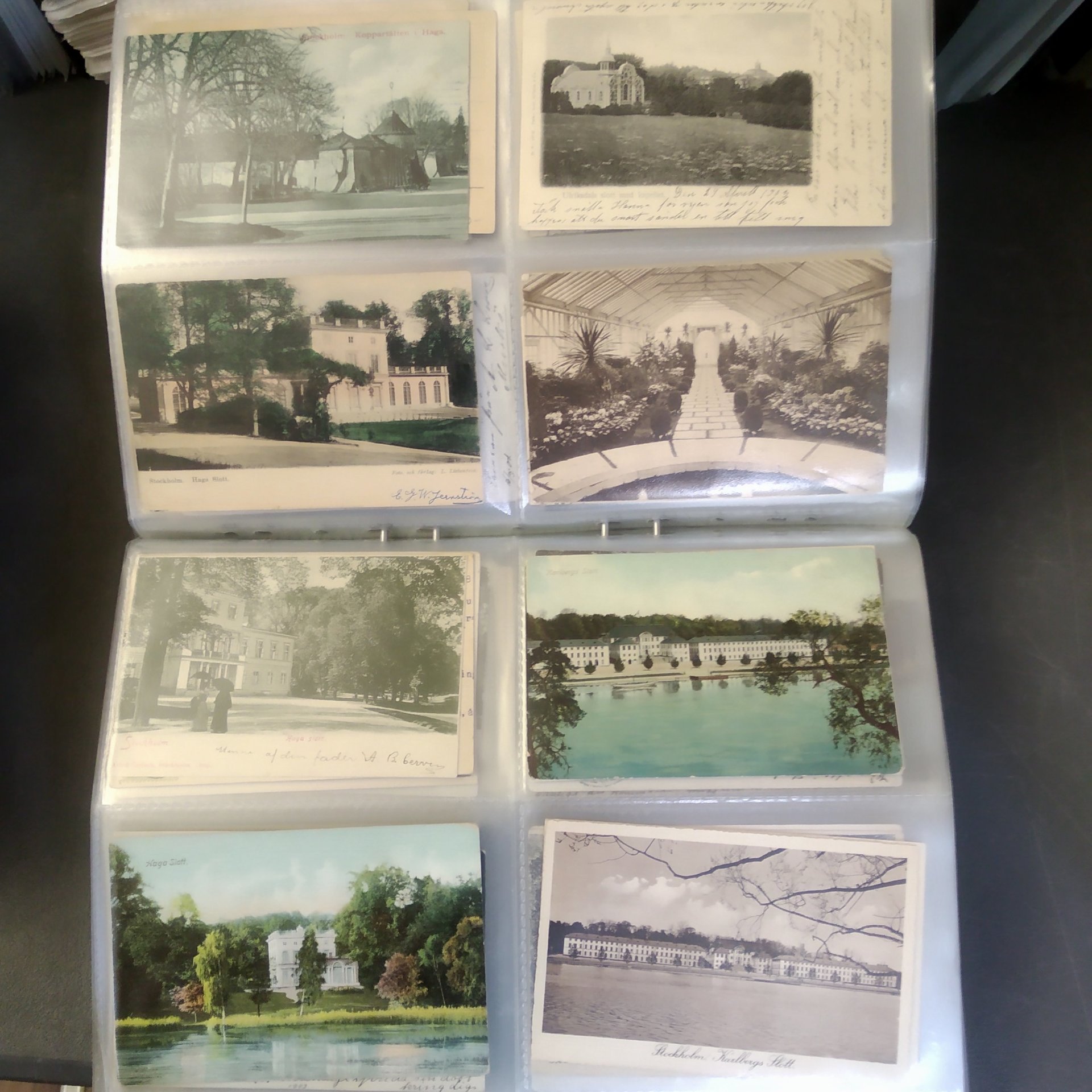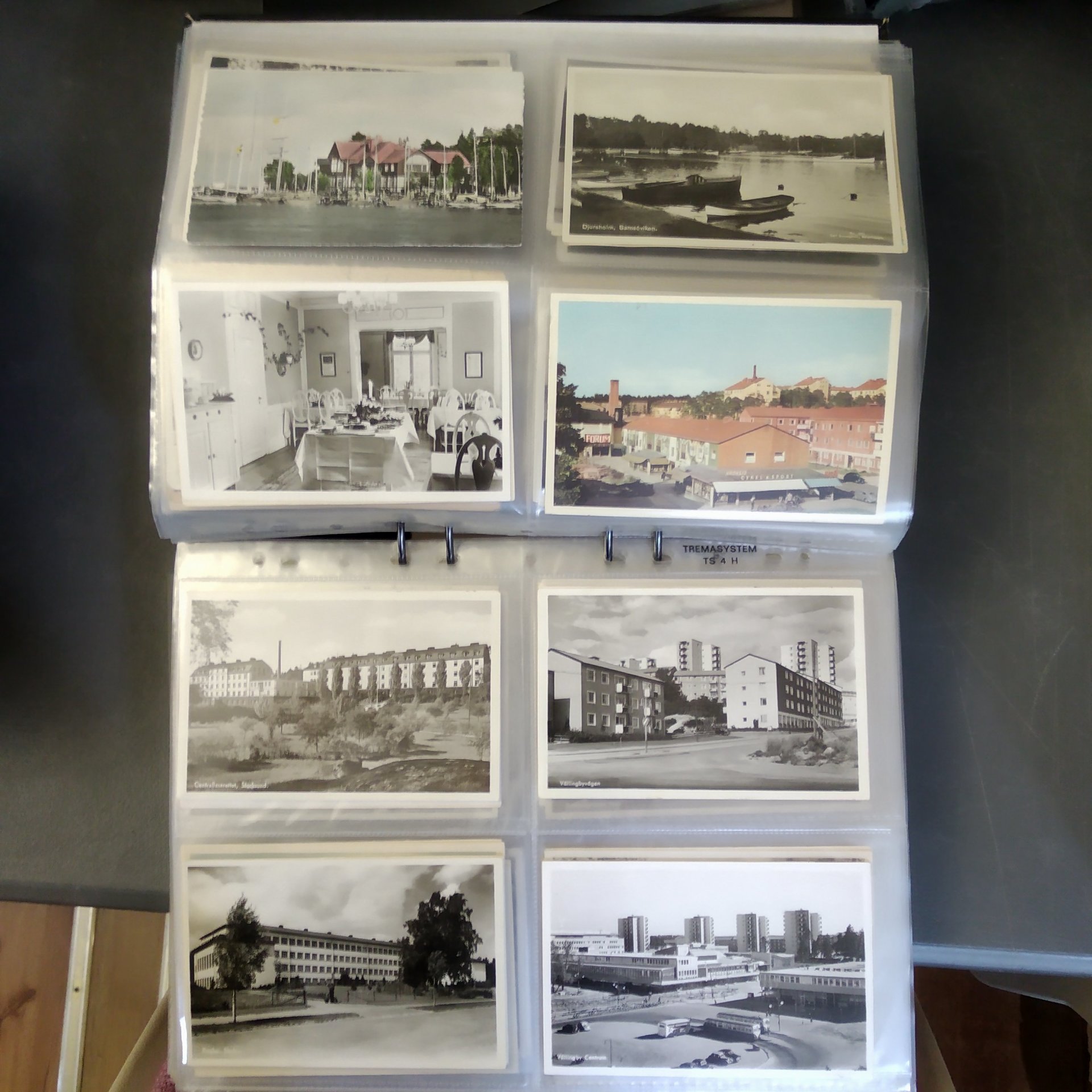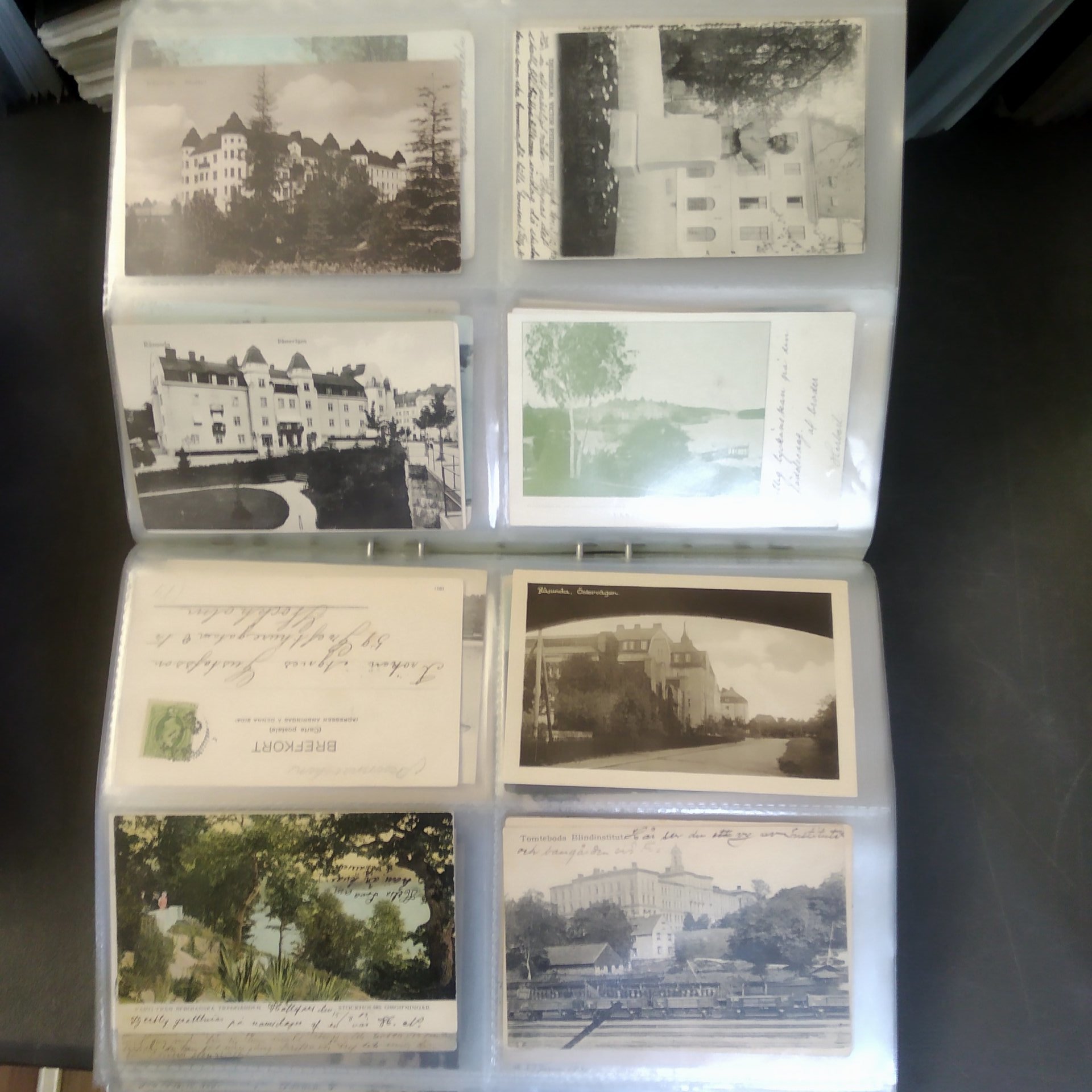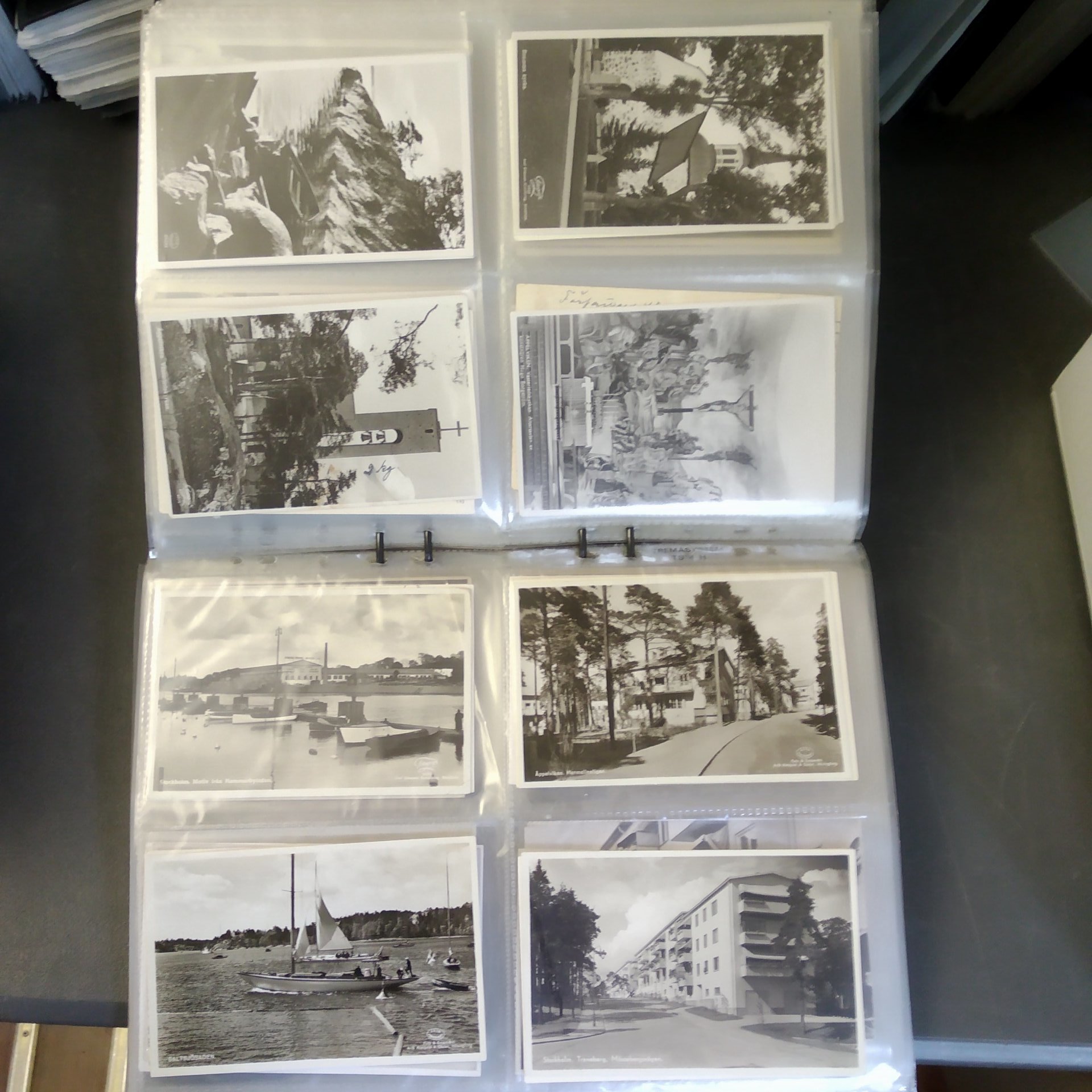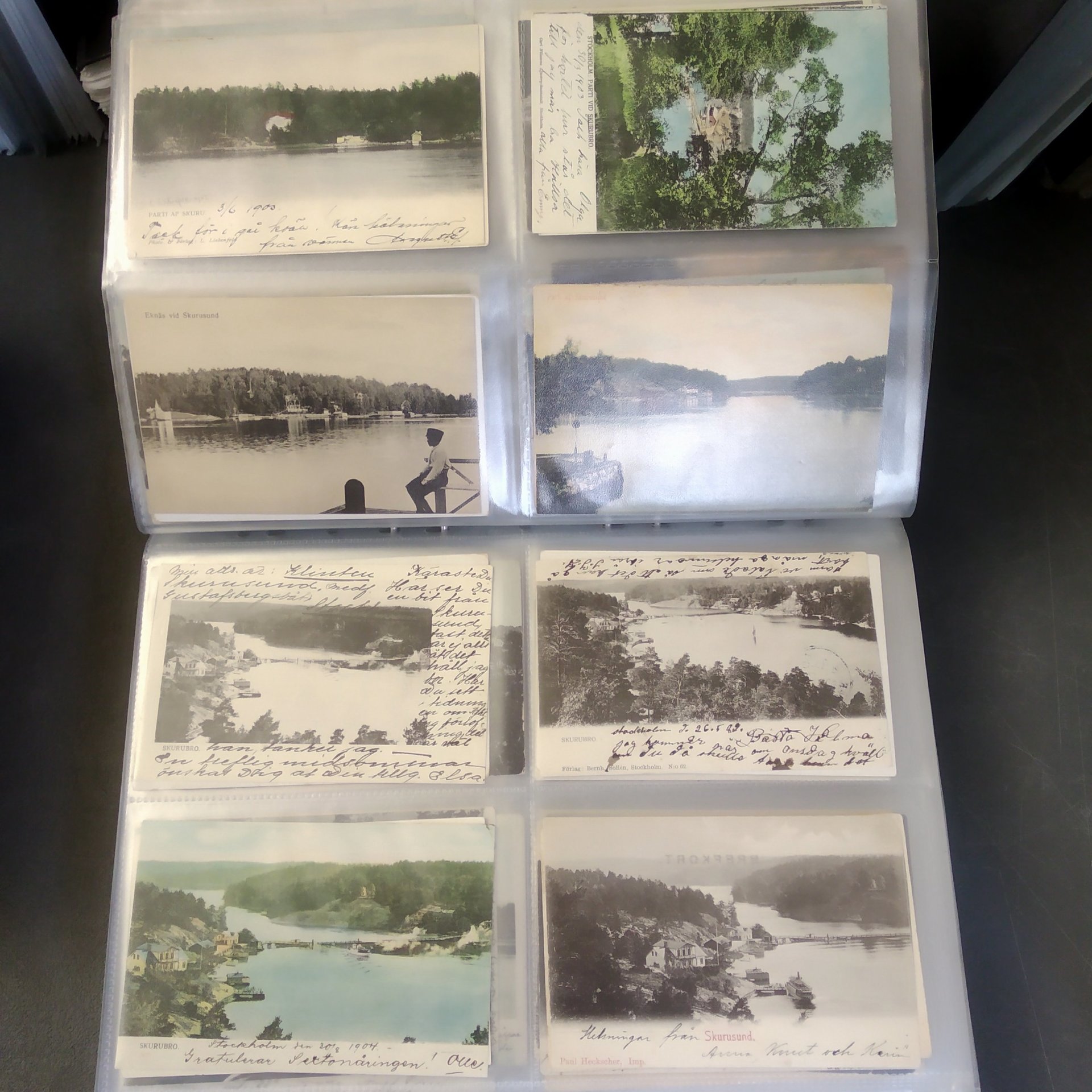 Sweden. Picture postcards, collection/accumulation 1900–1950s. Stockholm Surroundings, all in small size, in three binders with plastic pockets. Mostly good quality. Approx. 7 kg. (900–1000)