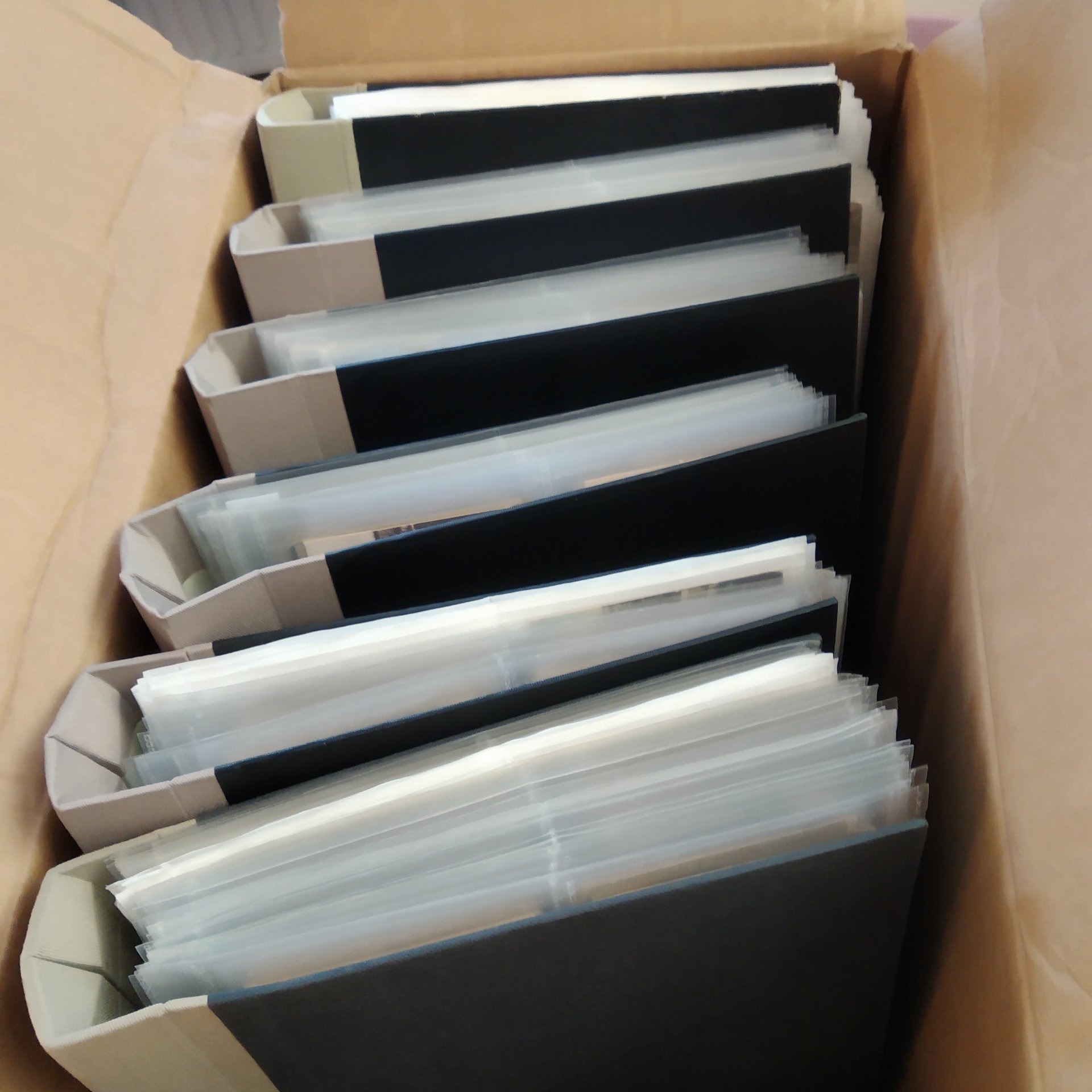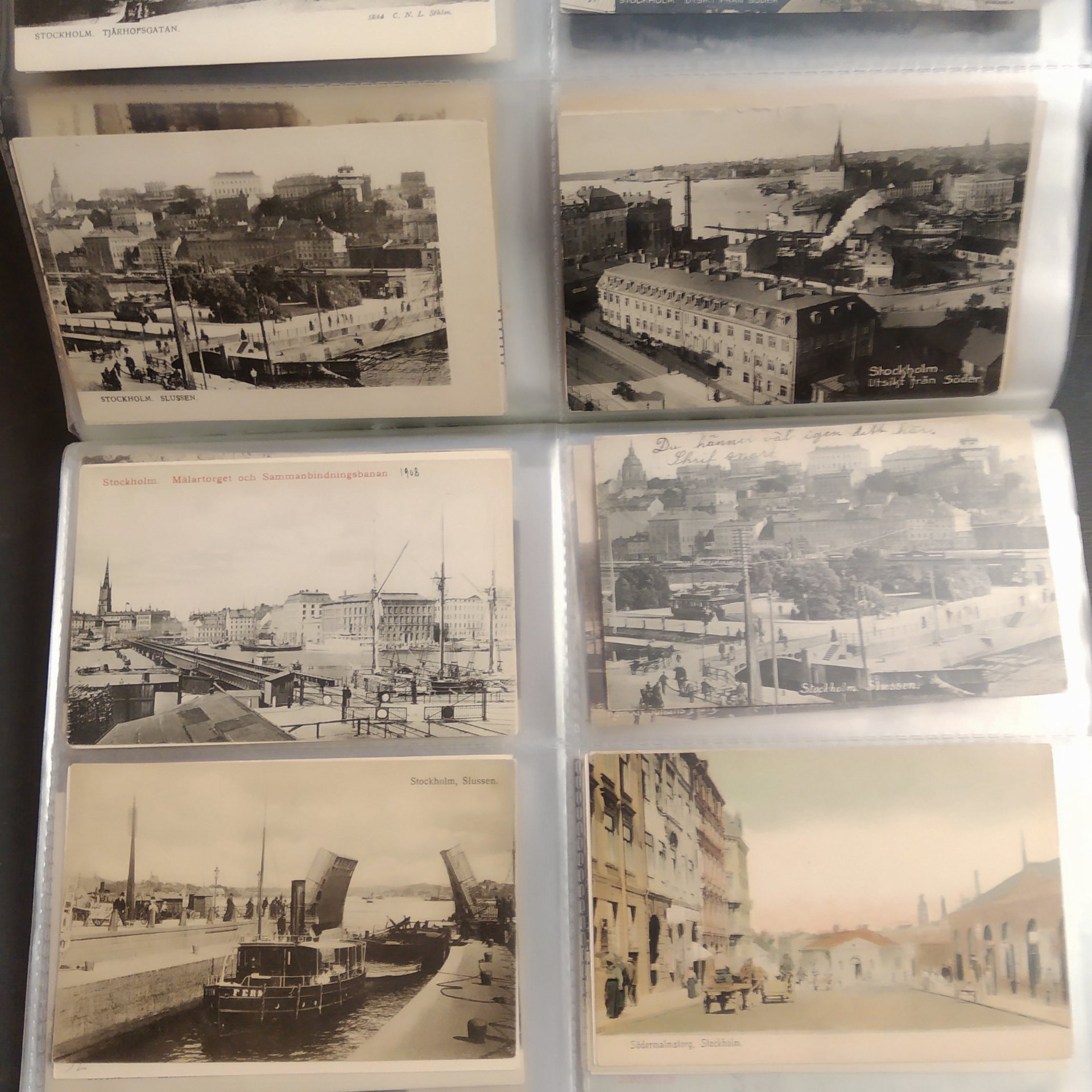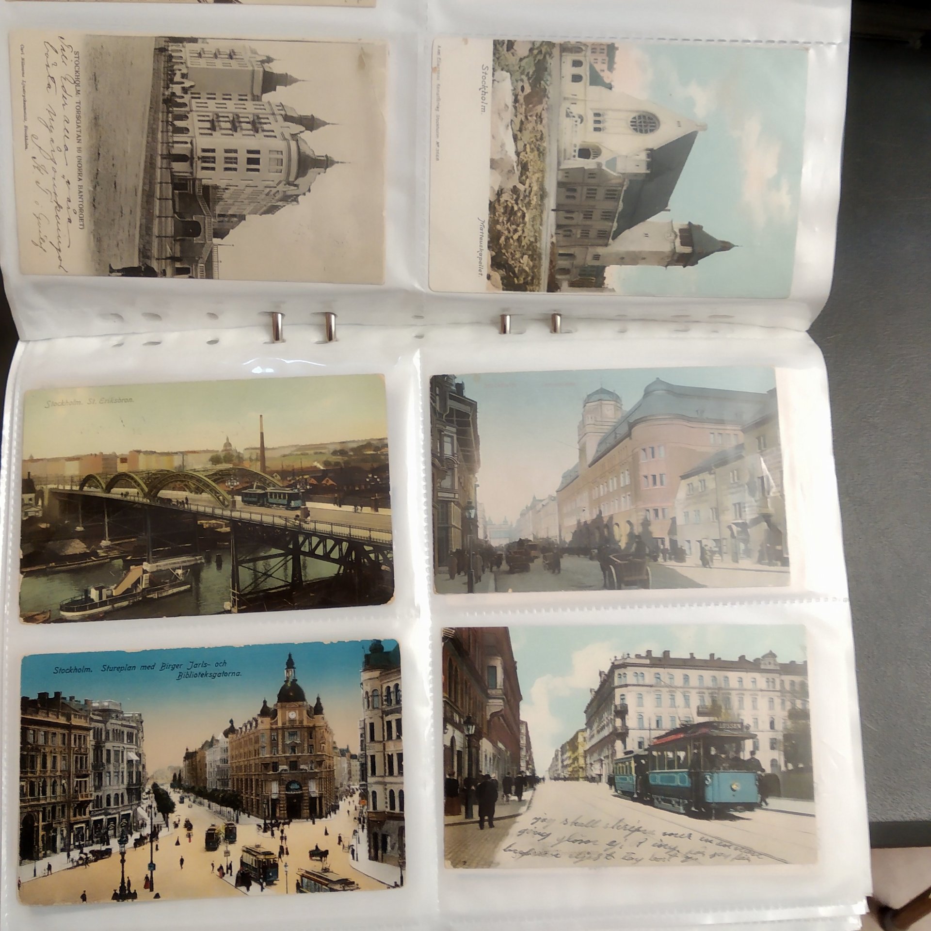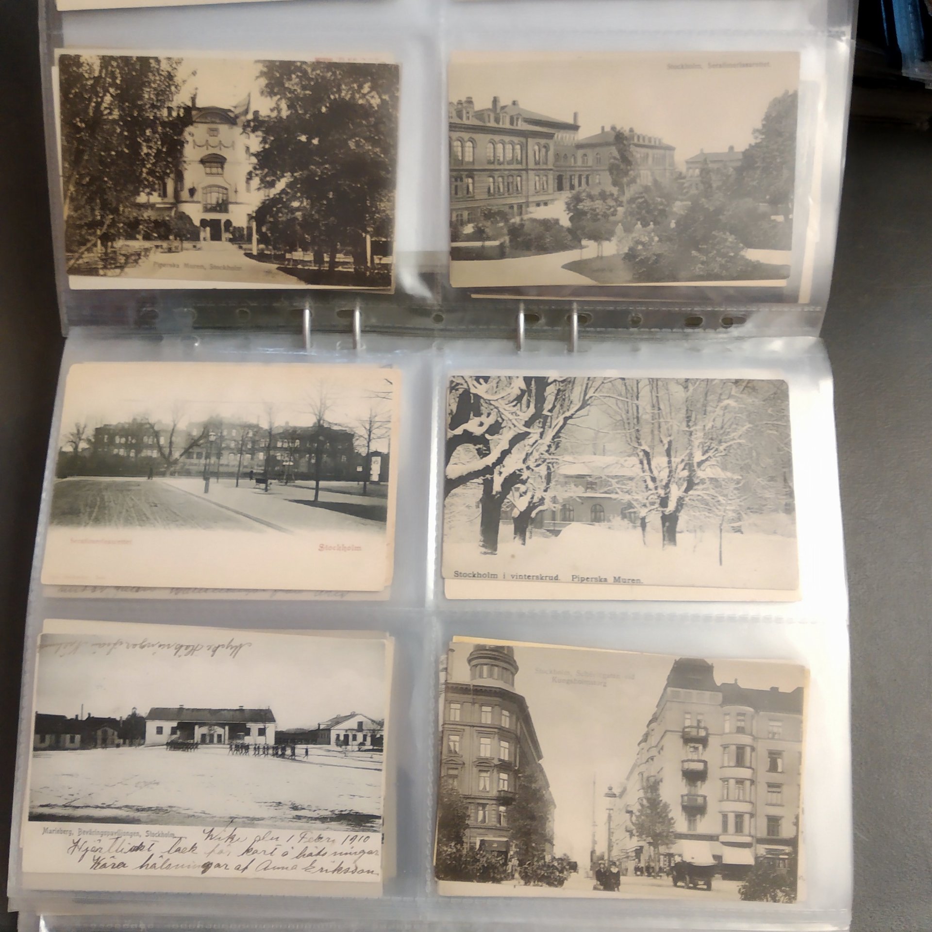 Sweden. Picture postcards, in removal box. Stockholm, incl. Vasastan, Kungsholmen, Södermalm and Gamla stan, 1900–1920s in six binders with plastic pockets. Mostly good quality. Approx. 12 kg. (1500+)