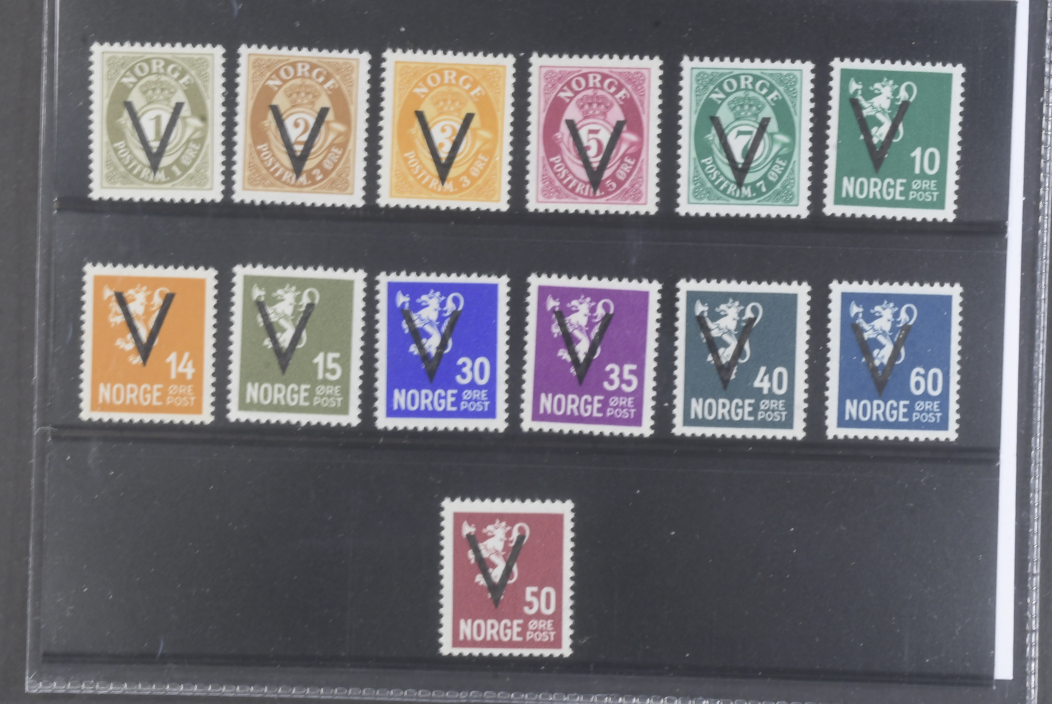 Norway. Facit 266–78 ★★, 1941 “V”-stamps SET watermark posthorn (13). 50o signed Moldenhauer. SEK 4500