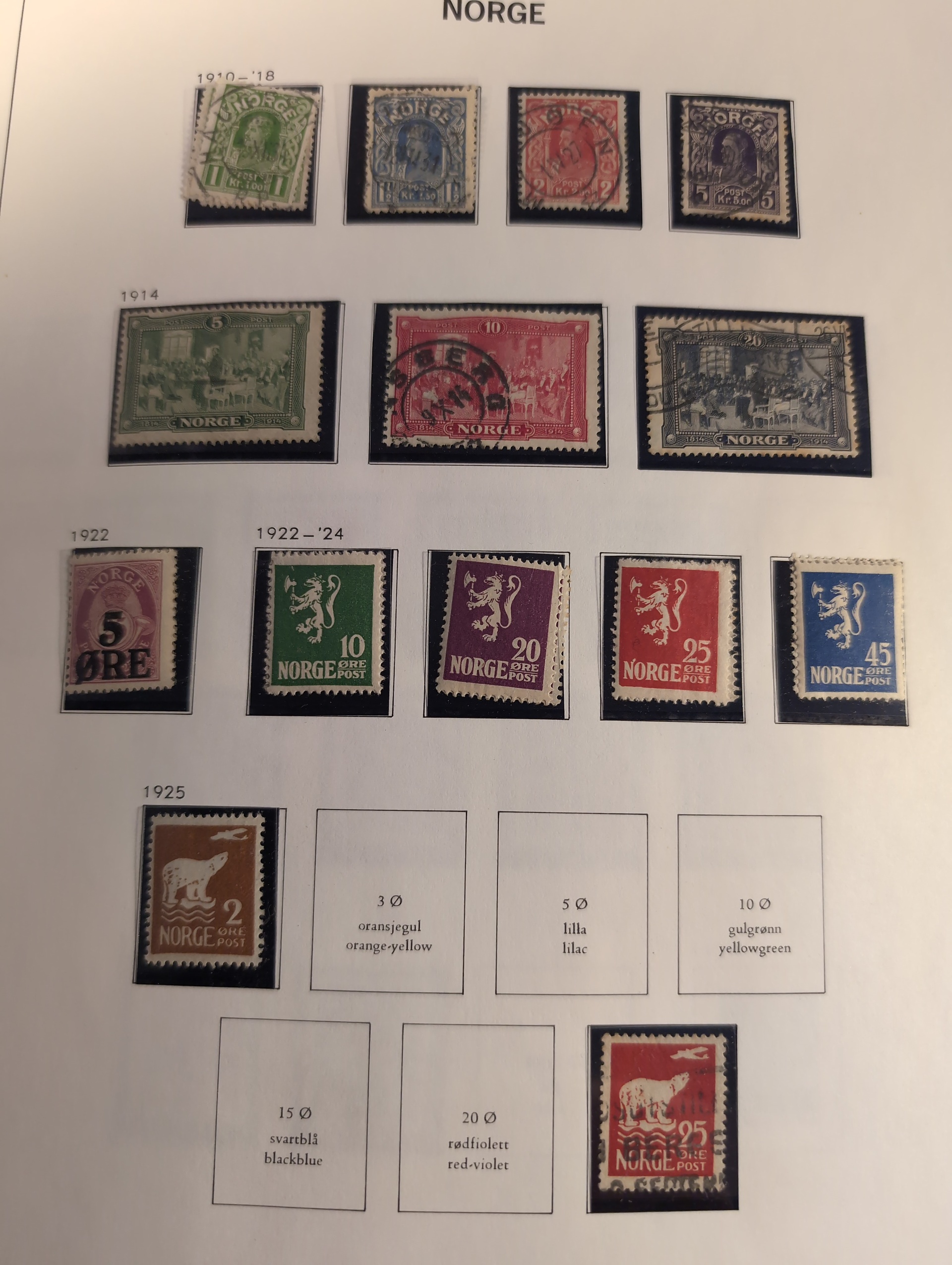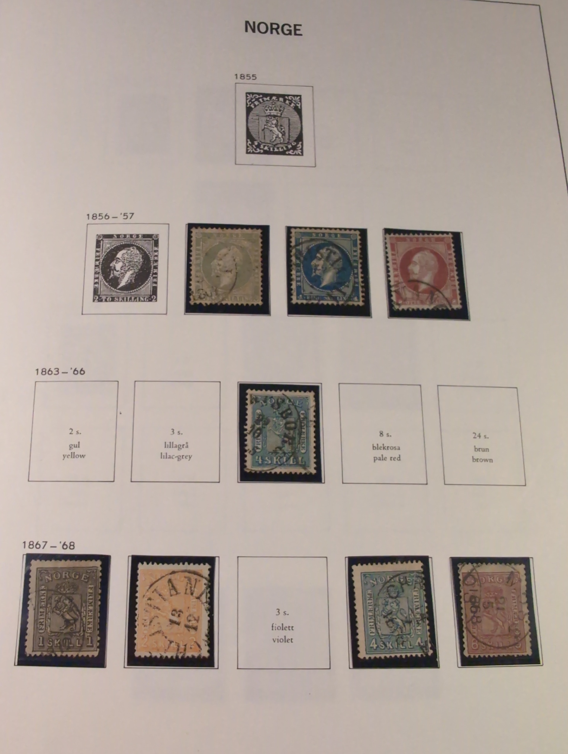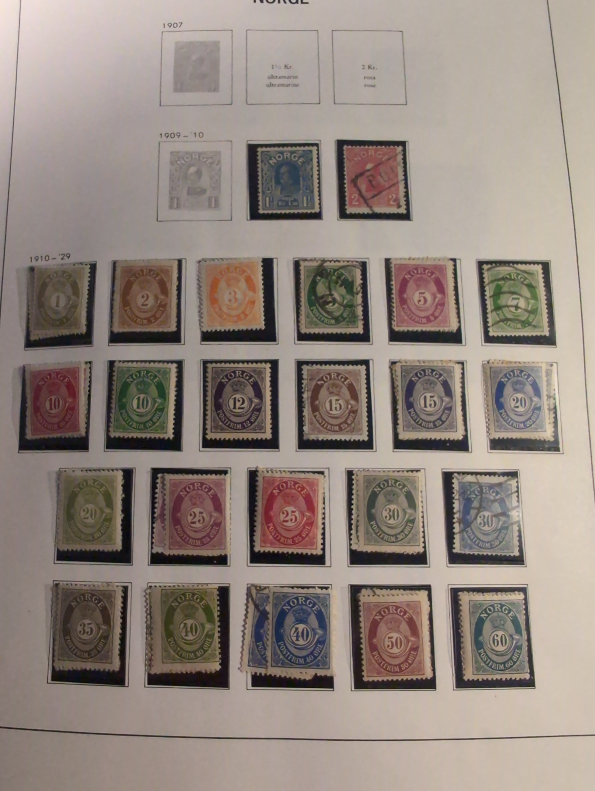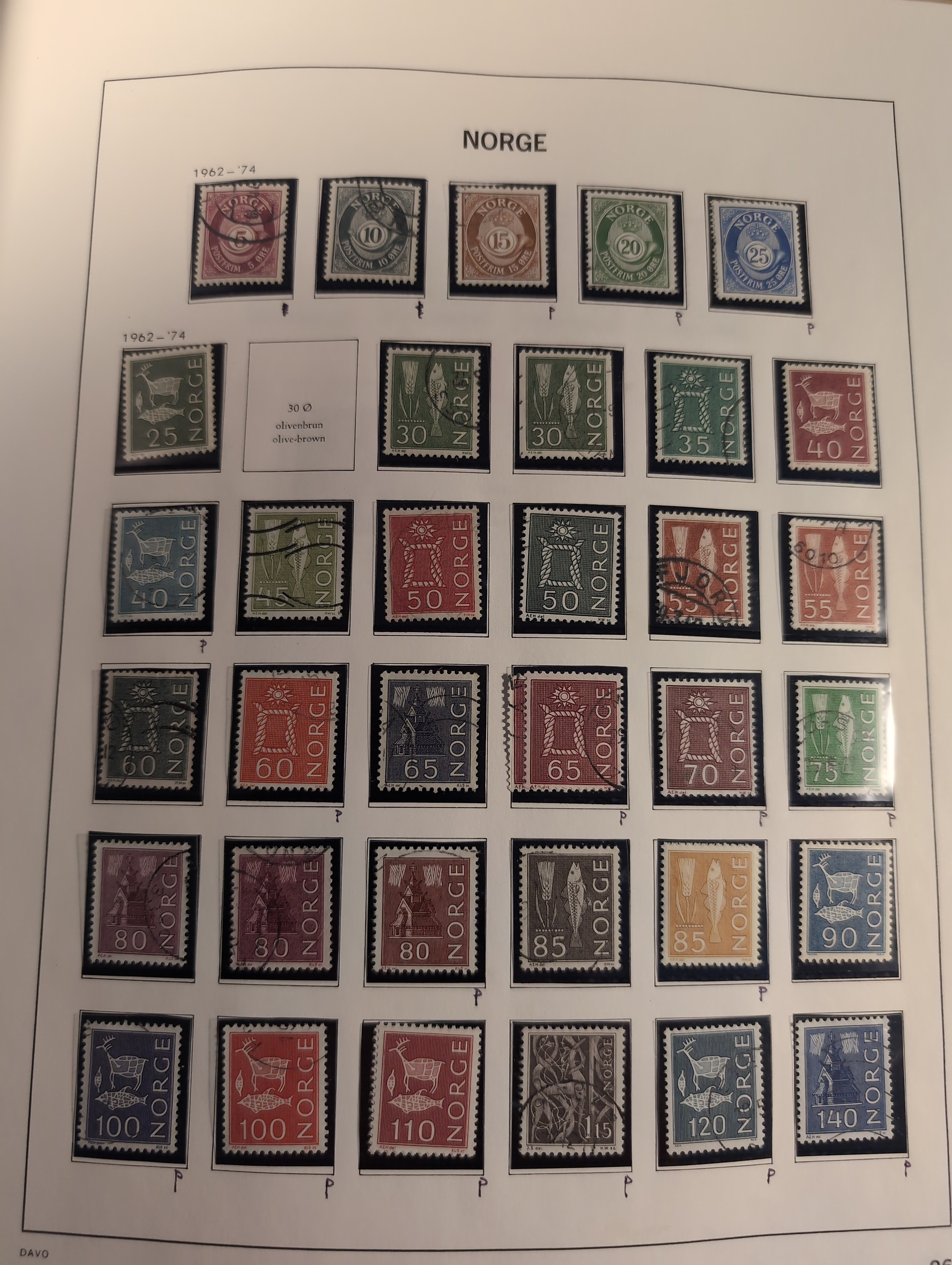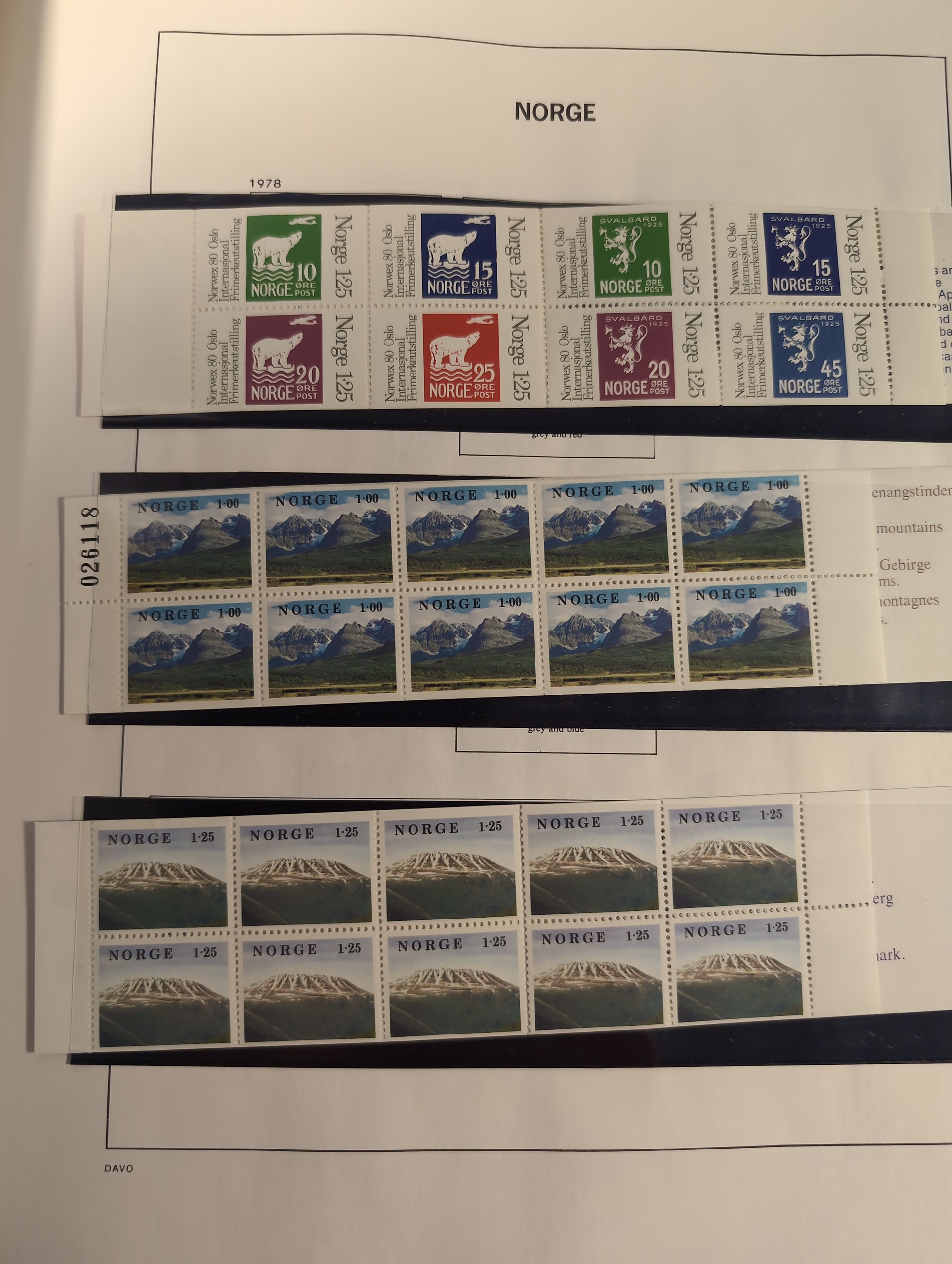 Norway. Collection ★★/★/⊙ 1856–1989 in DAVO album. Ten skilling values, some better mint 1909-29 Posthorn, mixed mint and used to 1973 thereafter complete NH to 1985 incl. some booklets. Also some back of the book. Please see a selection of scans at www.philea.se. Mostly fine quality. (1000)