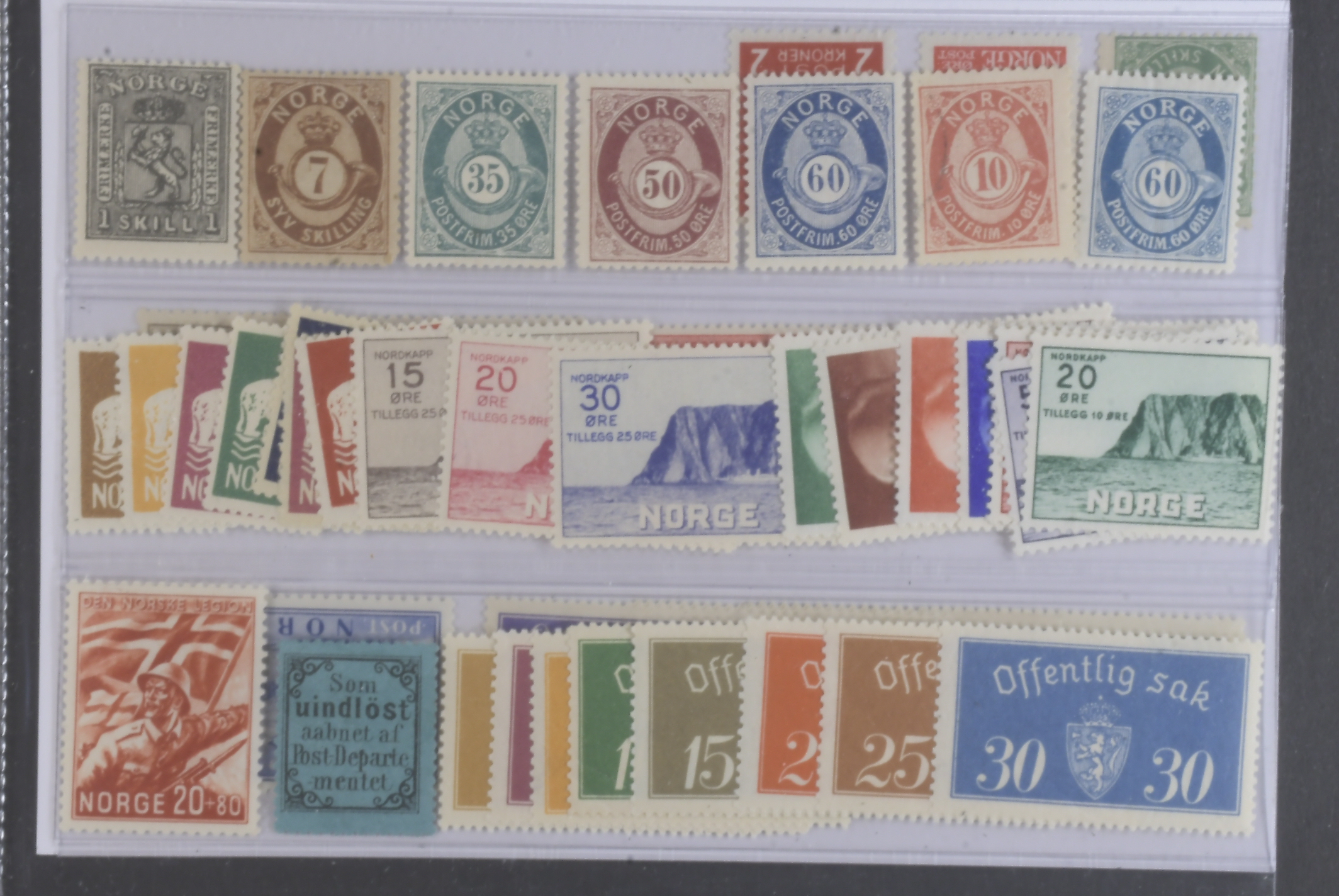 Norway. ★ 1867–1952. All different, e.g. F 11, 21, 31–33, 53 (*), 84, 151–57, 181–83, 198–201, 264, 413–15, Tj 9–20, RM 12. Mostly good quality. F SEK 7365 (46)