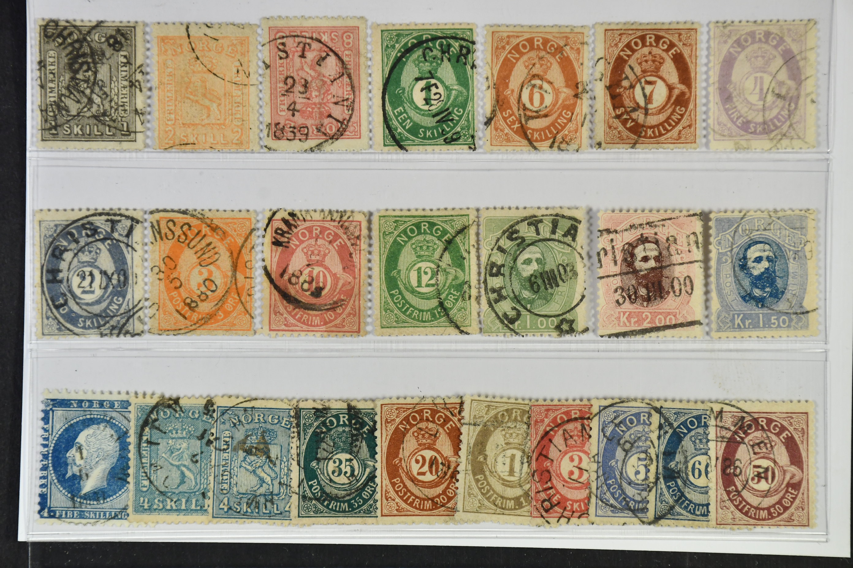 Norway. Used 1856–1878. All different, e.g. F 11–12, 15–17, 19–21, 23, 27–28, 34–36. Mostly good quality. F SEK 6955 (24)