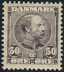 Denmark. Facit 67 ★★, 1905 Christian IX 50 øre lilac. Good centering. SEK 2000