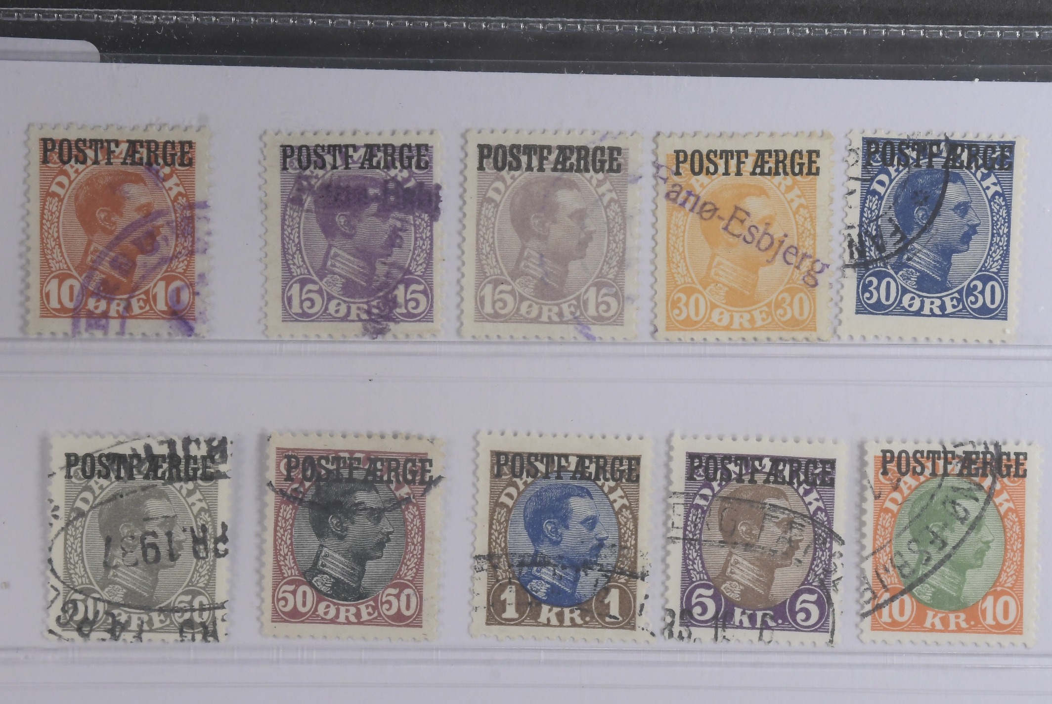 Denmark. Ferry Facit PF1–9 used, 1919 POSTFÆRGE overprint on King Christian X 10 øre to 10 kr. SEK 5200