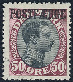Denmark. Ferry Facit PF5 ★, 1920 POSTFÆRGE overprint on King Christian X 50 øre black/wine-red. SEK 2000