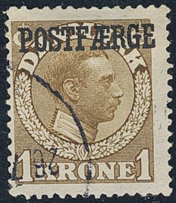 Denmark. Ferry Facit PF10 used, 1919 POSTFÆRGE overprint on King Christian X 1 Kr brown. SEK 1500