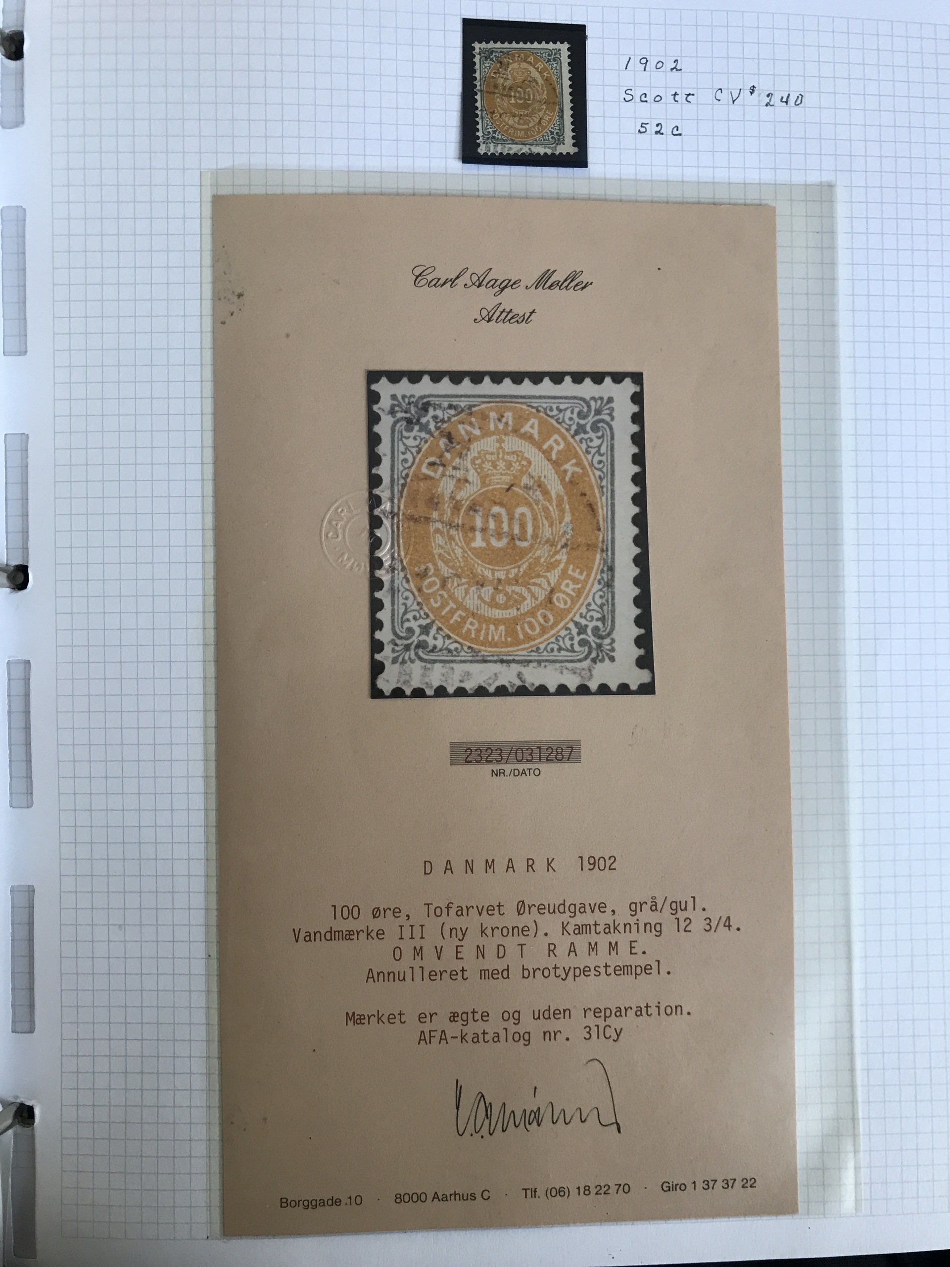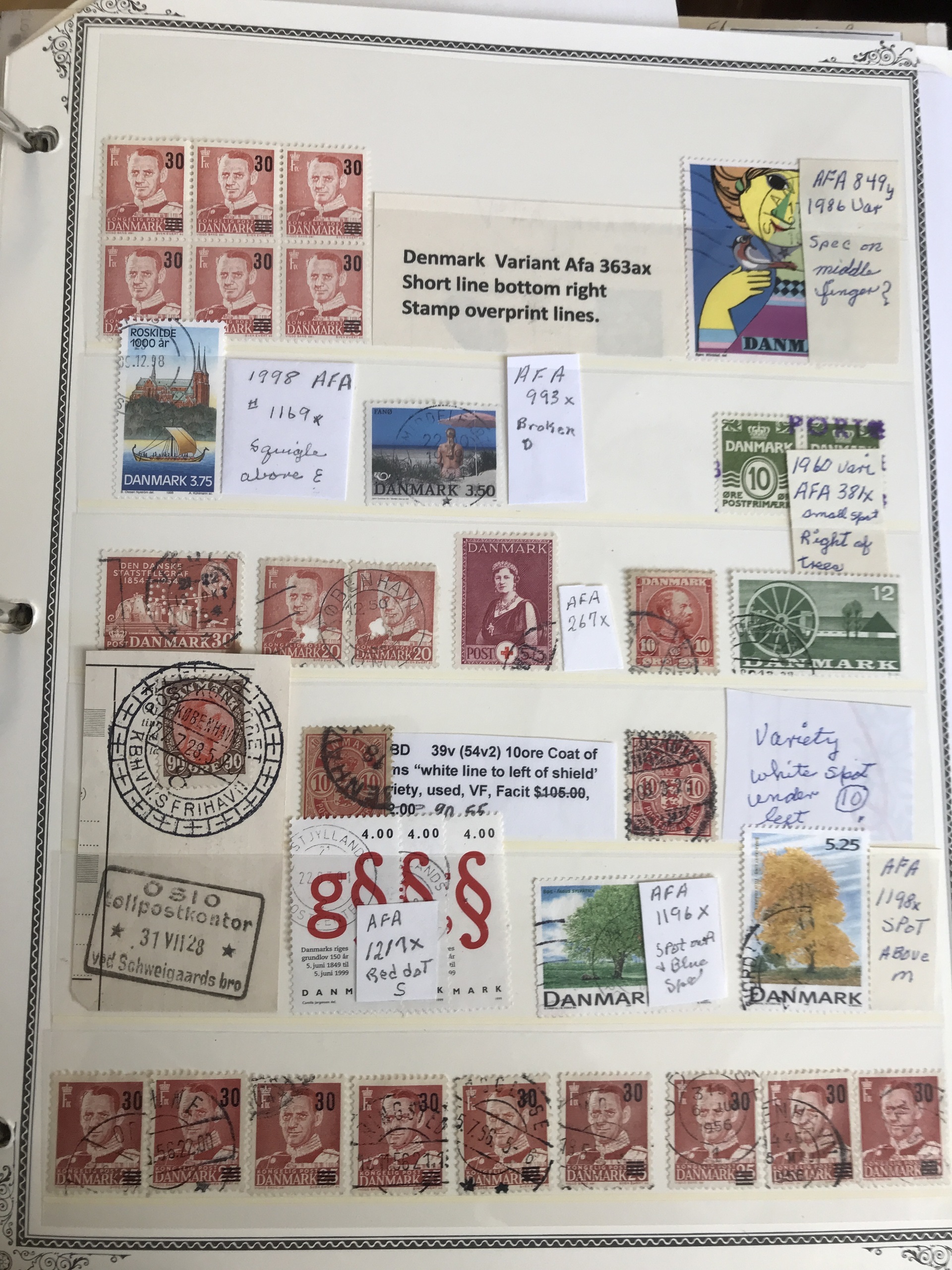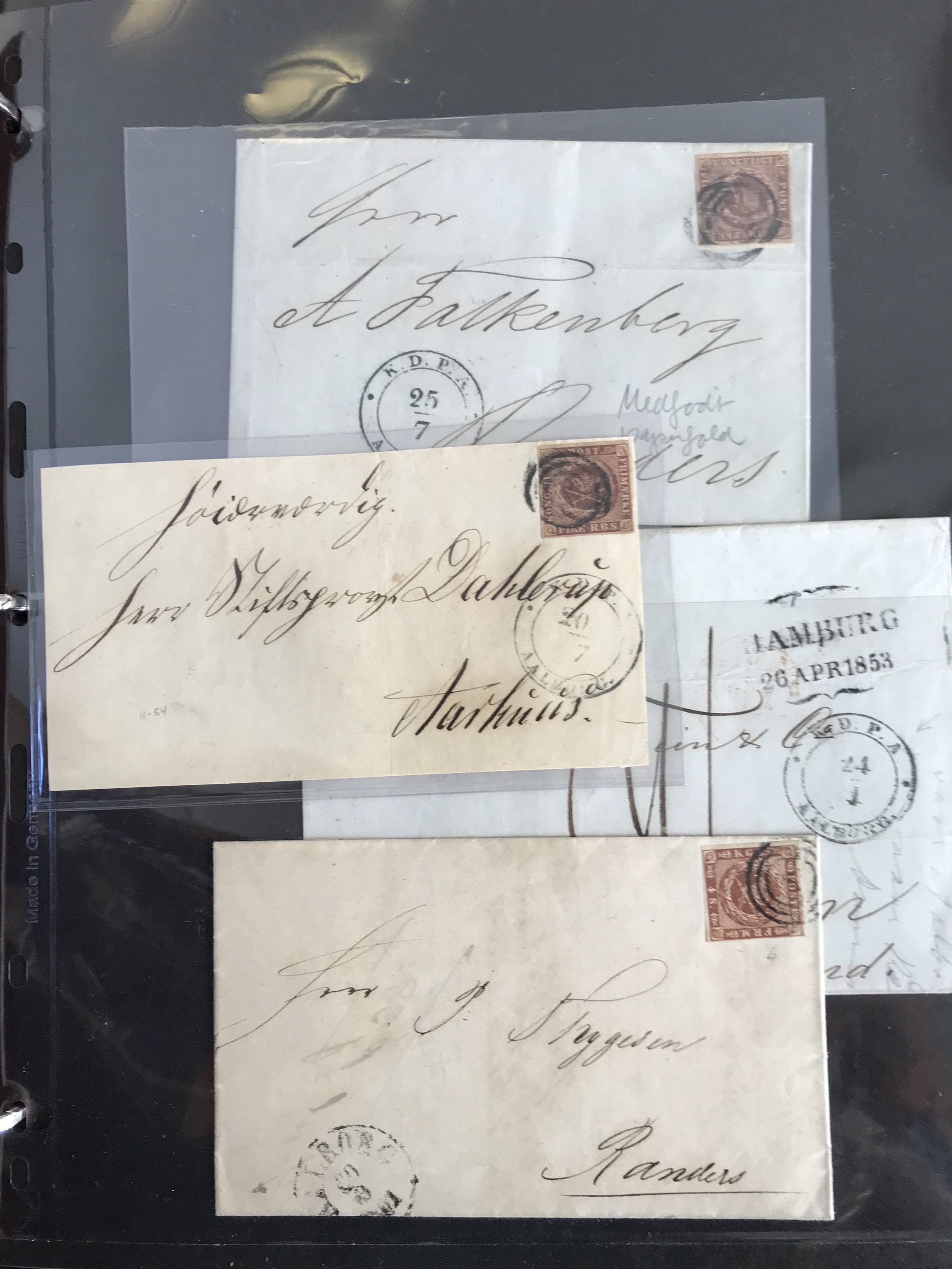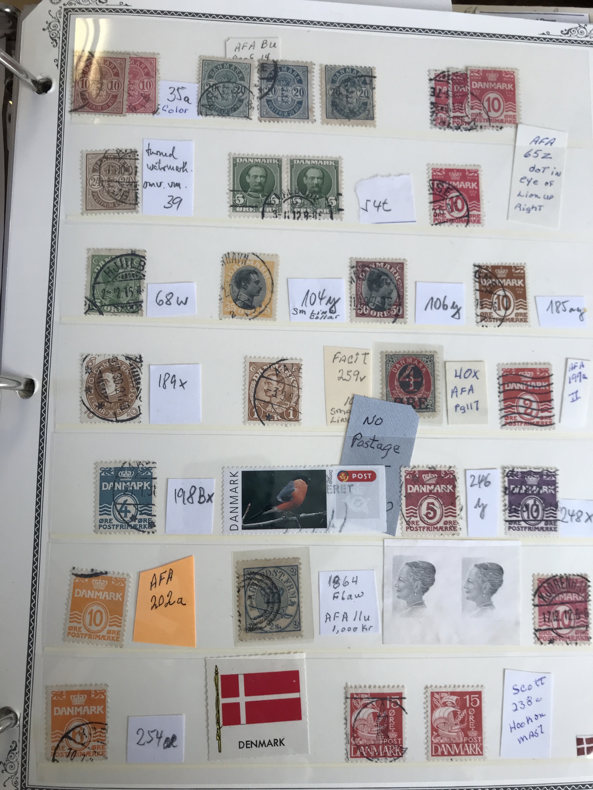 Denmark. Mostly used. Interesting accumulation 1851–2017 in nine albums/binders incl. several varieties, Local issues and Parcel stamps, classic covers, modern ** sheets, Christmas stamps incl. 45 ** full sheets 1953–2006 and also some DWI and Slesvig, etc. Please see a selection of scans at www.philea.se. Approx. 18 kg.