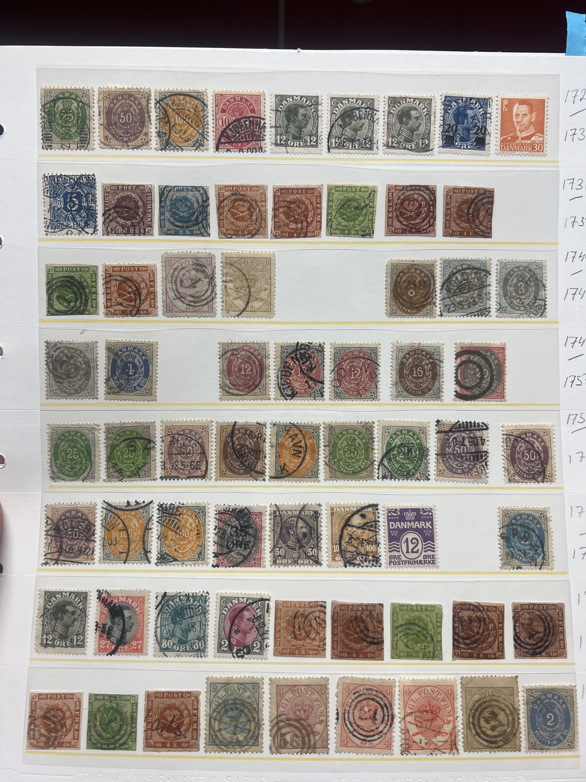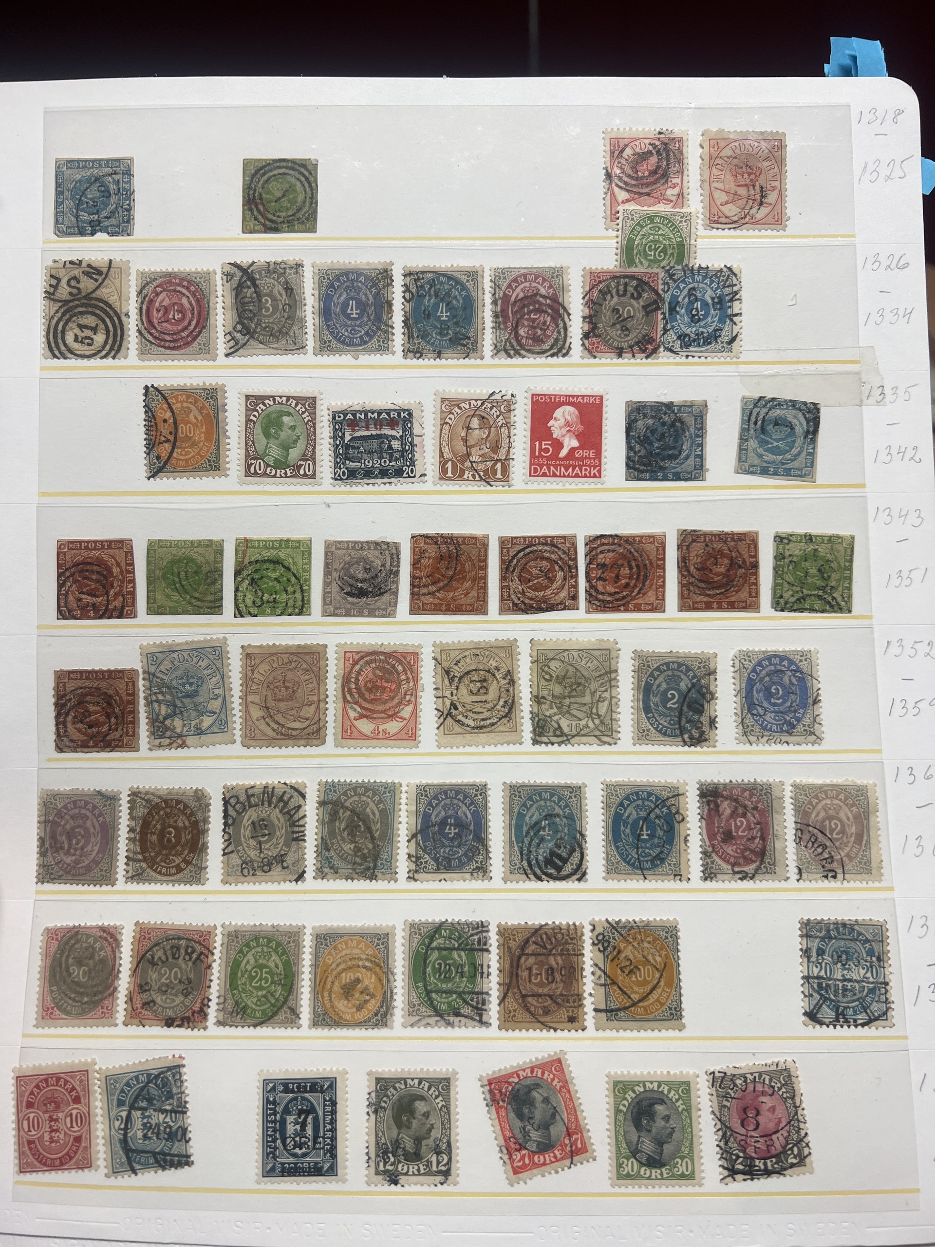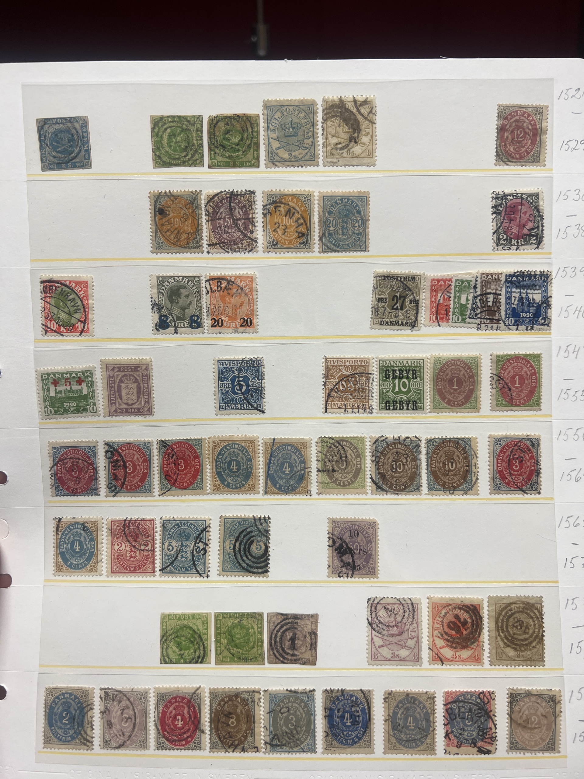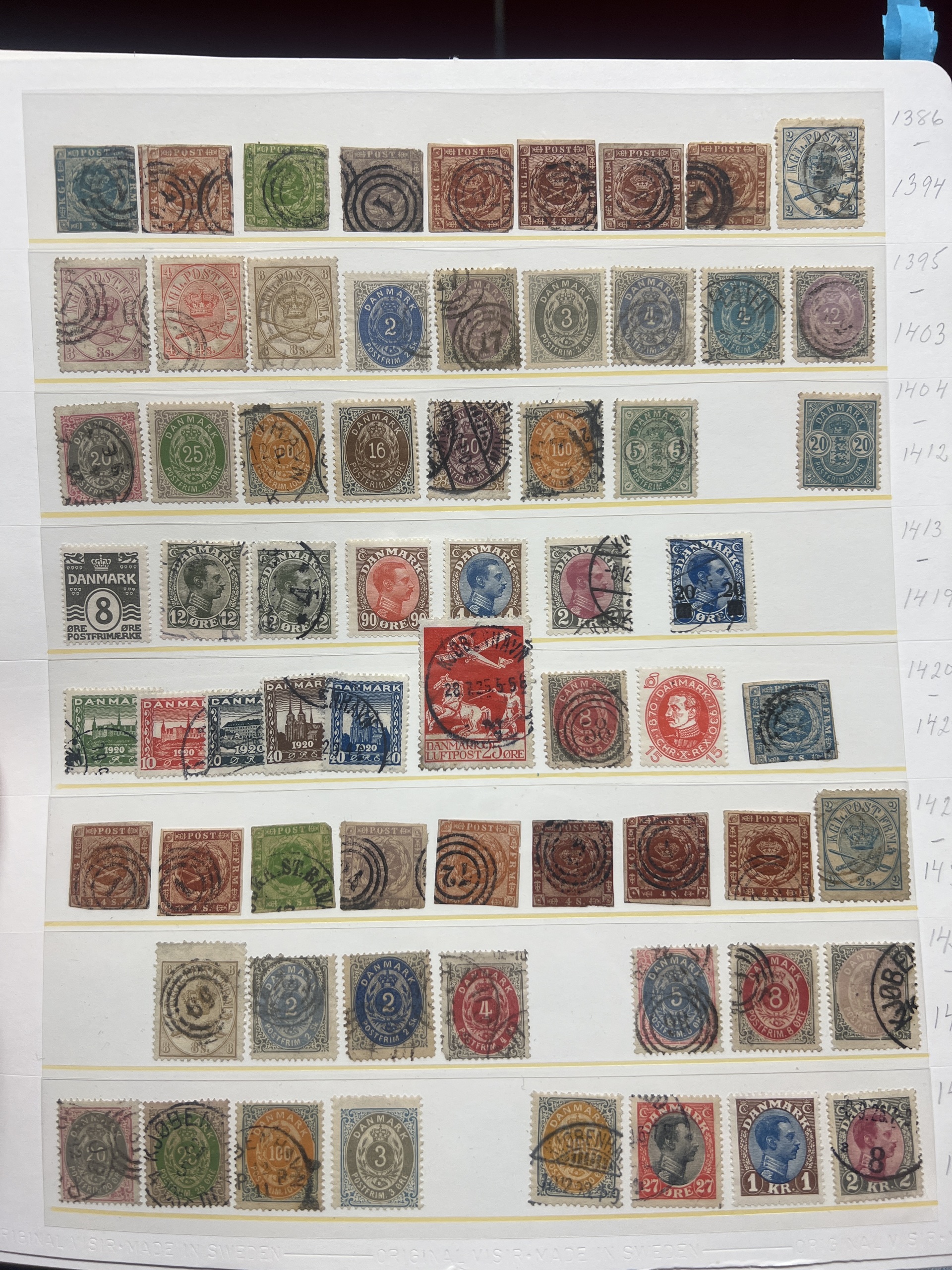 Denmark. Accumulation mostly used 1851–1930s on visir leaves. many better stamps incl. skillings and a lot of bi-colored. The entire lot is presented at www.philea.se. Somewhat mixed quality. (370)