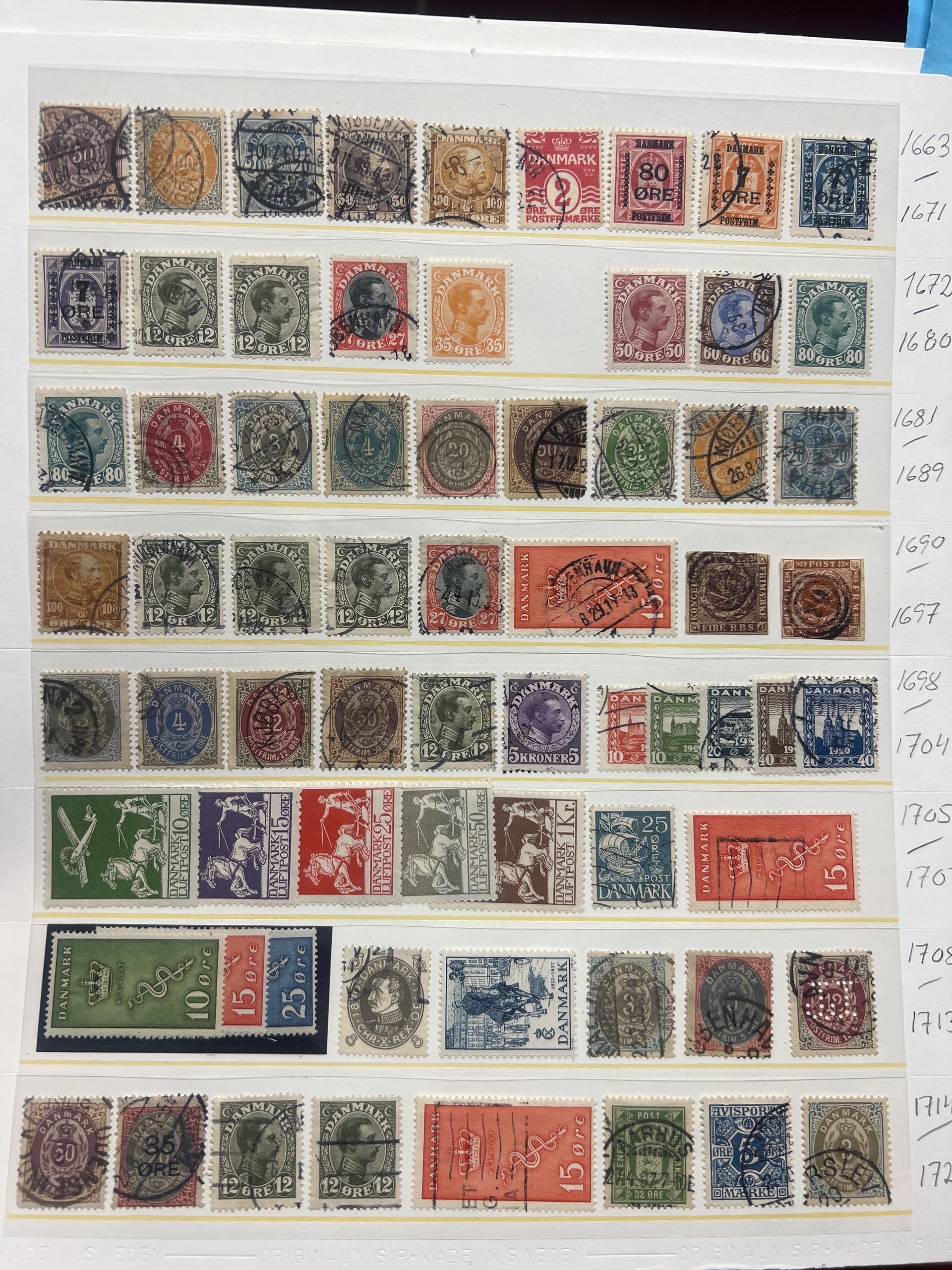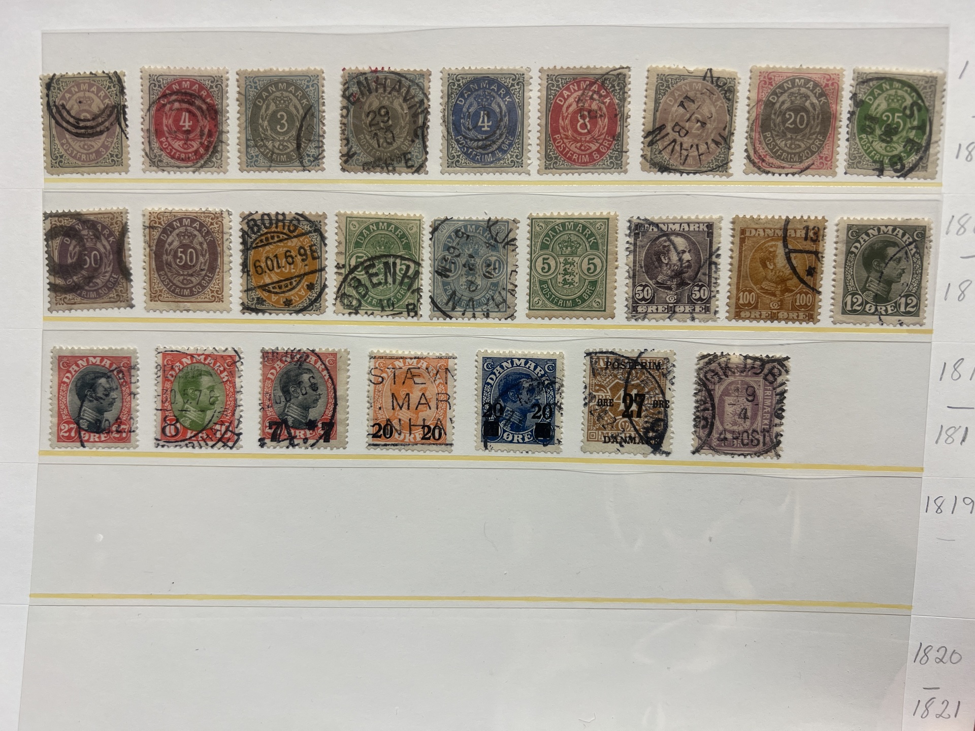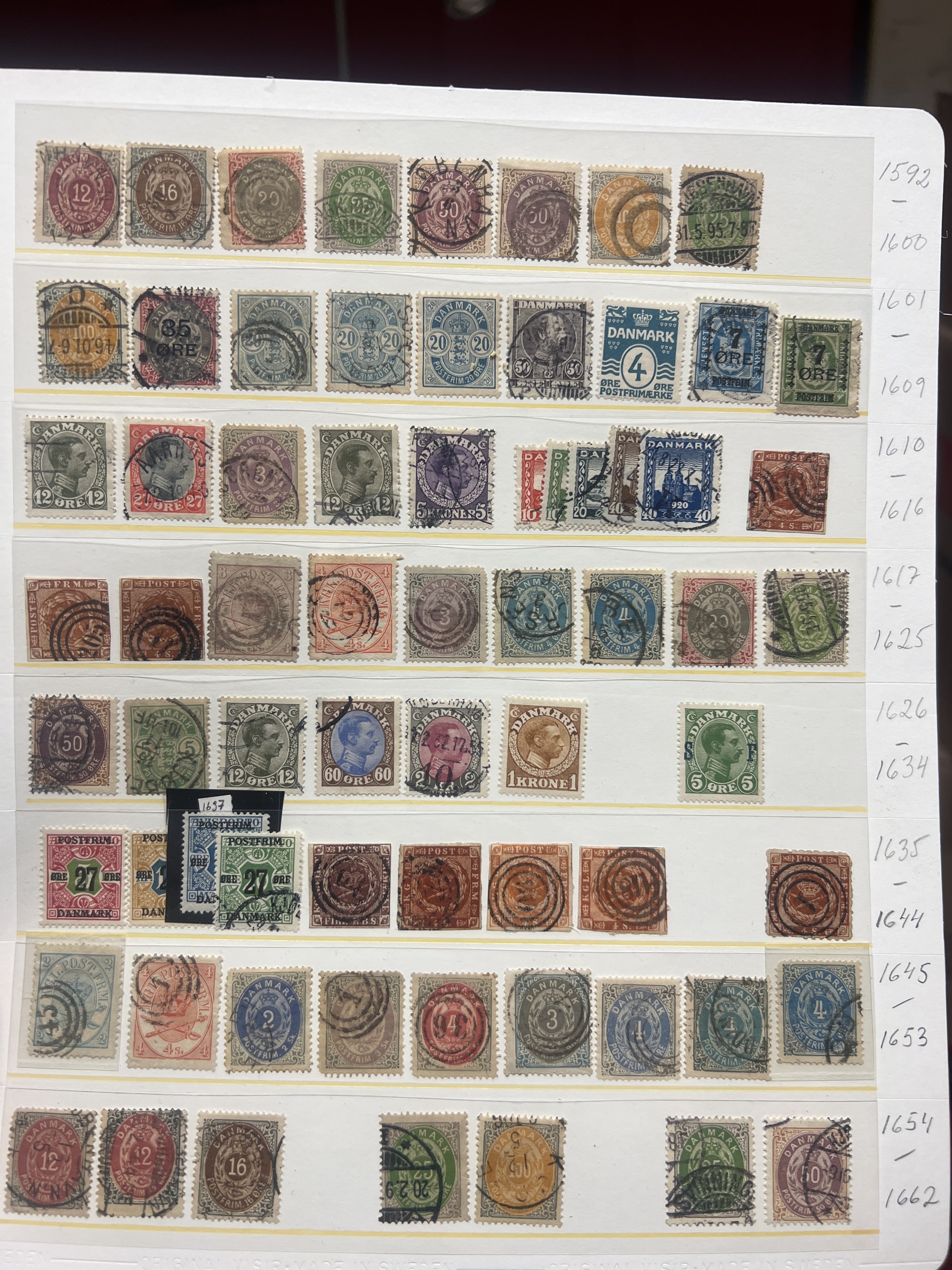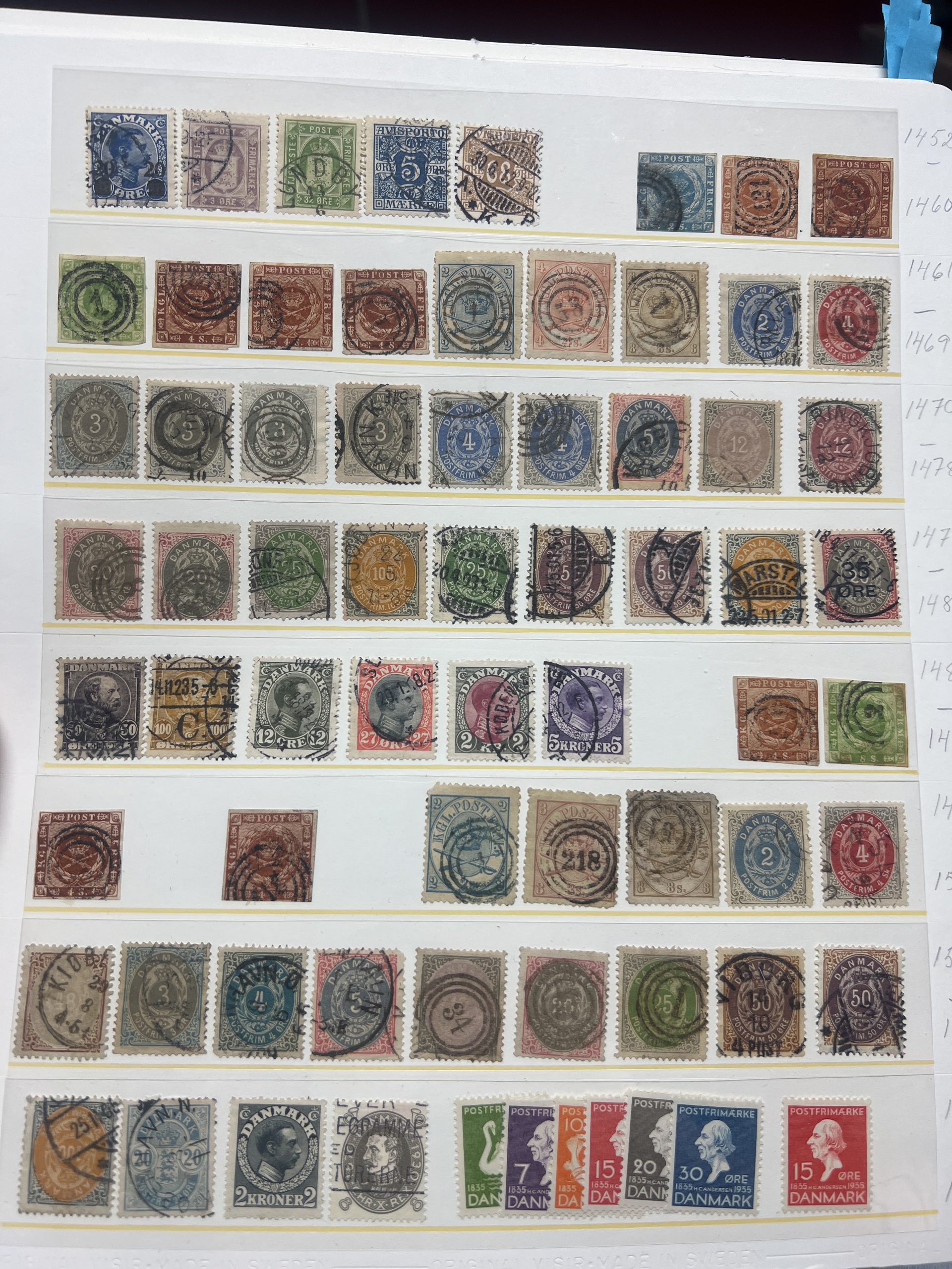 Denmark. Accumulation mostly used 1851–1930s on visir leaves. many better stamps incl. skillings and a lot of bi-colored. The entire lot is presented at www.philea.se. Somewhat mixed quality. (370)